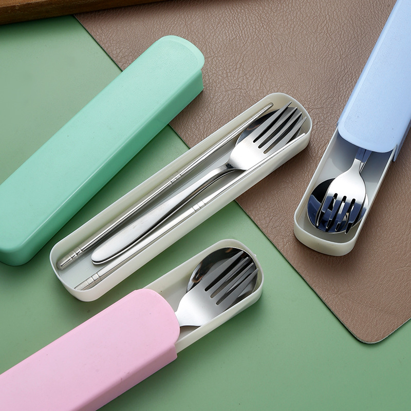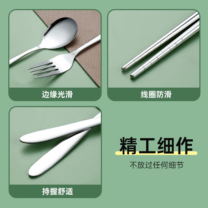 304不锈钢便携餐具三件套宣传礼品logo学生户外勺子叉子筷子套装