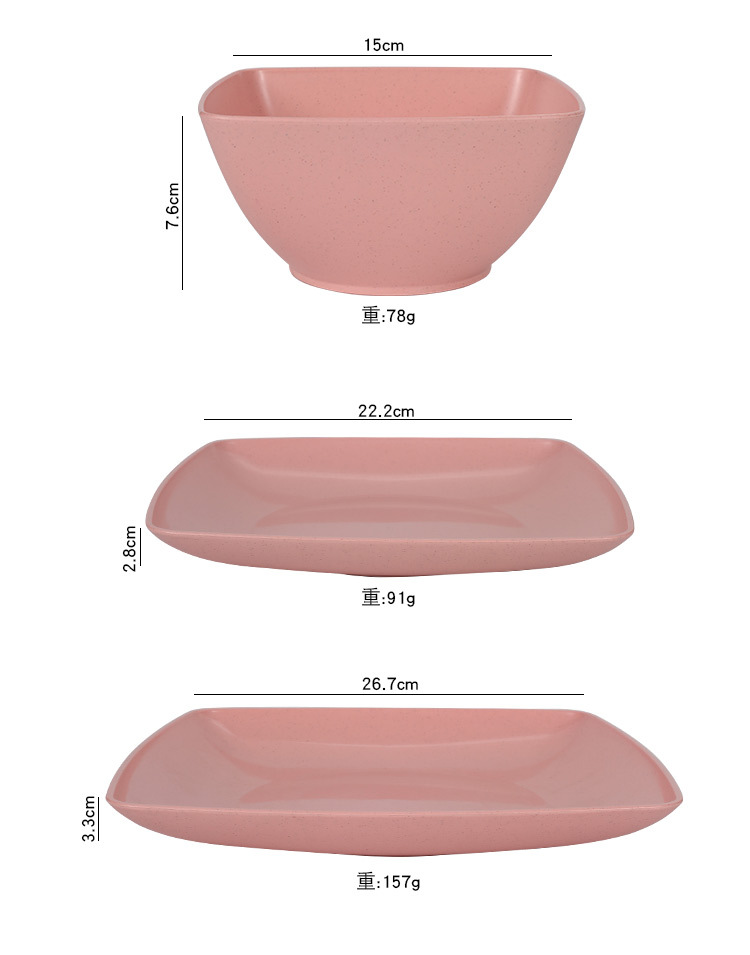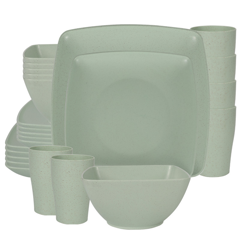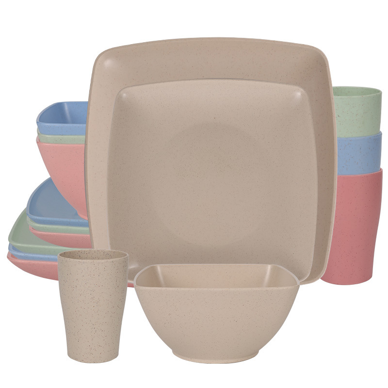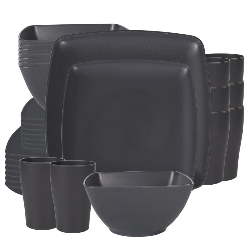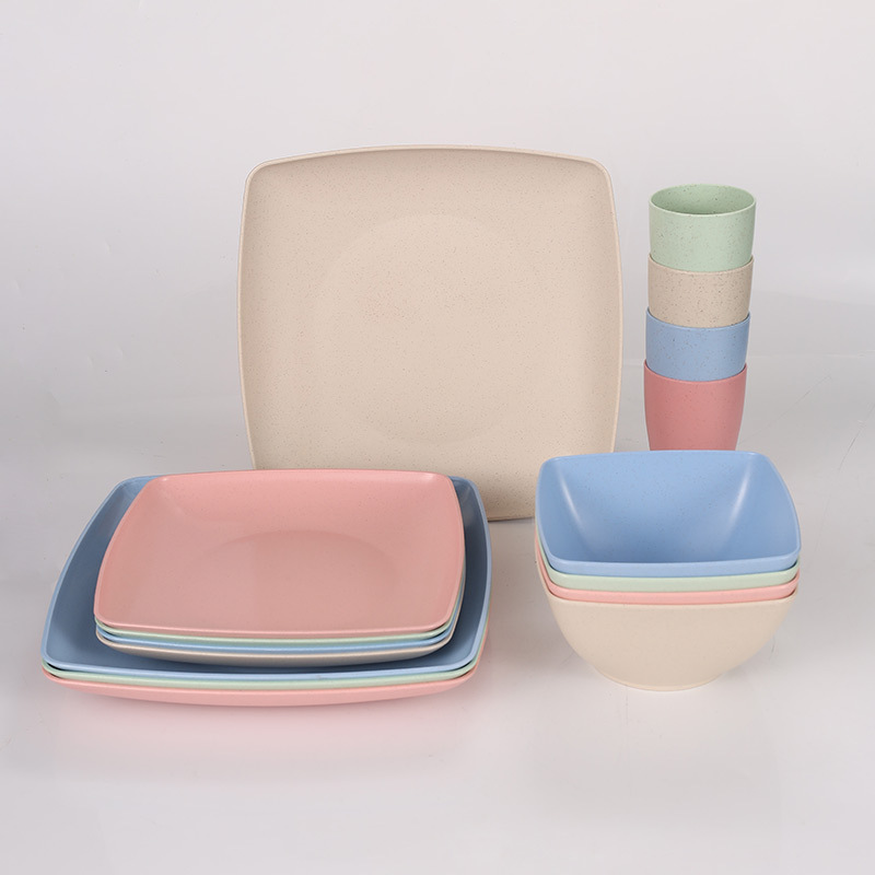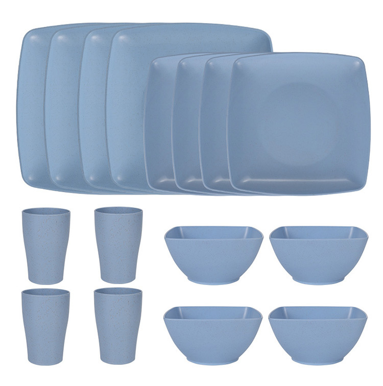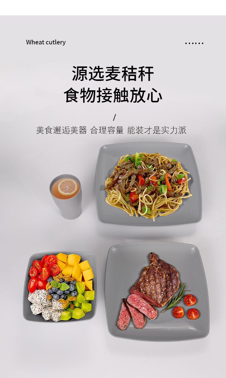 亚马逊热销 方形牛排盘沙拉碗小麦秸秆碗碟盘32PCS盘碗杯礼品套装
