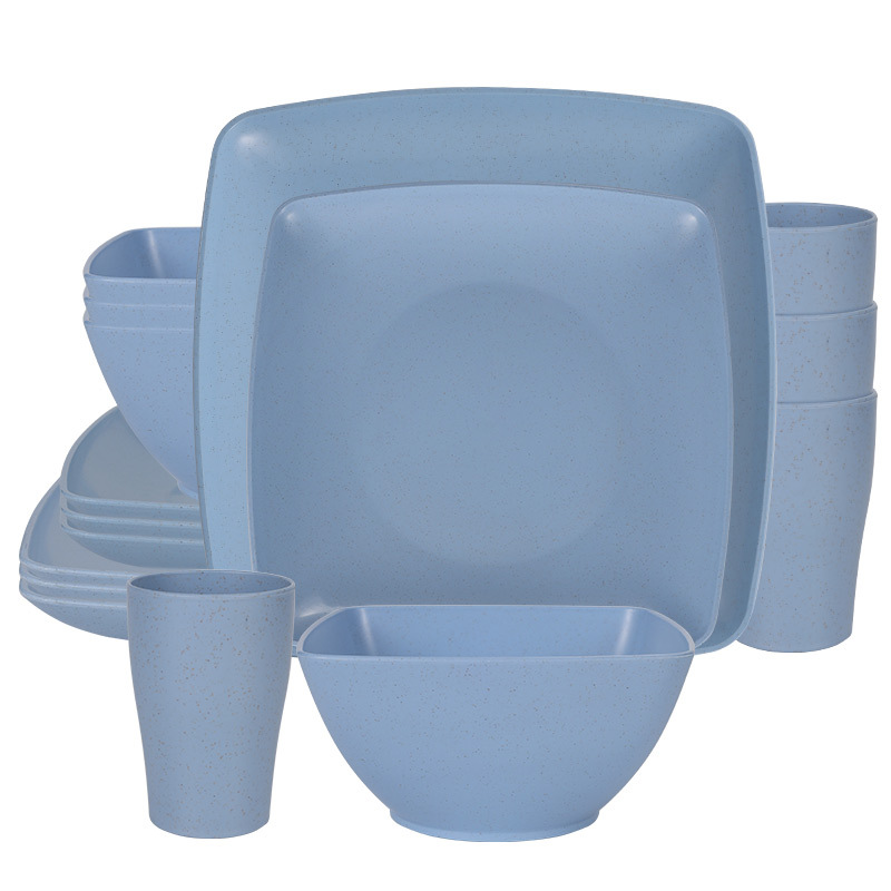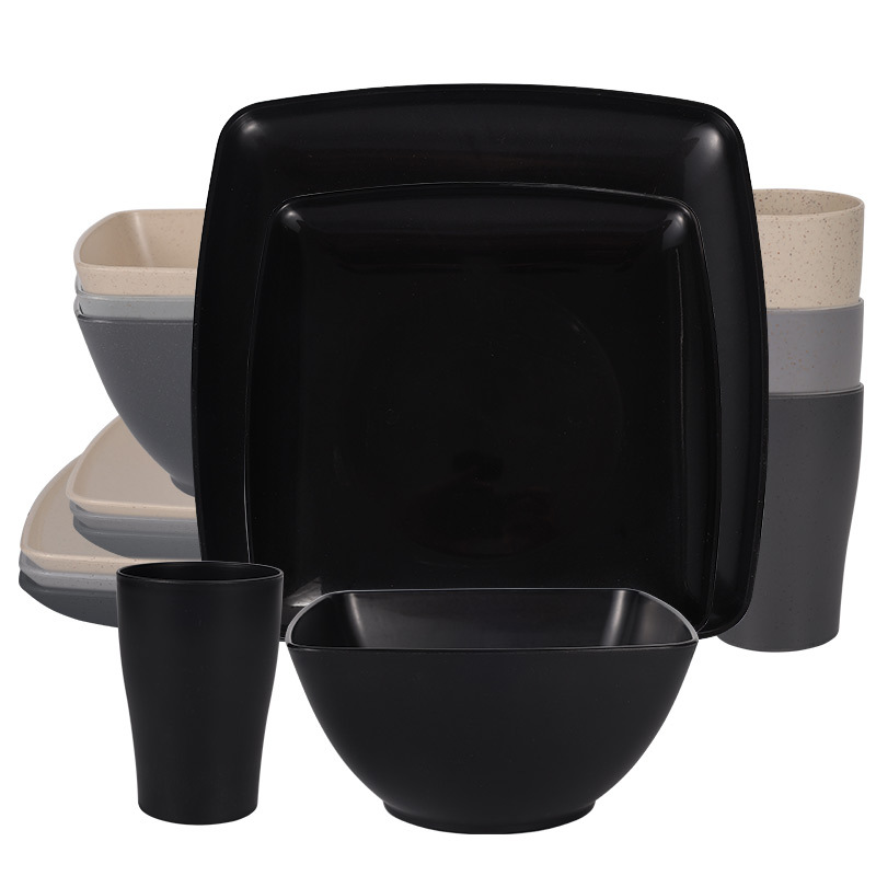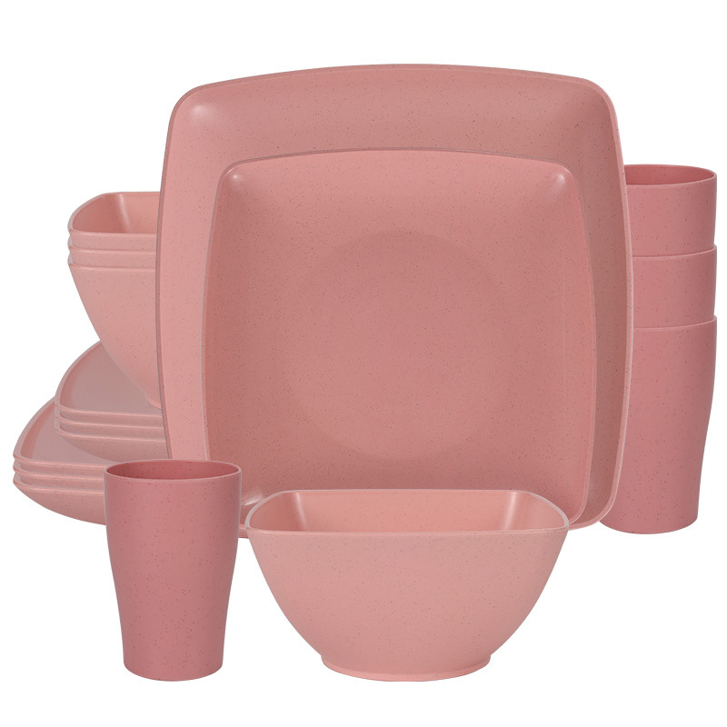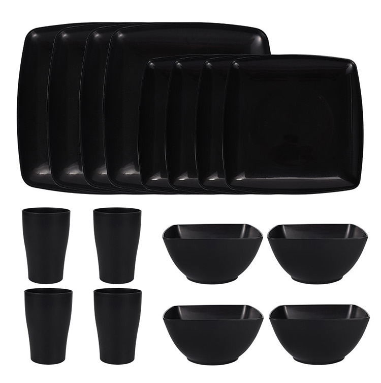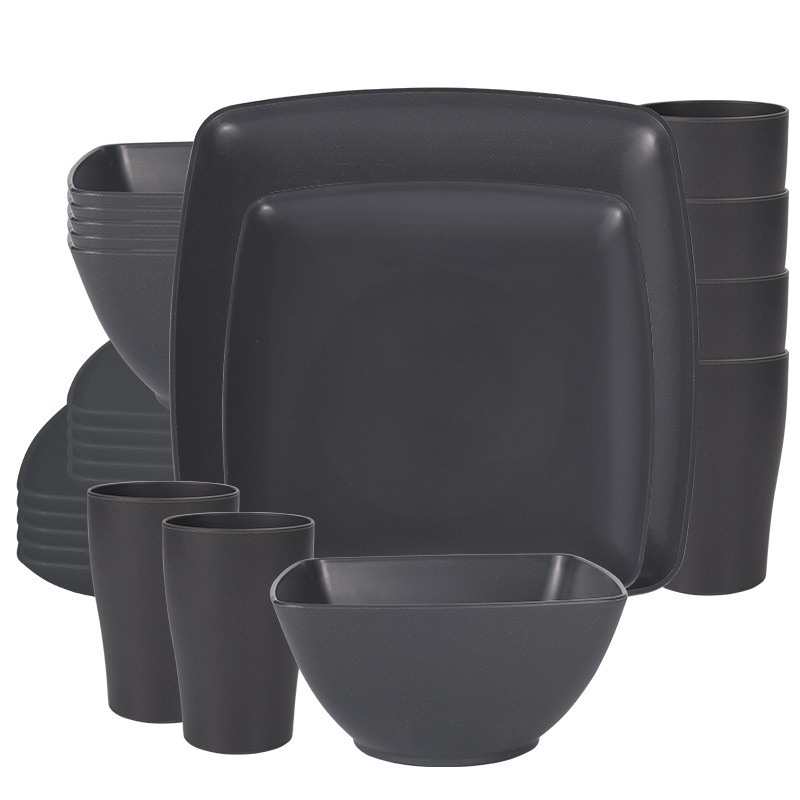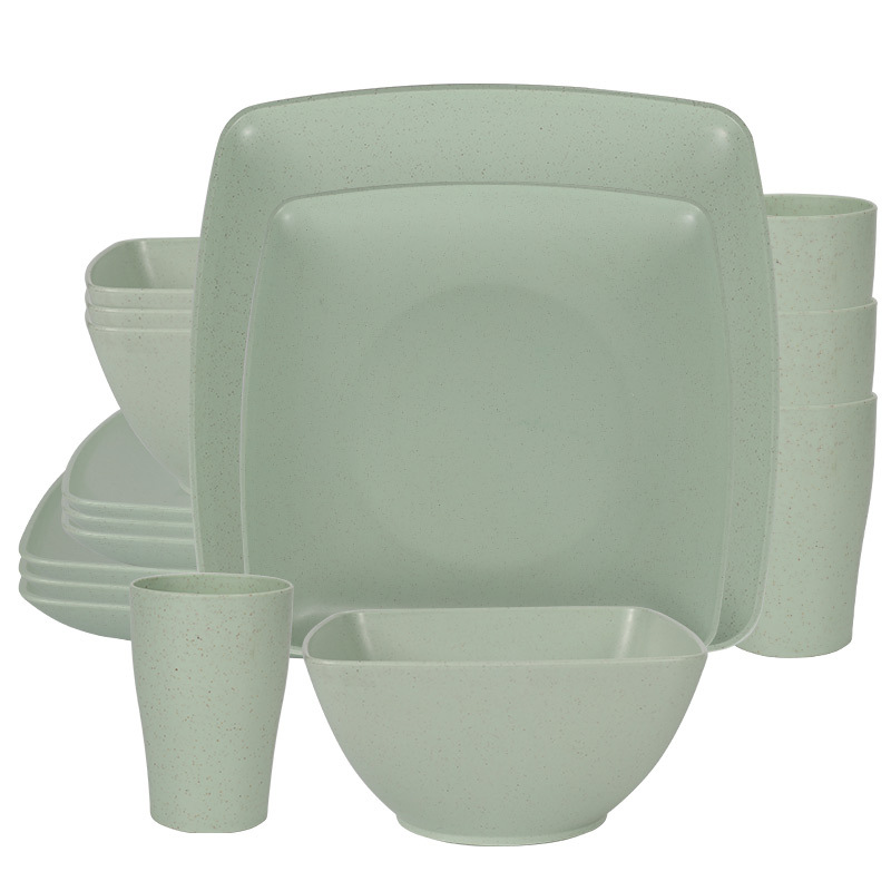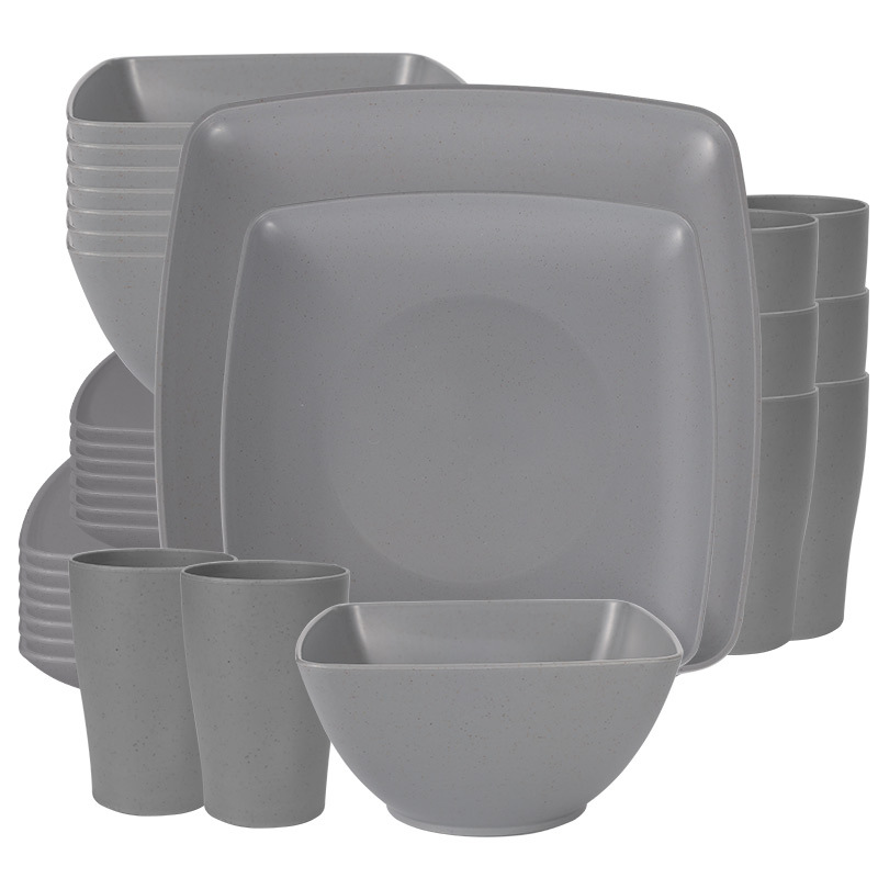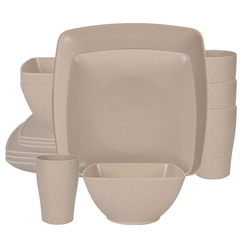 亚马逊热销 方形牛排盘沙拉碗小麦秸秆碗碟盘32PCS盘碗杯礼品套装