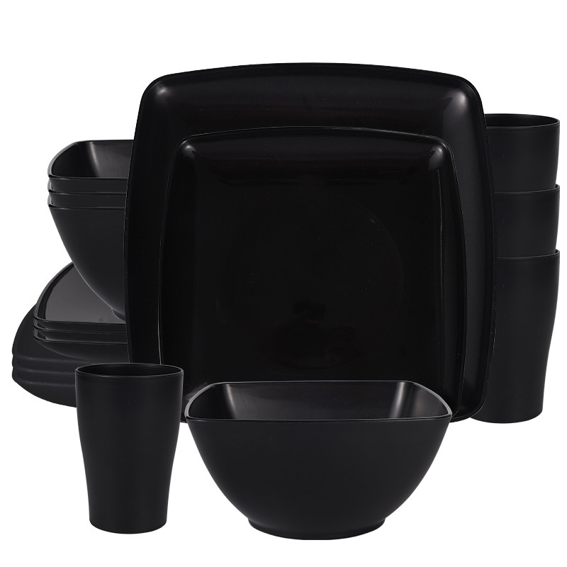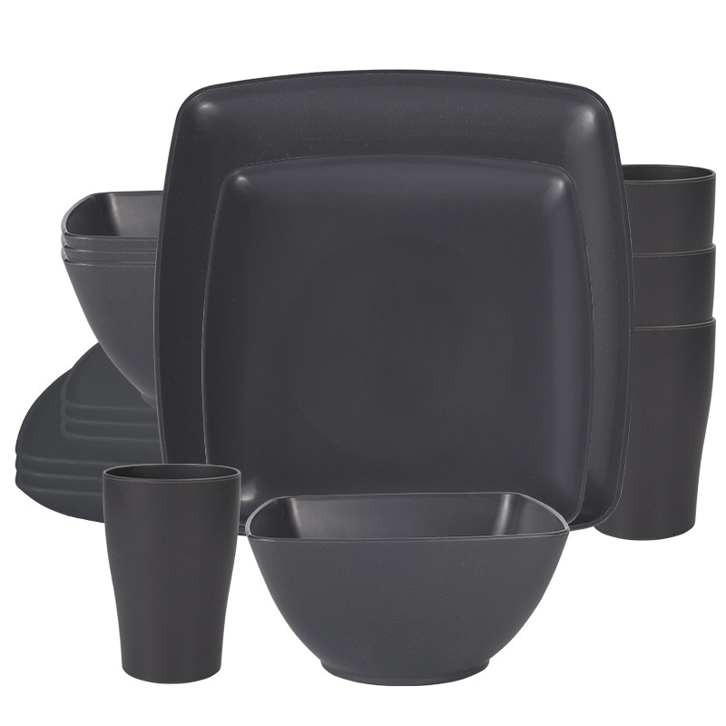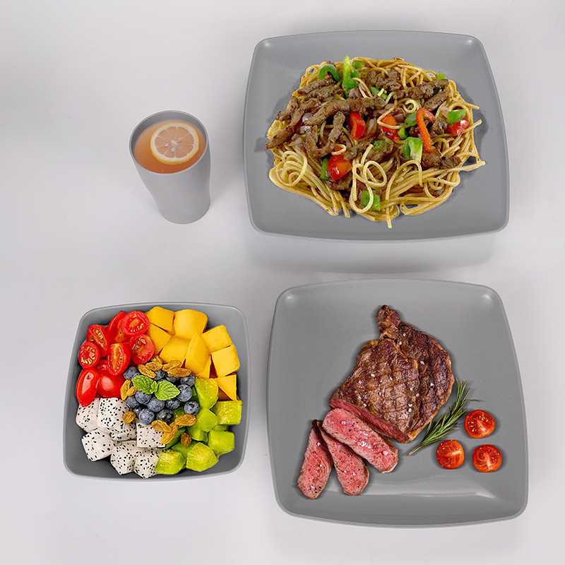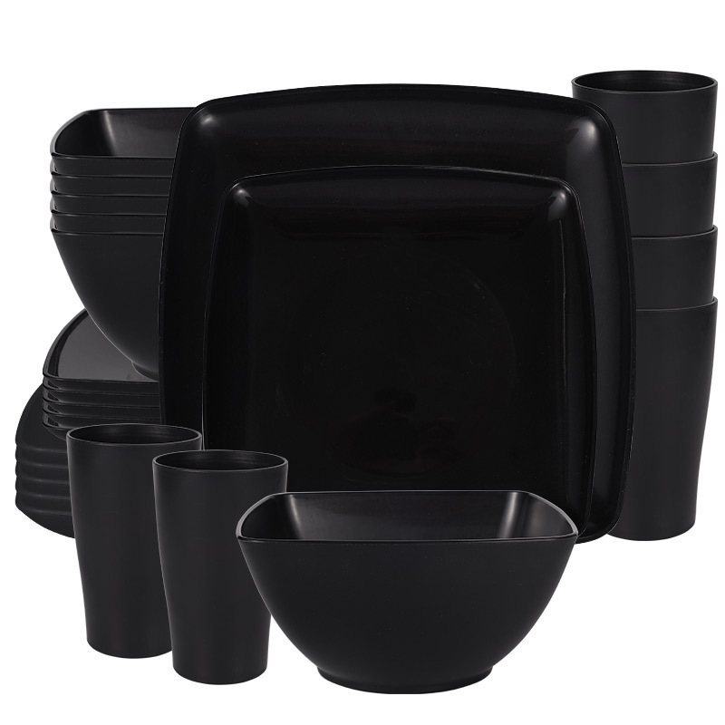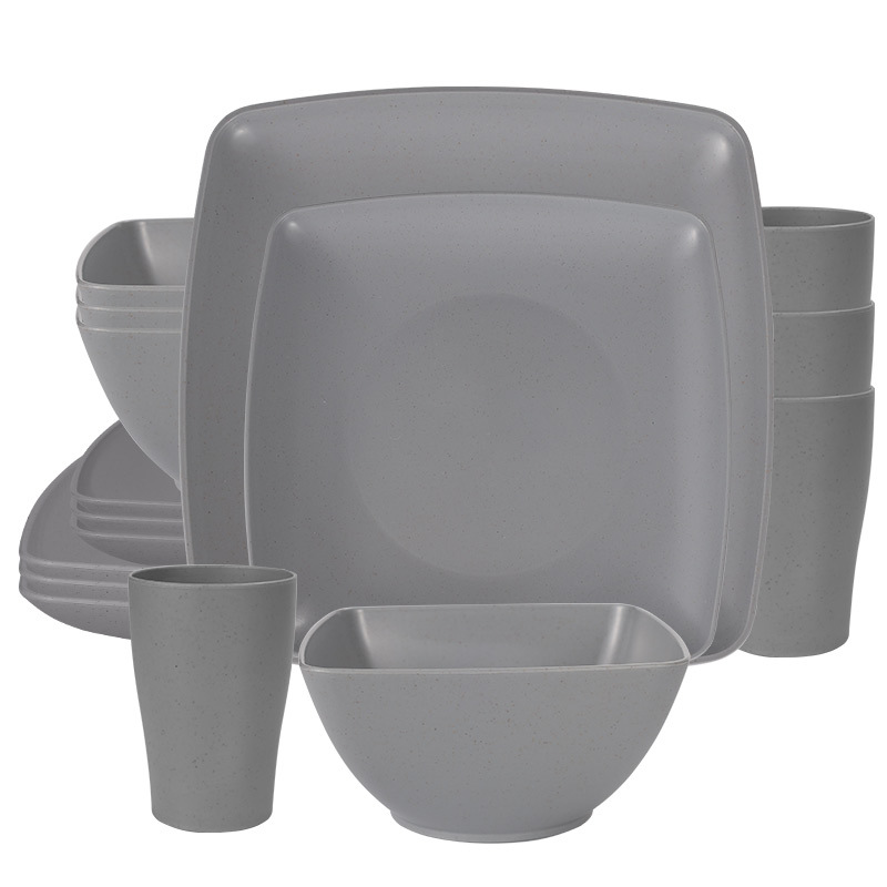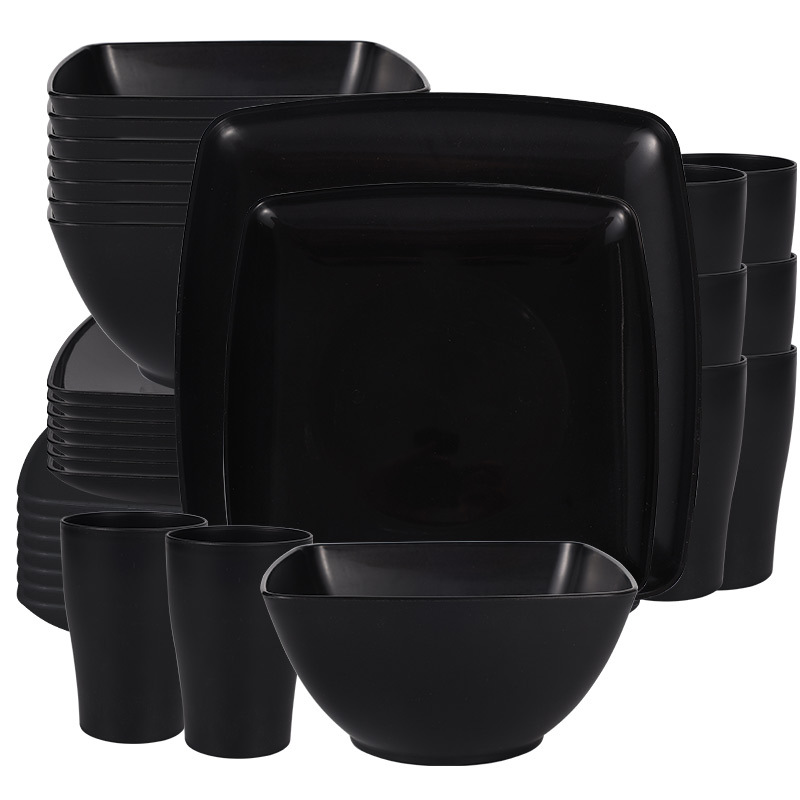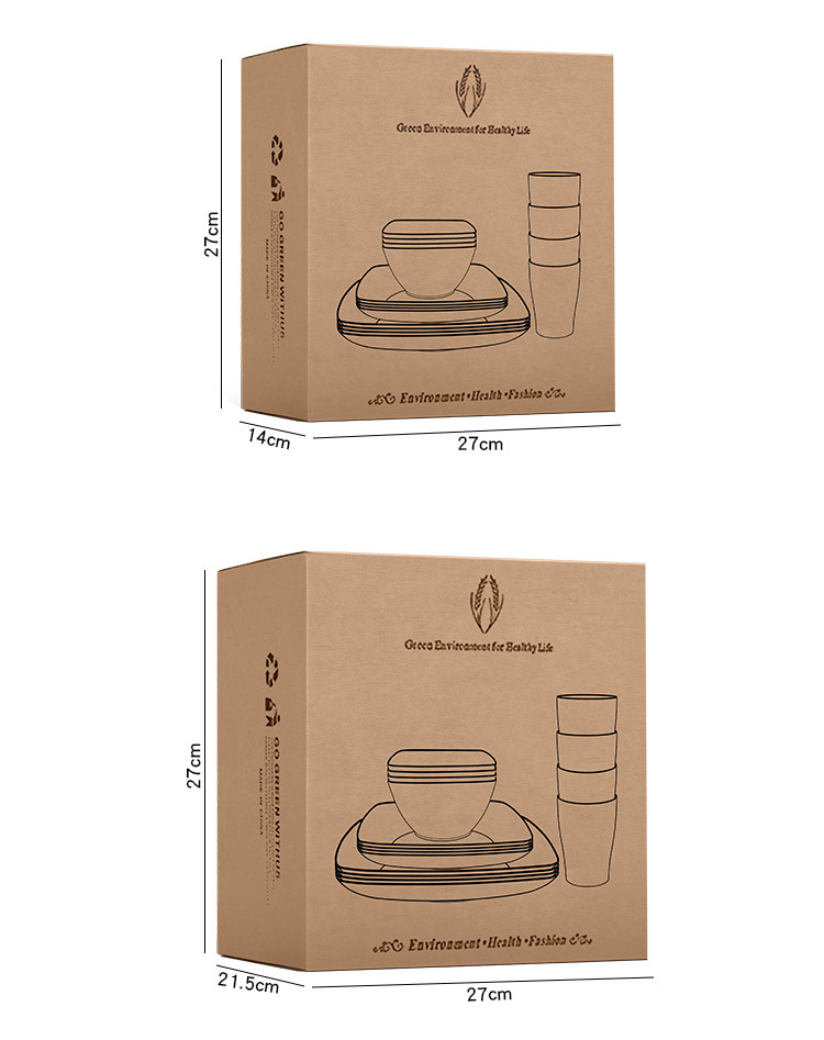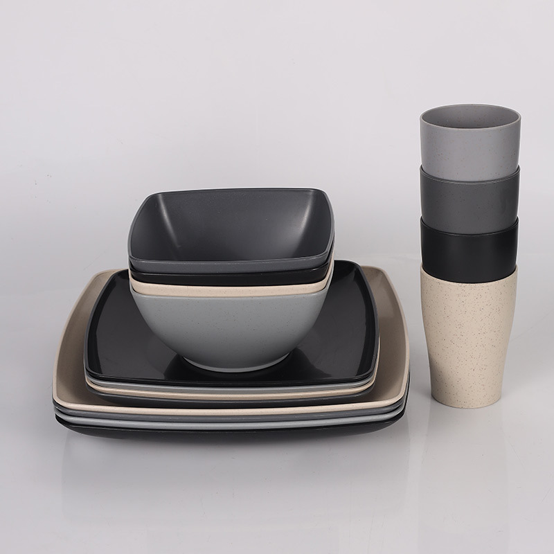 亚马逊热销 方形牛排盘沙拉碗小麦秸秆碗碟盘32PCS盘碗杯礼品套装