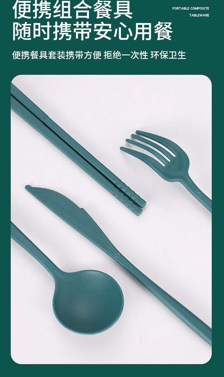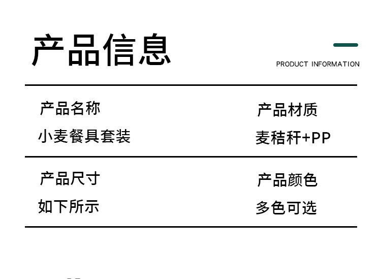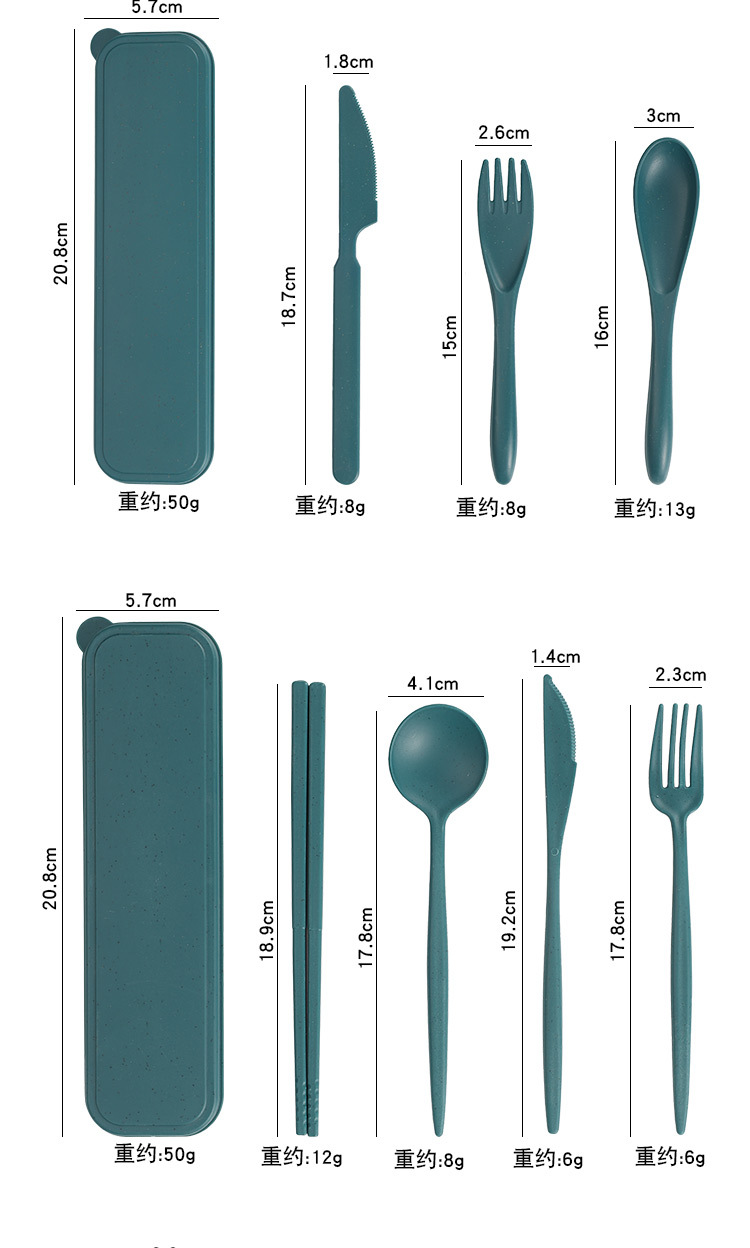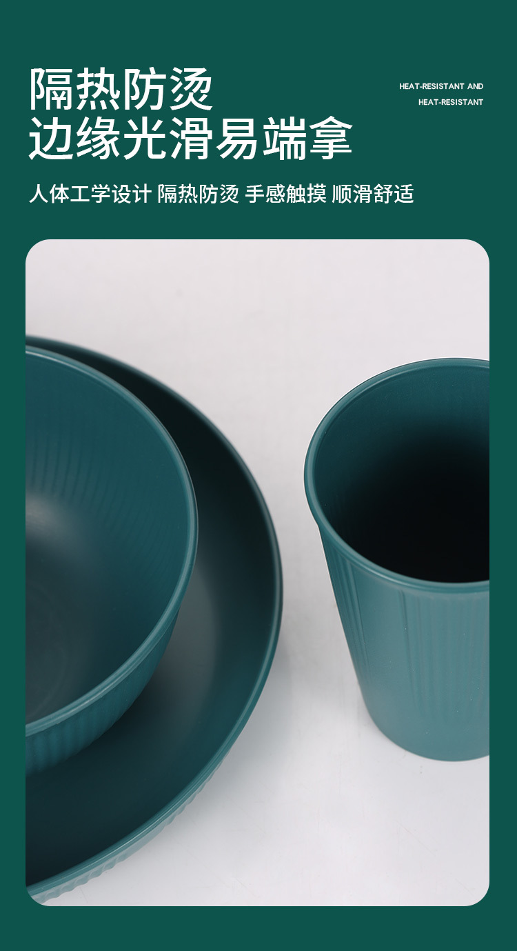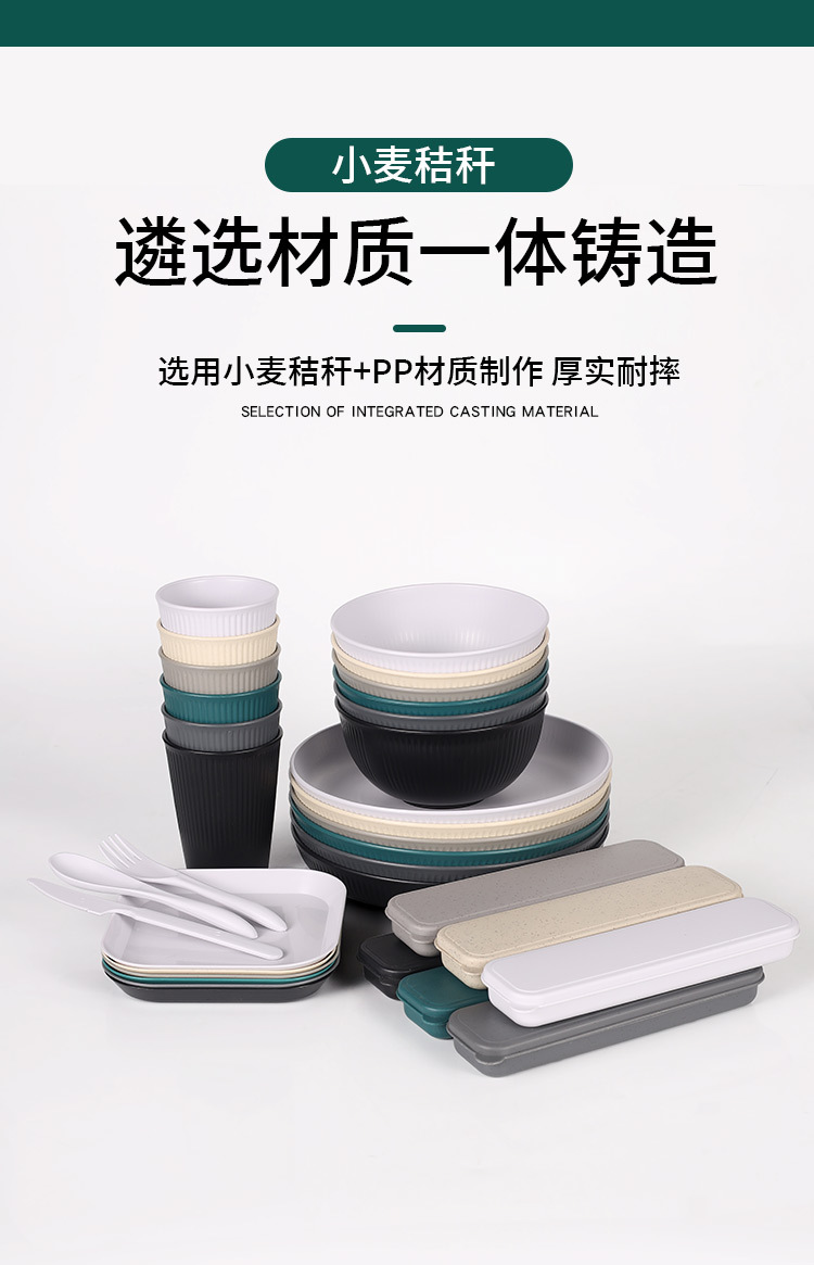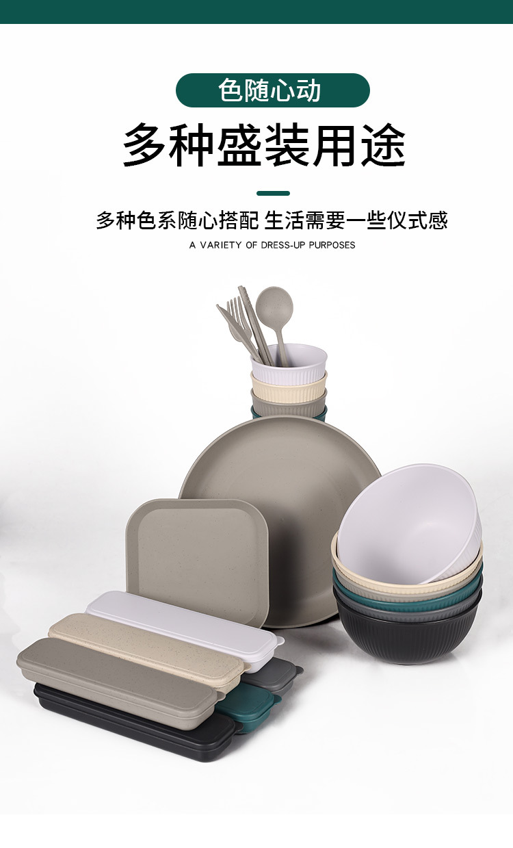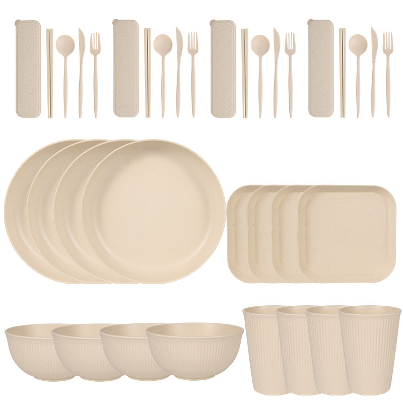 跨境 小麦秸秆PP竖纹新色系盘碗杯碟刀叉勺筷子户外便携餐具套装