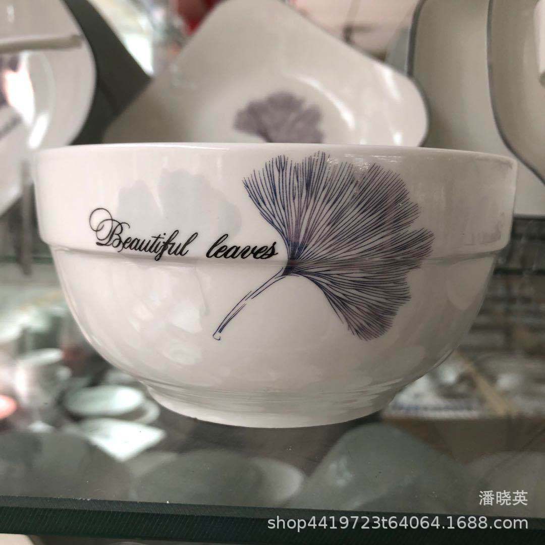 银杏叶陶瓷饭碗厂家批发两元店陶瓷碗盘配套创意家用炒菜盘子批发
