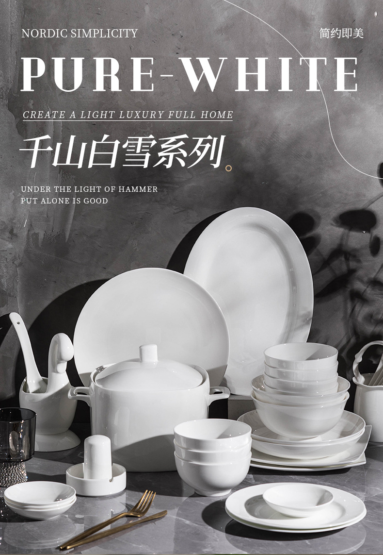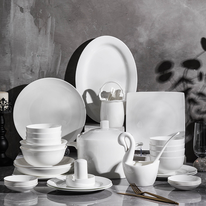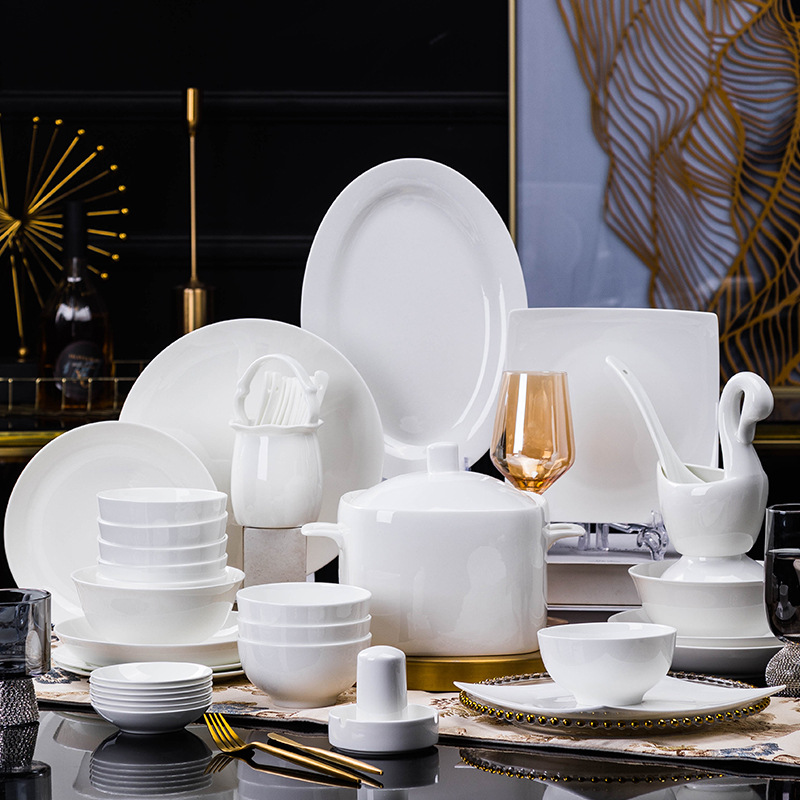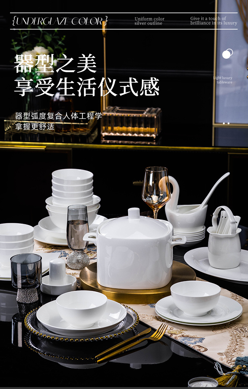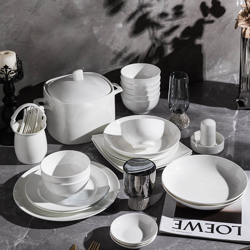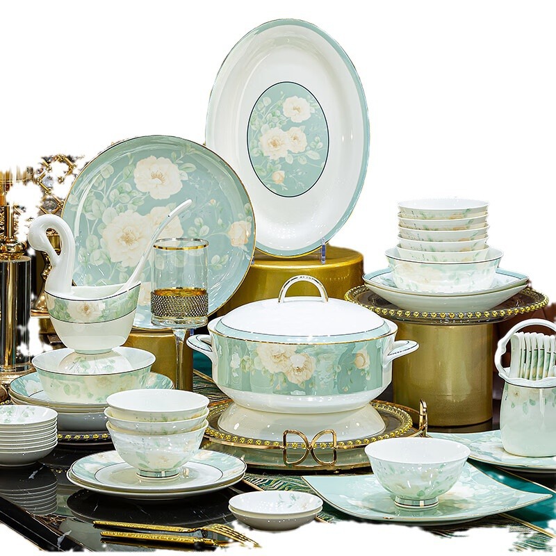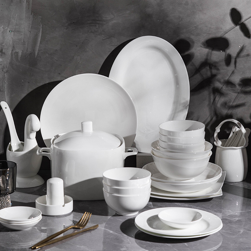 加工定制釉下彩碗碟套装家用乔迁礼品纯色碗碟菜盘子煲汤饭碗骨瓷