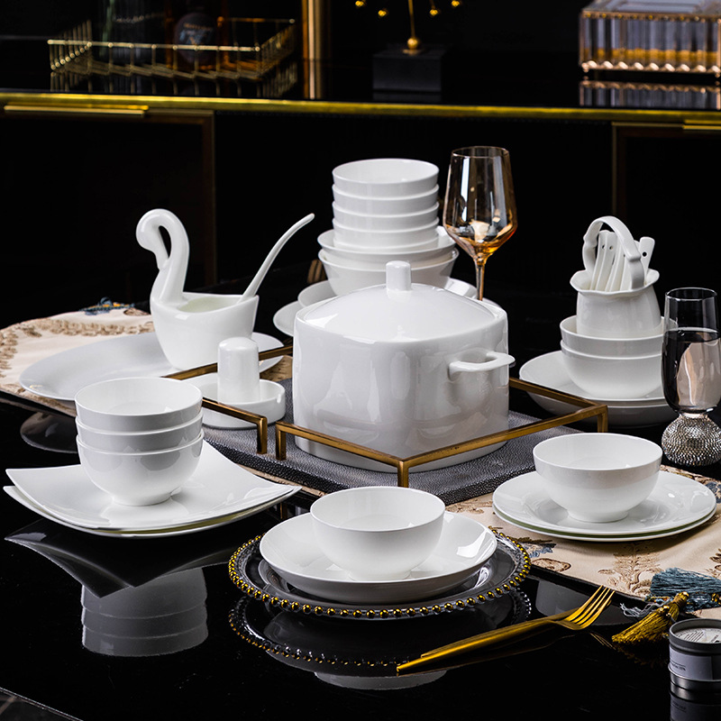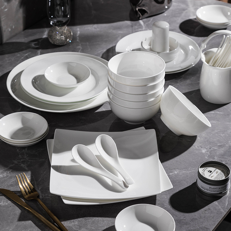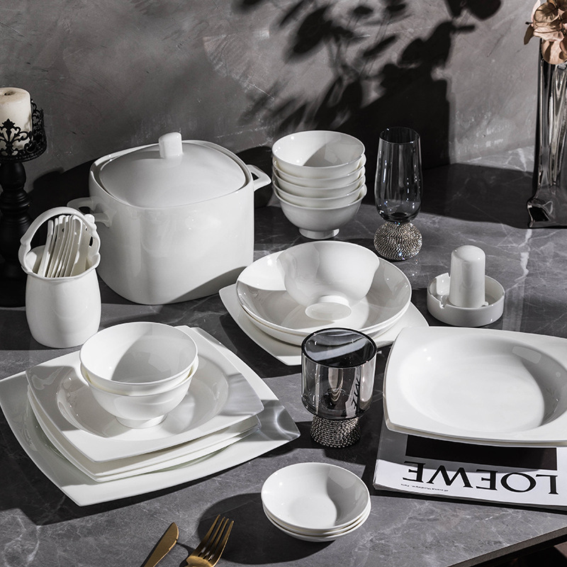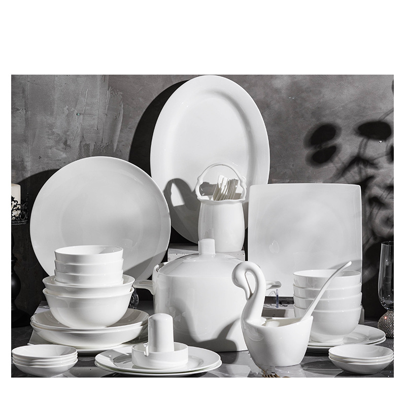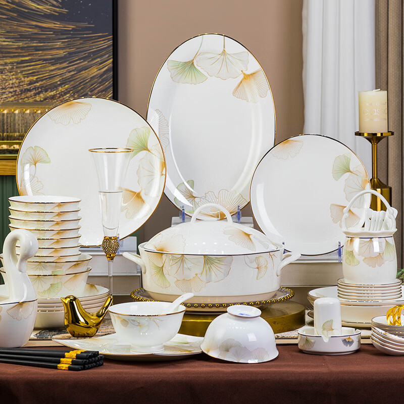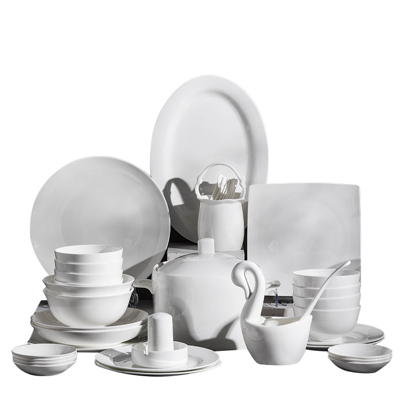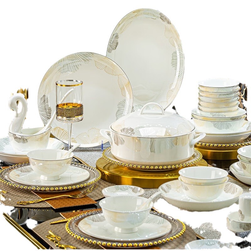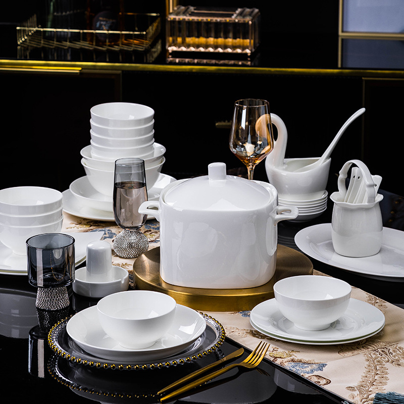 加工定制釉下彩碗碟套装家用乔迁礼品纯色碗碟菜盘子煲汤饭碗骨瓷