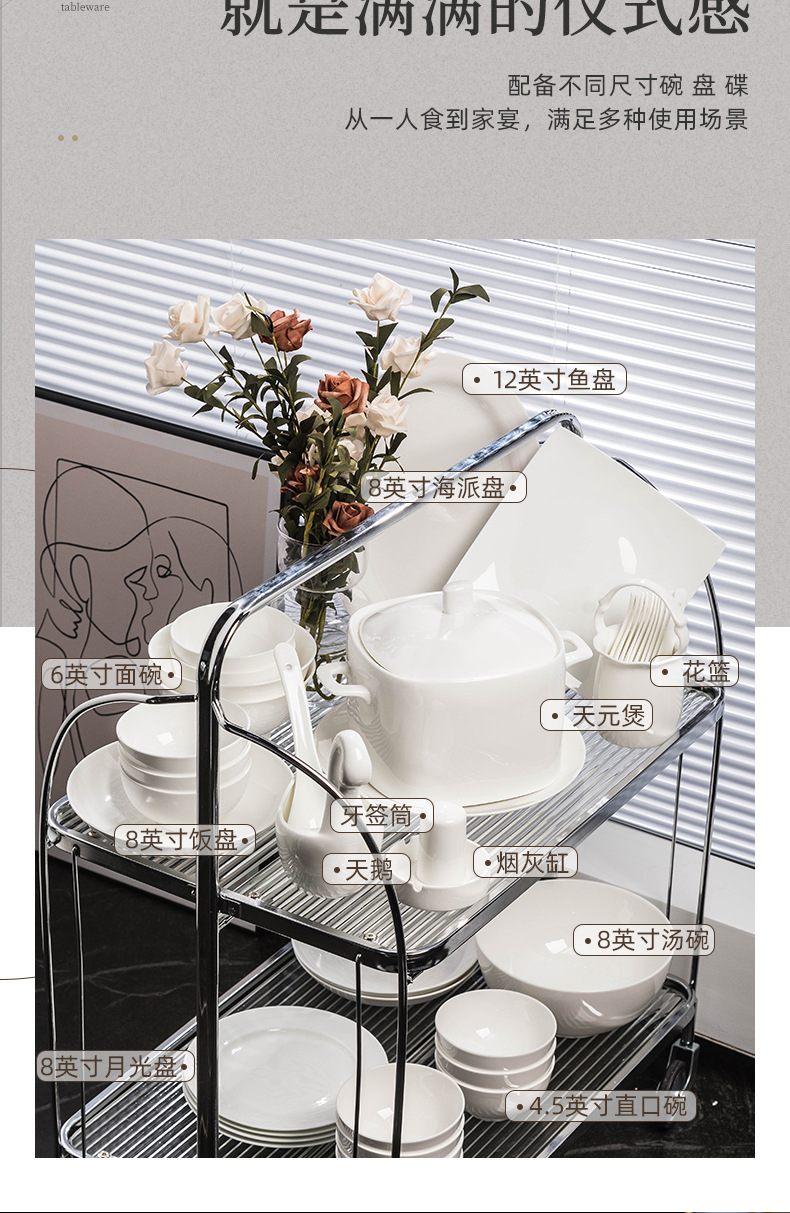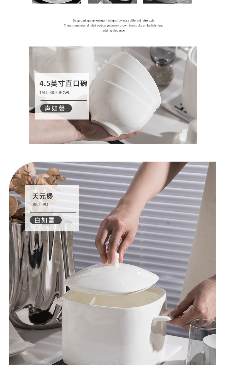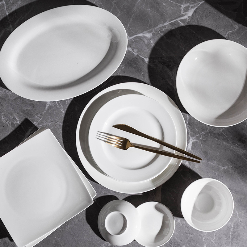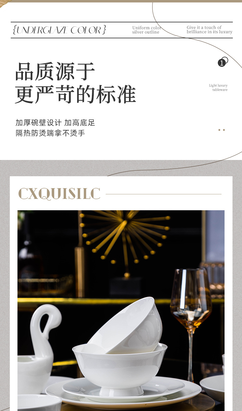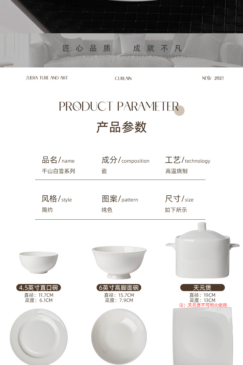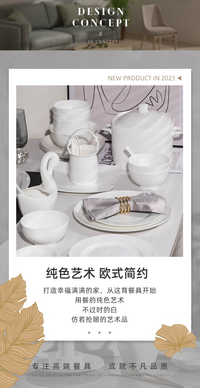 加工定制釉下彩碗碟套装家用乔迁礼品纯色碗碟菜盘子煲汤饭碗骨瓷