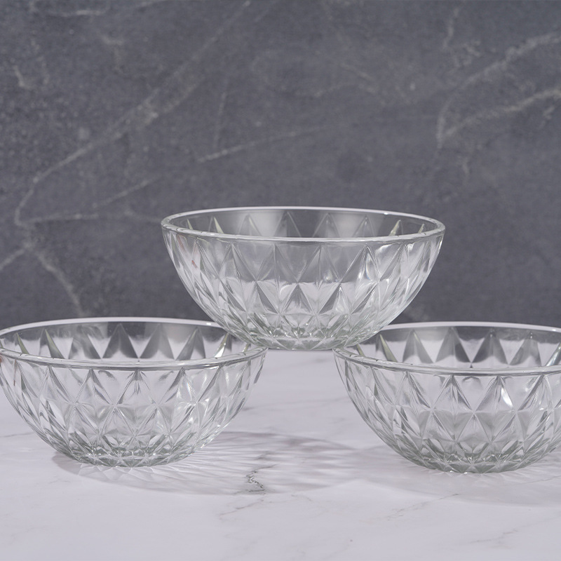 批发钻石纹透明玻璃沙拉碗套装米饭碗汤碗带彩盒活动开业随手礼品