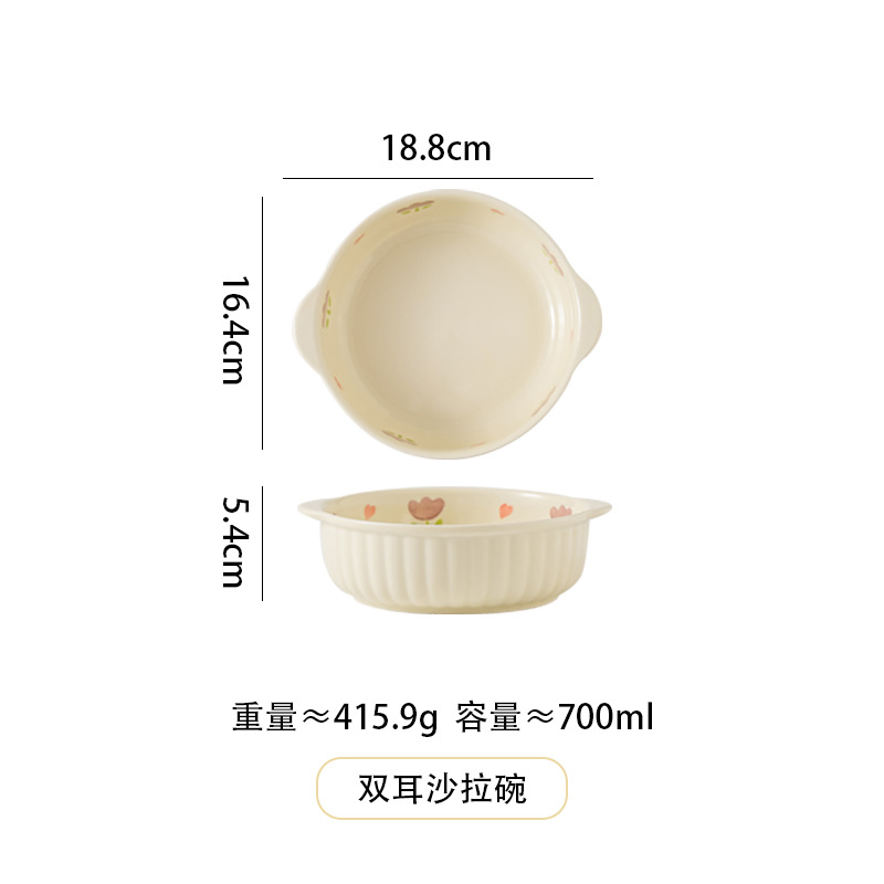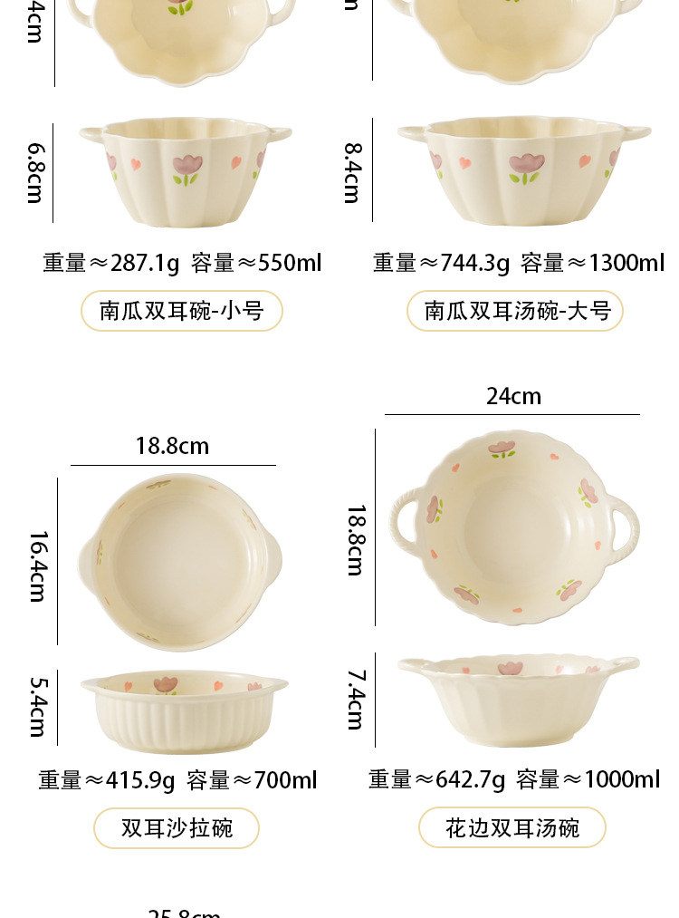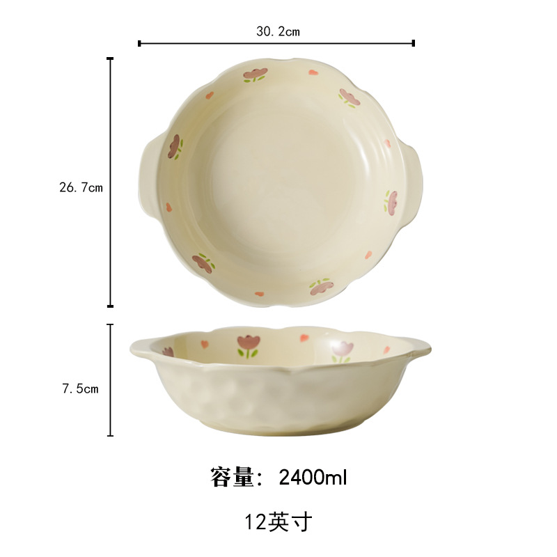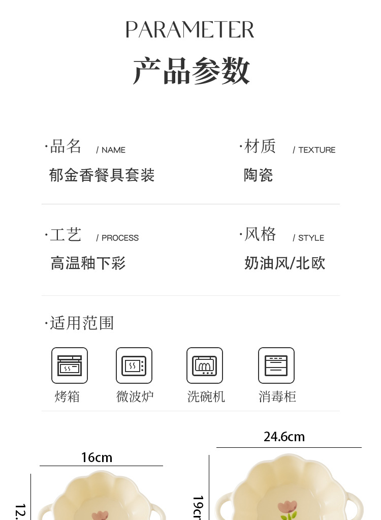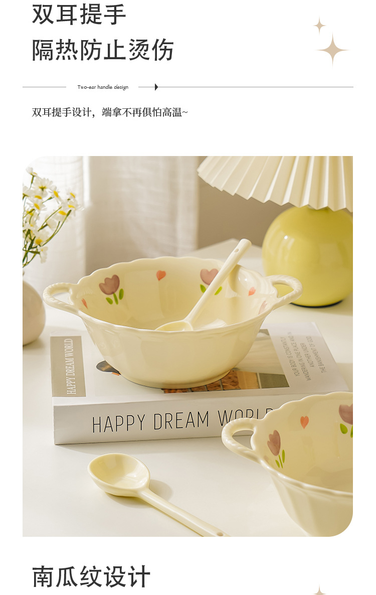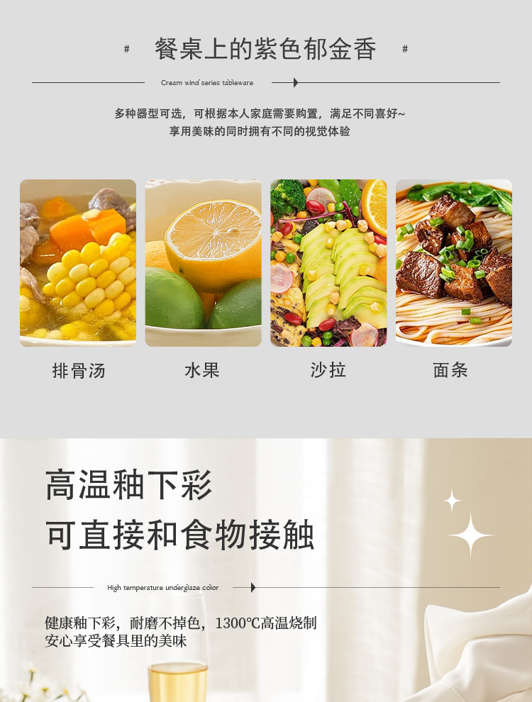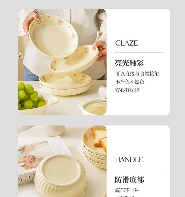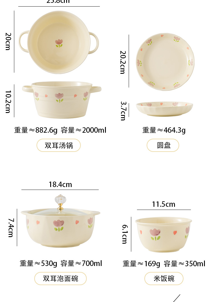 奶油风餐具套装整套釉下彩陶瓷器家庭用大汤碗米饭碗深盘碗勺组合