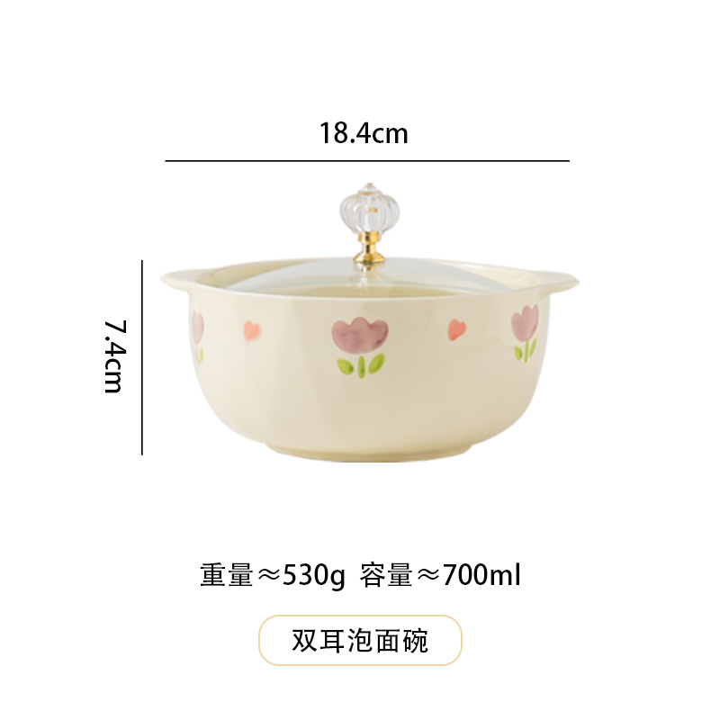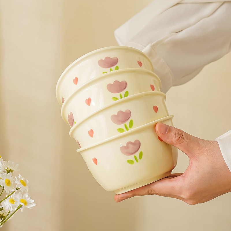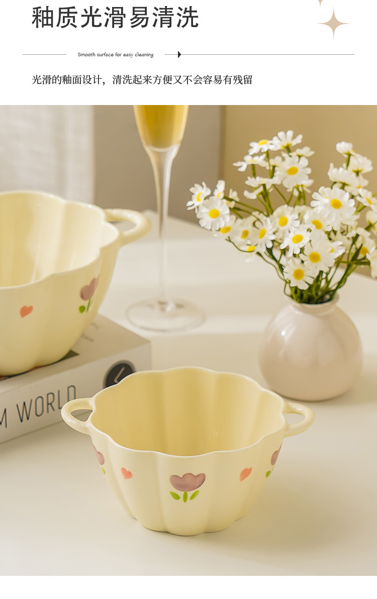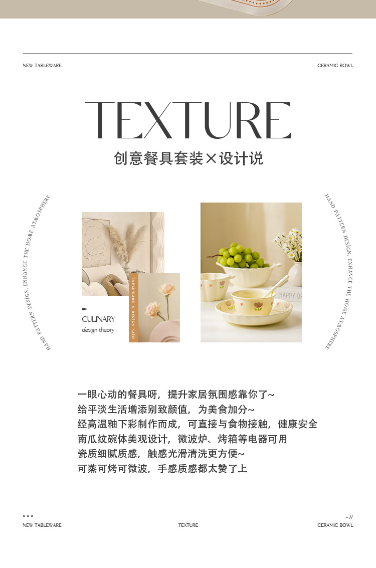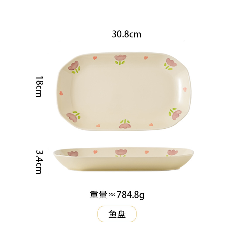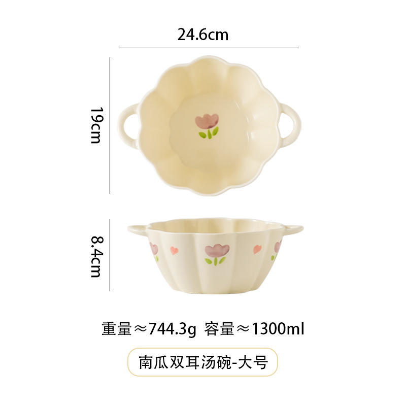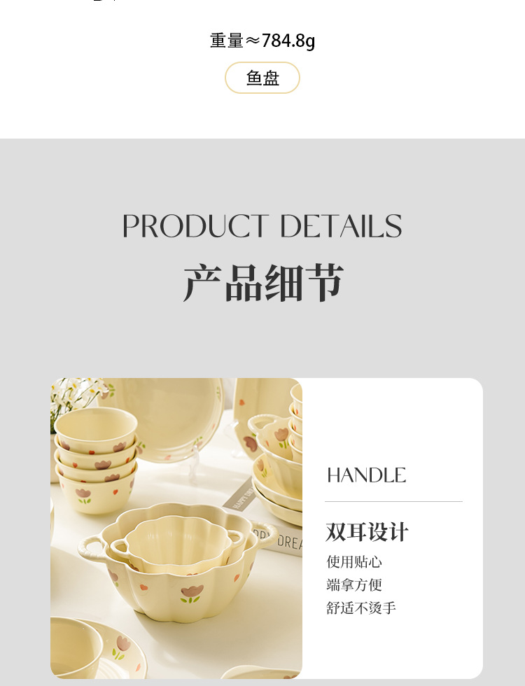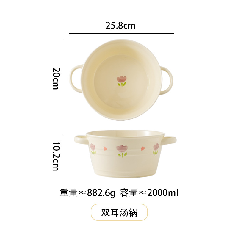 奶油风餐具套装整套釉下彩陶瓷器家庭用大汤碗米饭碗深盘碗勺组合