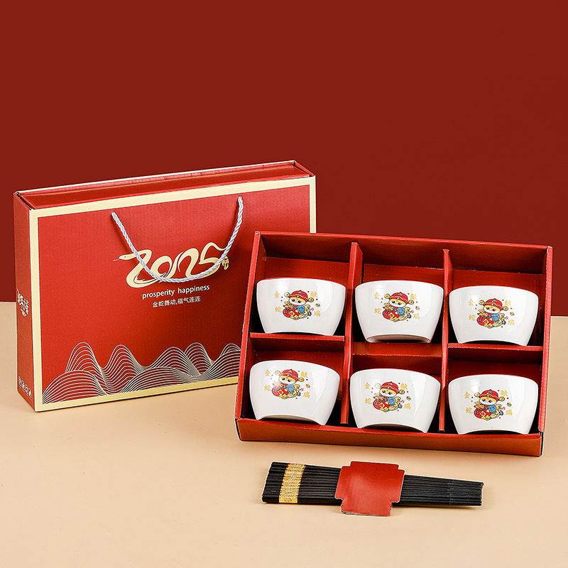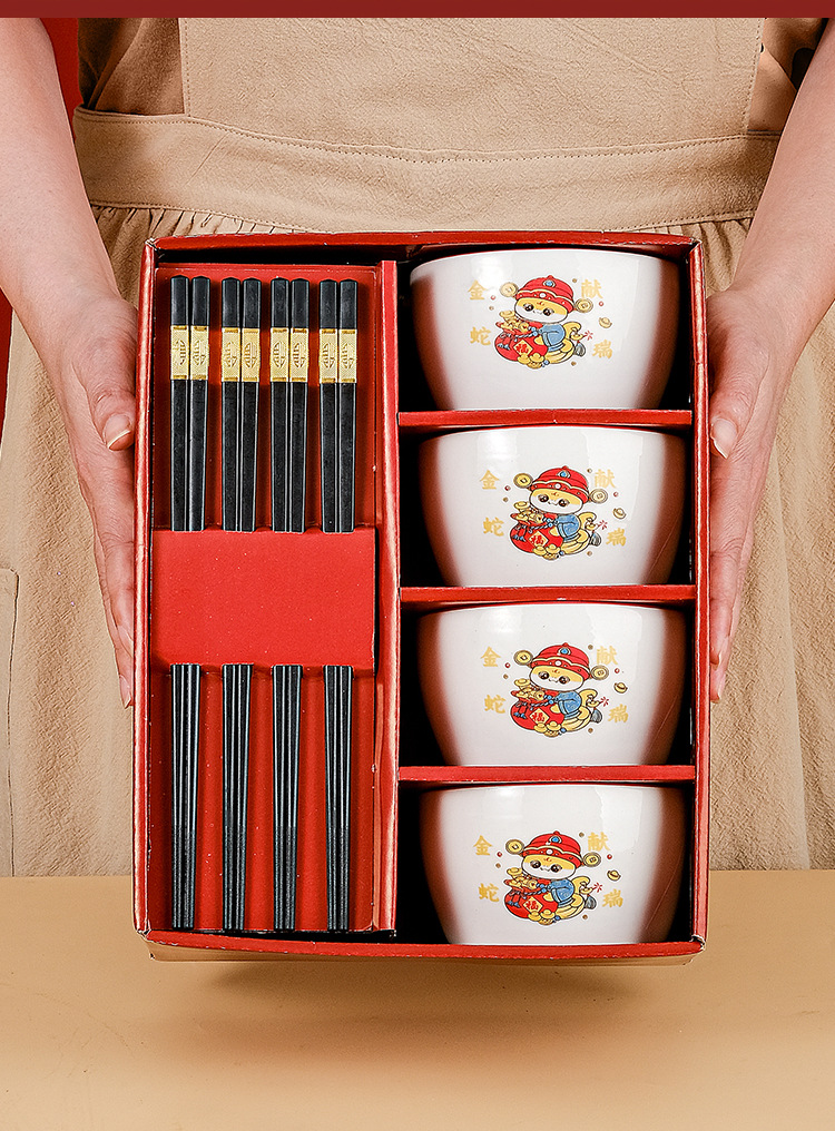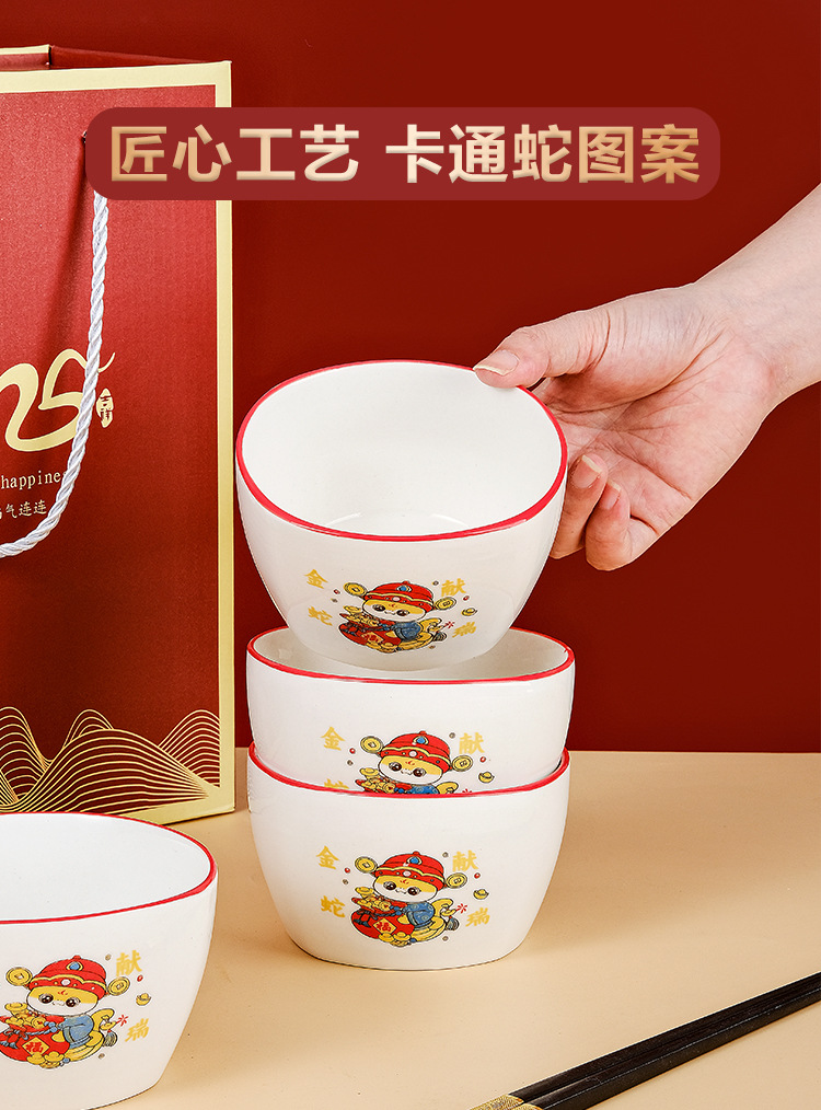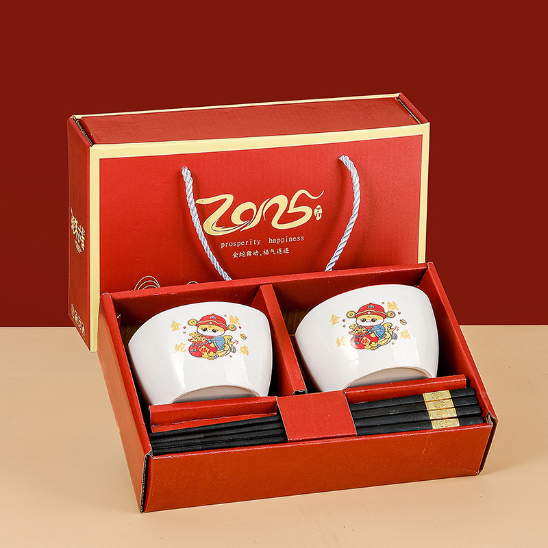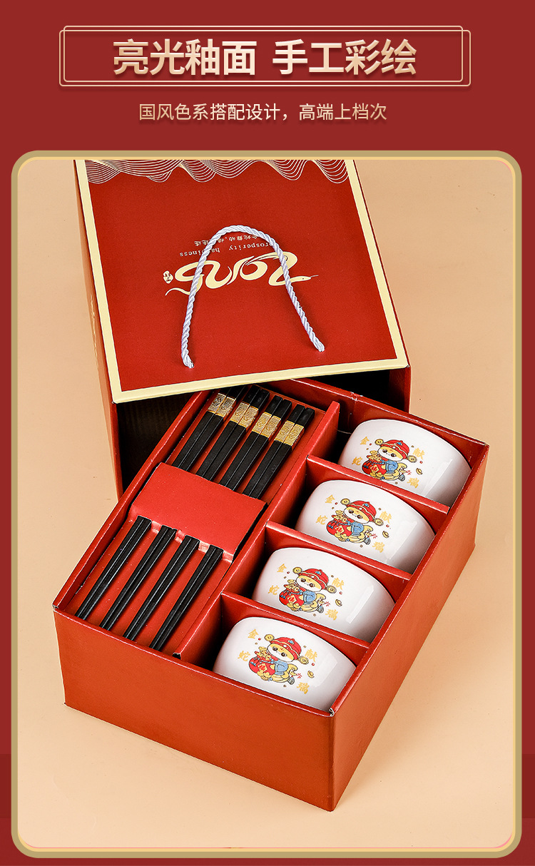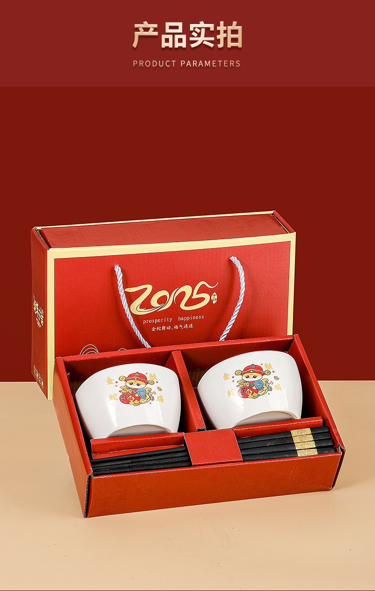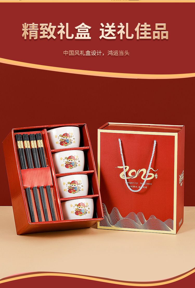 新年礼物碗筷套装陶瓷餐具开业活动商务小礼品碗碟套装蛇年随手礼