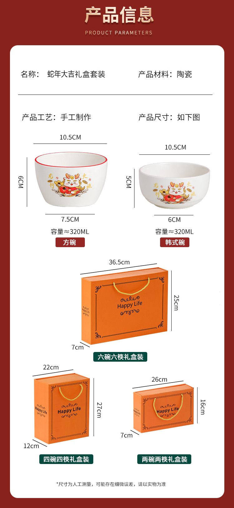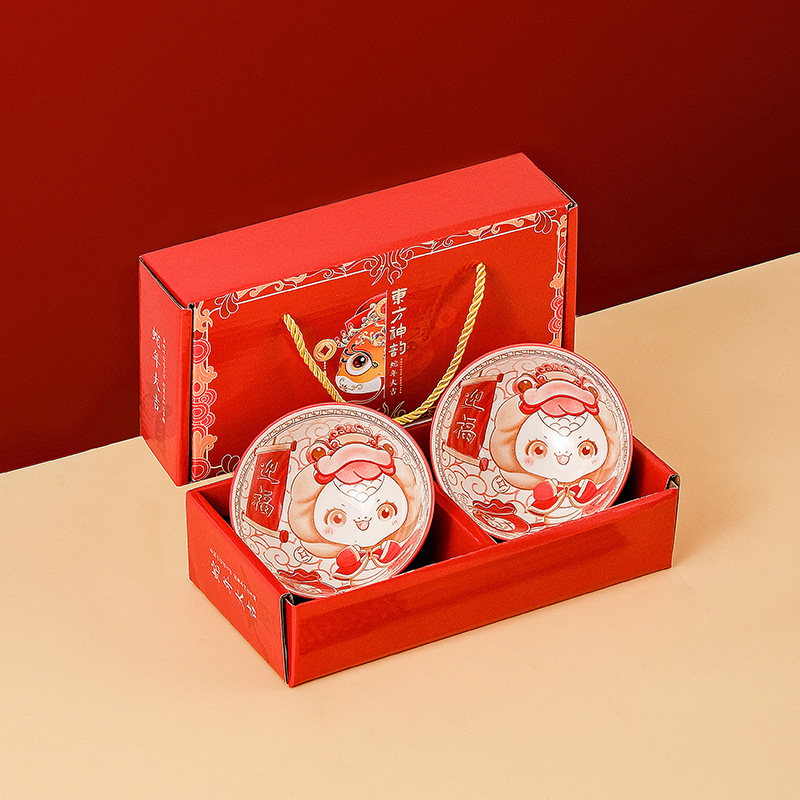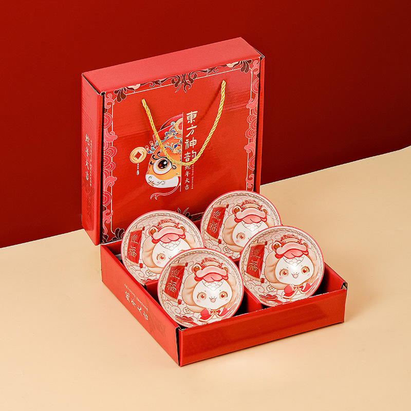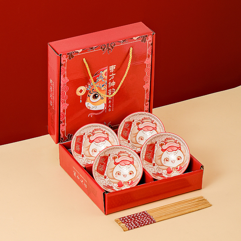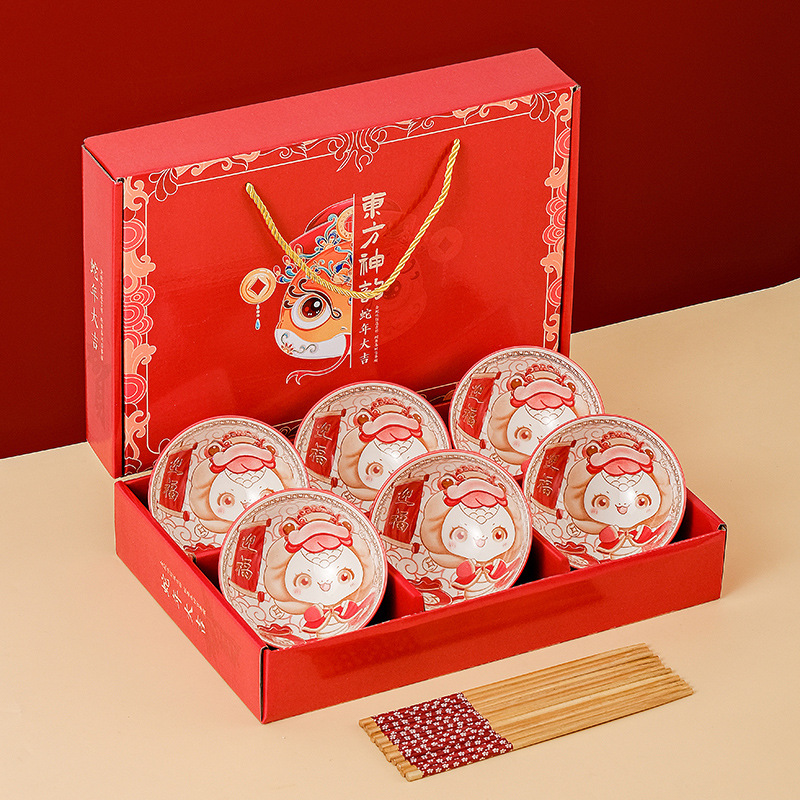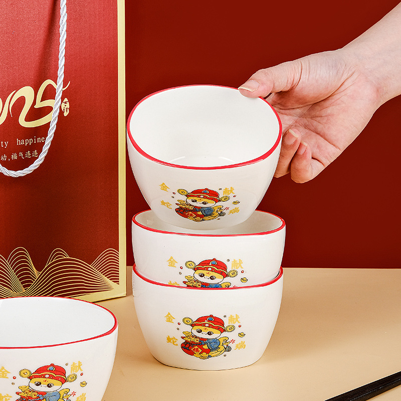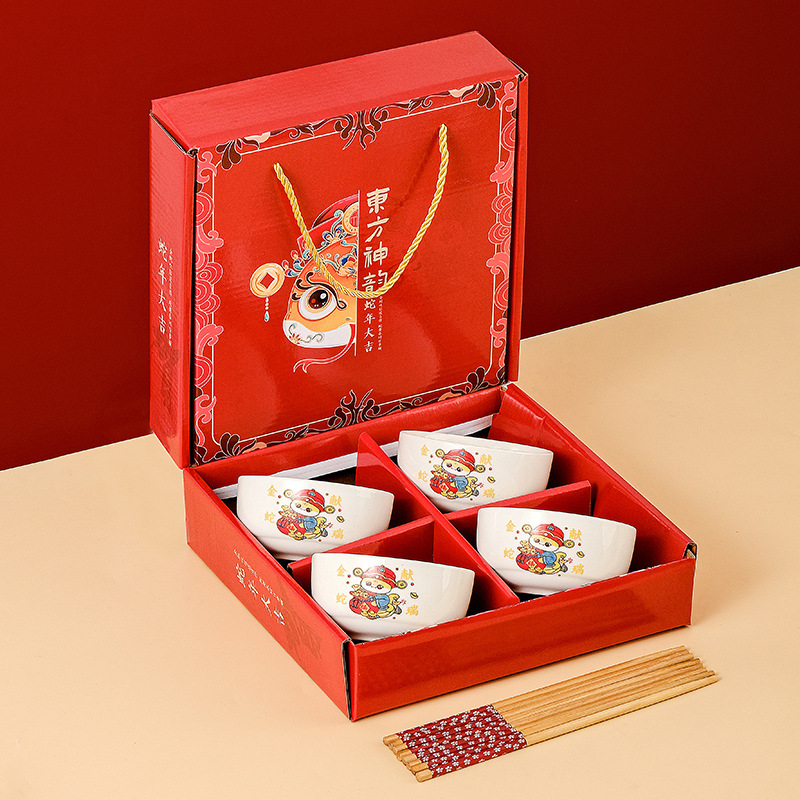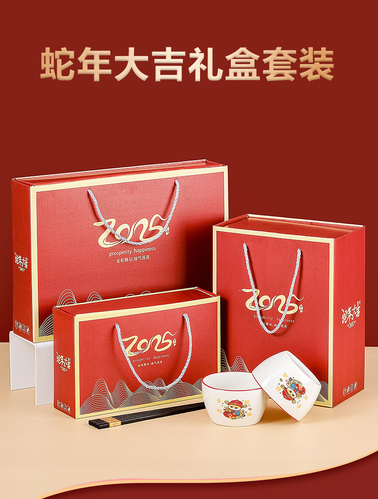 新年礼物碗筷套装陶瓷餐具开业活动商务小礼品碗碟套装蛇年随手礼