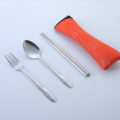 不锈钢餐具便携餐具三件套筷子叉子勺套装布袋餐具定LOGO