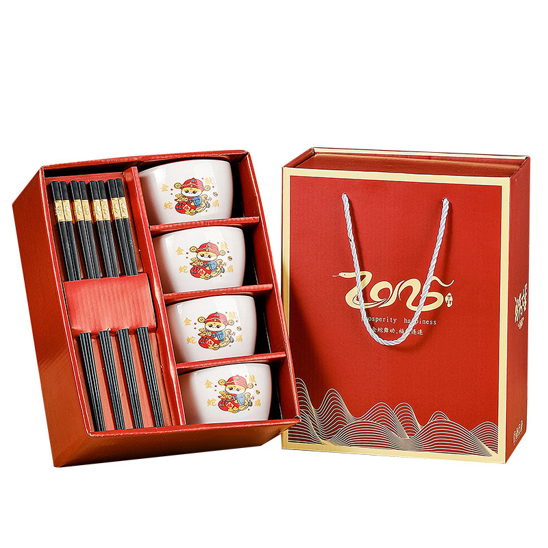 蛇年陶瓷碗筷套装碗碟餐具碗开业结婚实用小礼品瓷碗具新年伴手礼