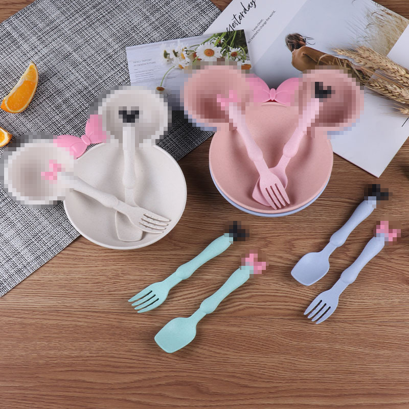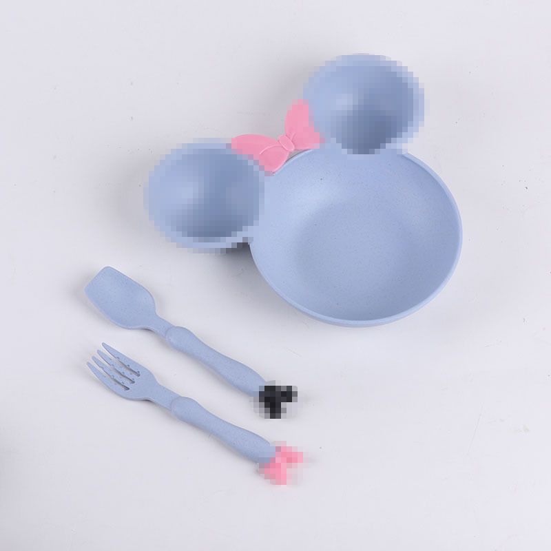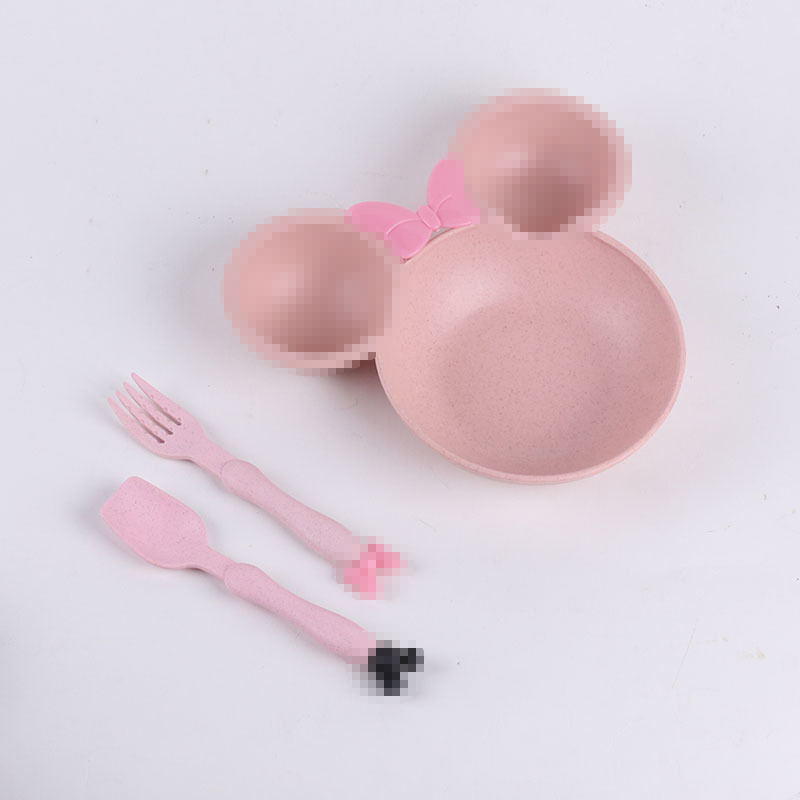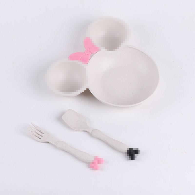 小麦秸秆餐具套装可爱卡通家用儿童碗幼儿园宝宝吃饭勺叉碗三件套
