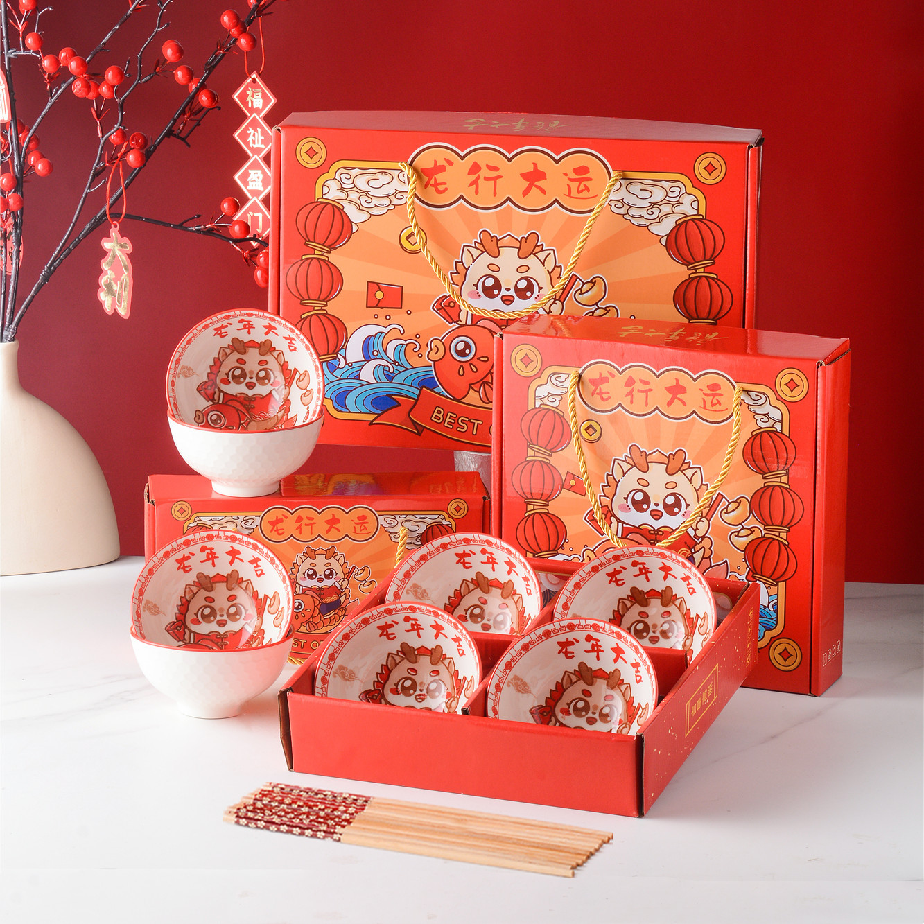 | 6 bowls, 6 chopsticks gift boxes (20 sets per box)(6碗6筷礼盒装(一箱20套)) | USD $2.25 | 86364 set available |