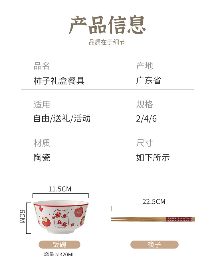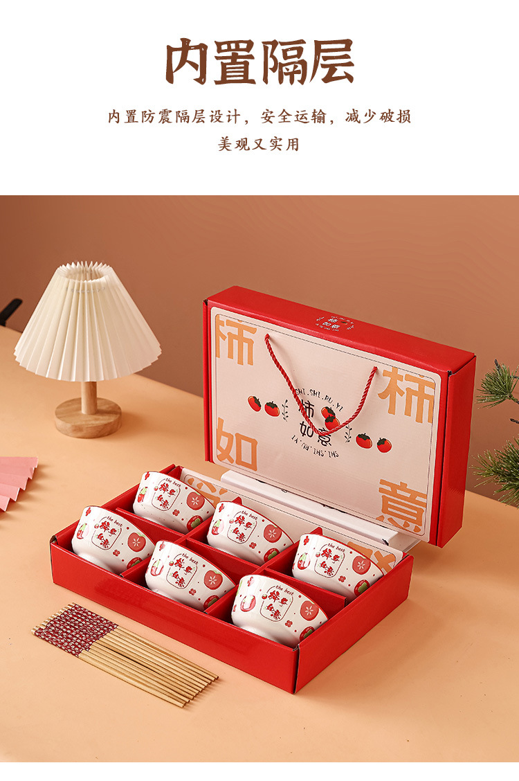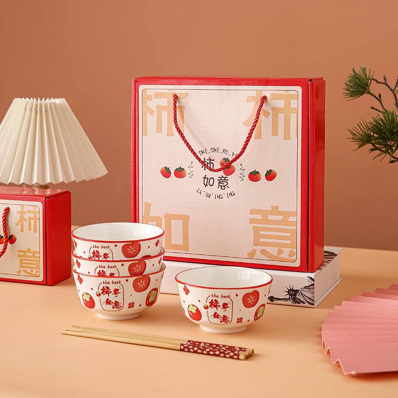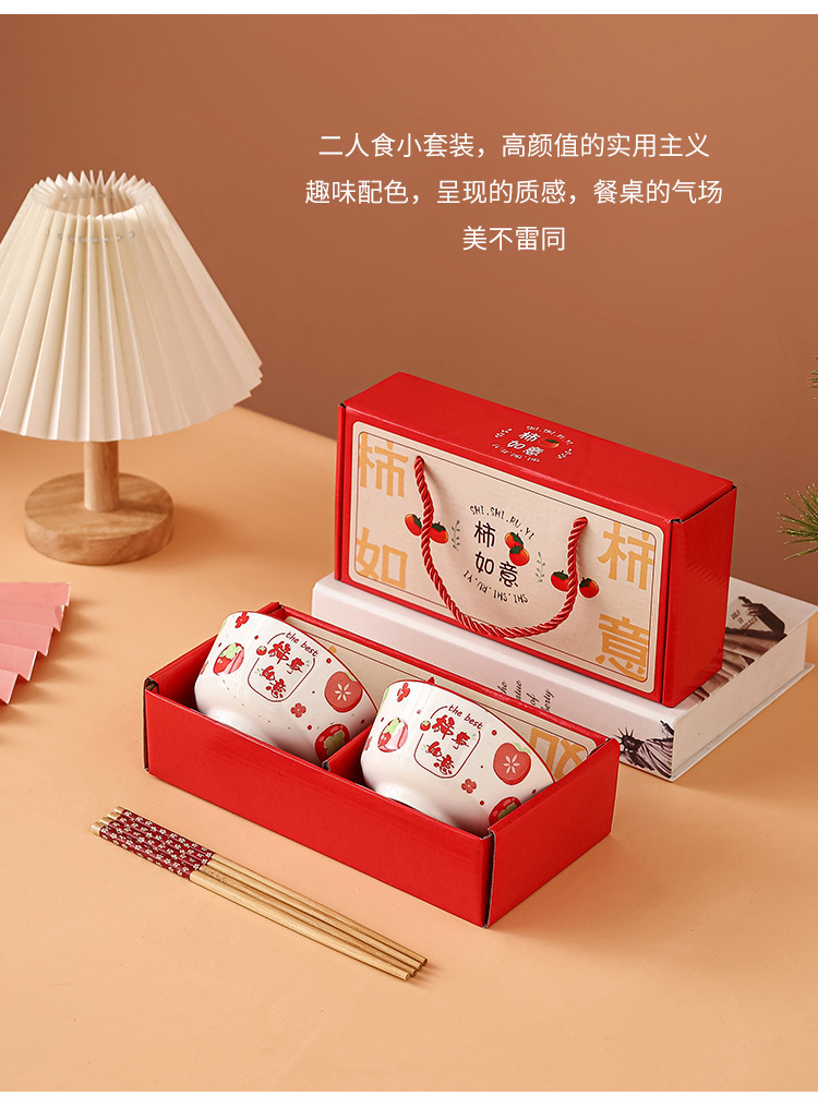 外花釉下彩柿柿如意创意陶瓷碗筷套装碗碟套装碗套装礼盒装礼品碗