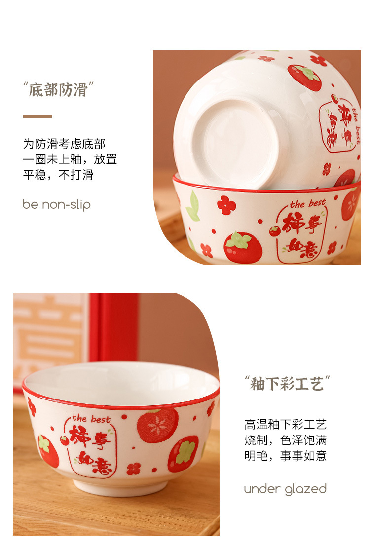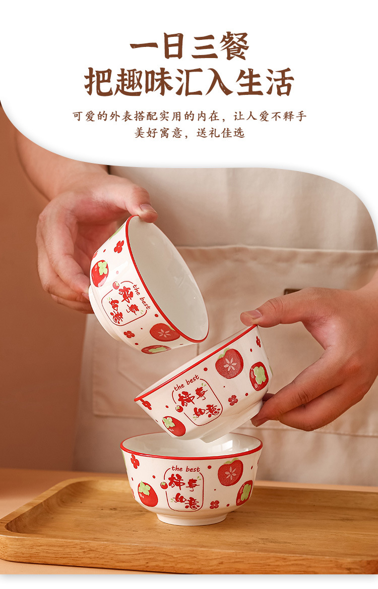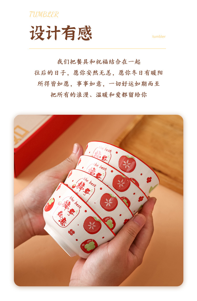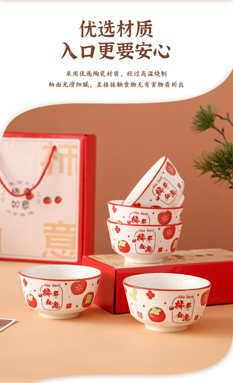 外花釉下彩柿柿如意创意陶瓷碗筷套装碗碟套装碗套装礼盒装礼品碗