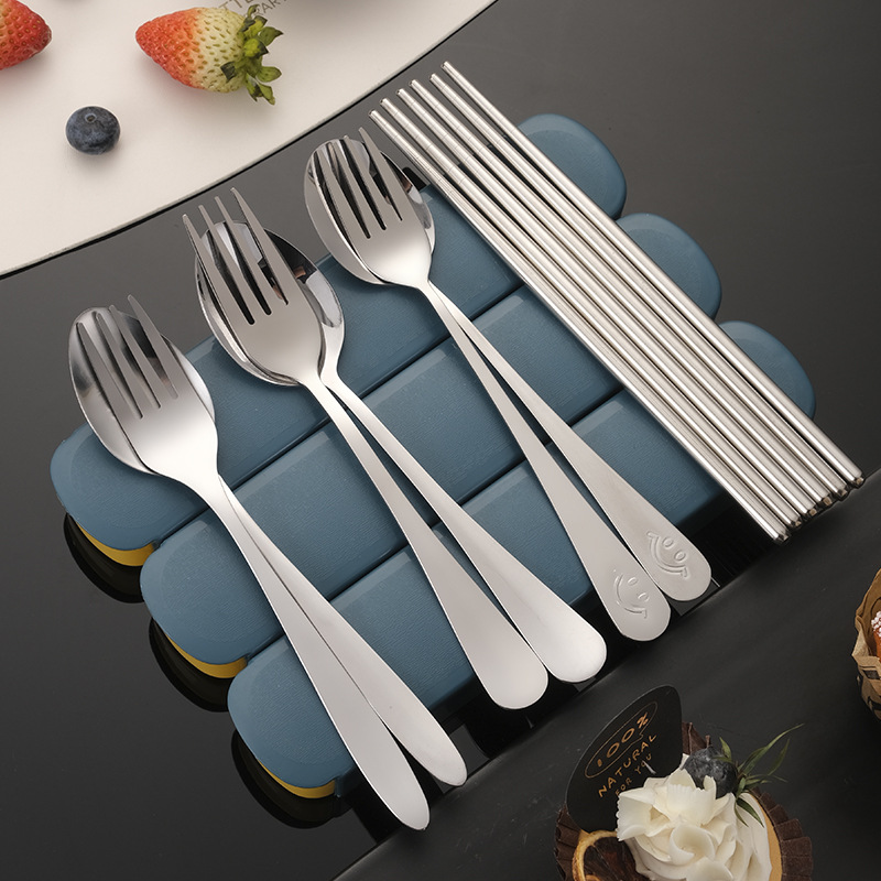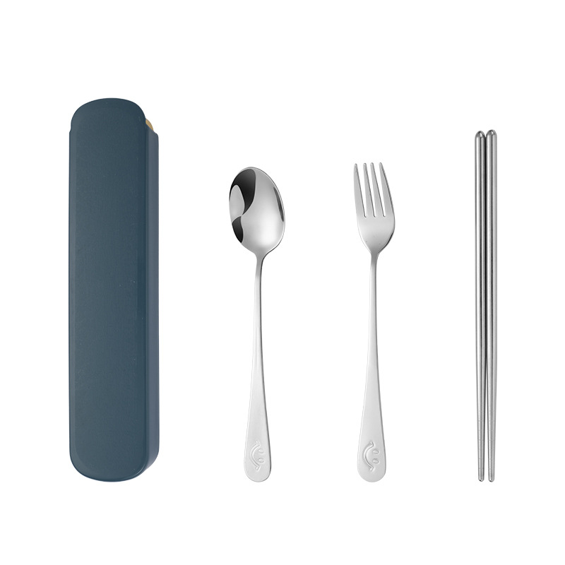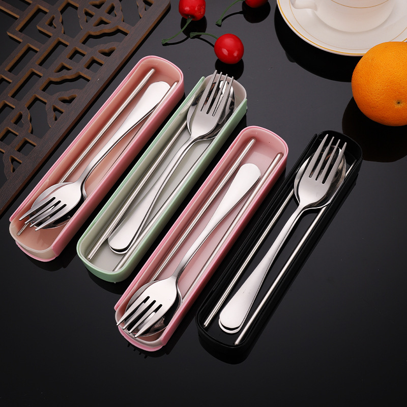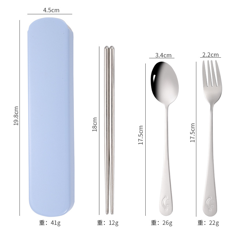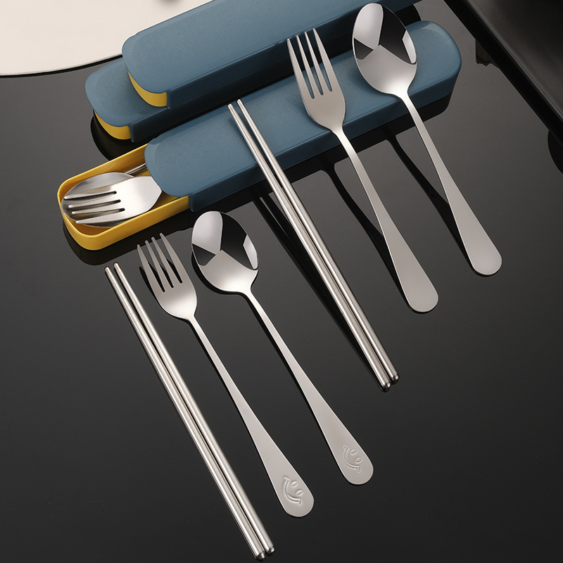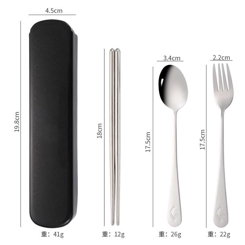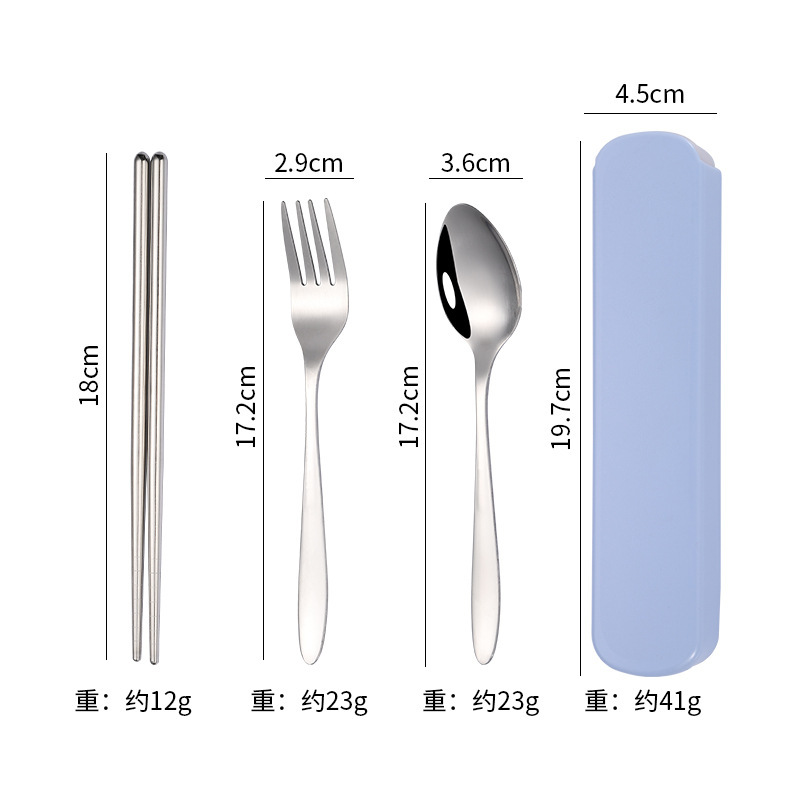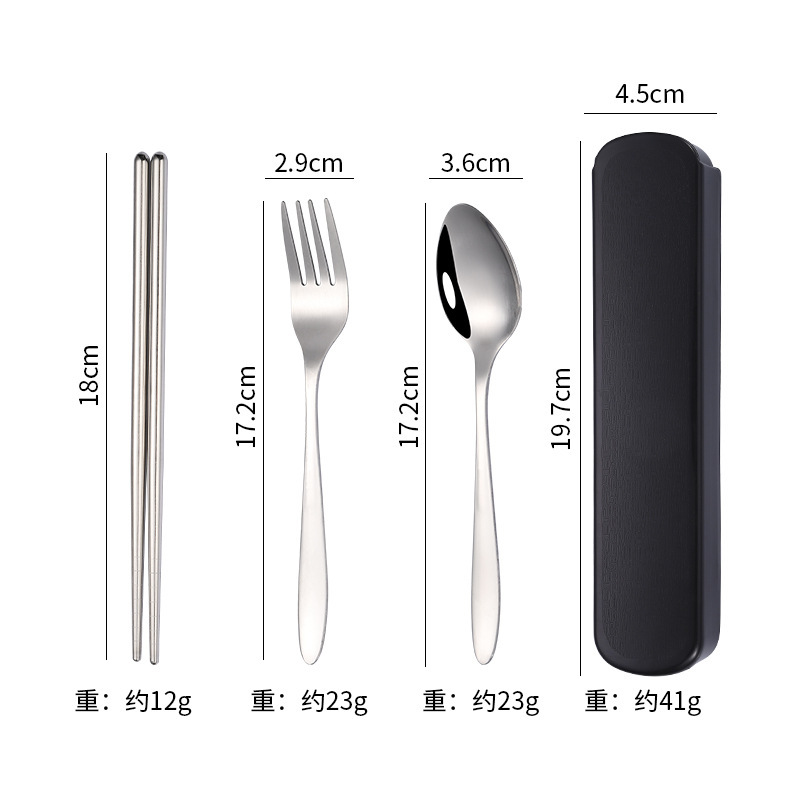 现货不锈钢餐具套装地推礼品叉子筷子勺子一套便携餐具三件套批发