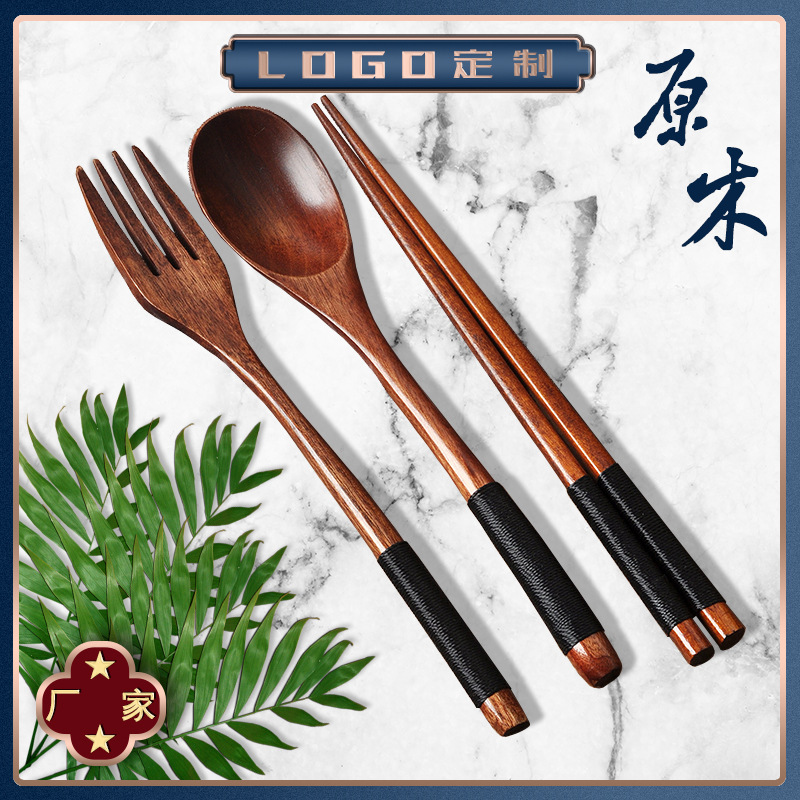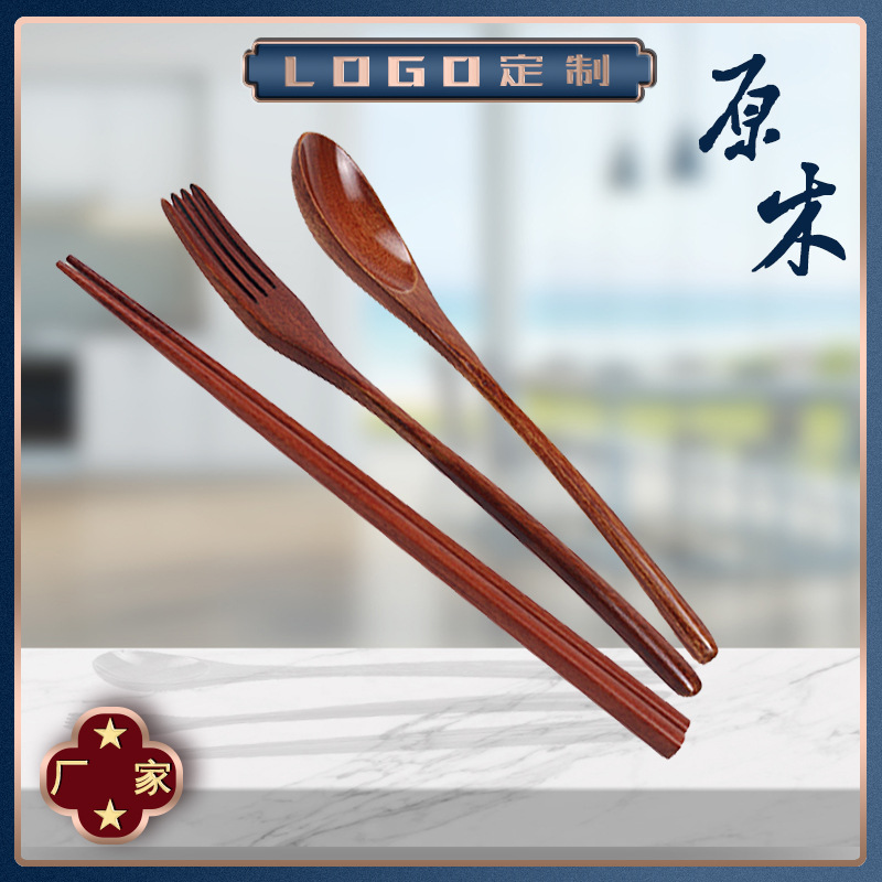 汤勺批发楠木勺叉筷三件套家用餐具筷子勺子日式木勺子木叉木筷子