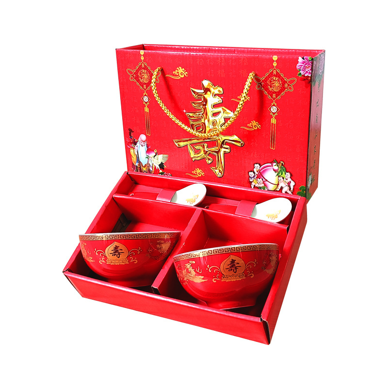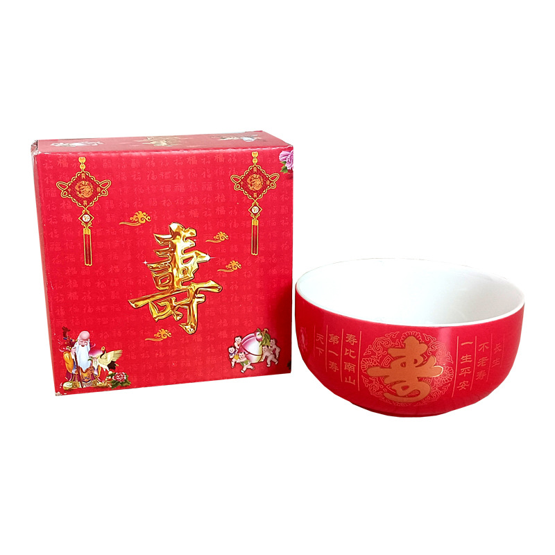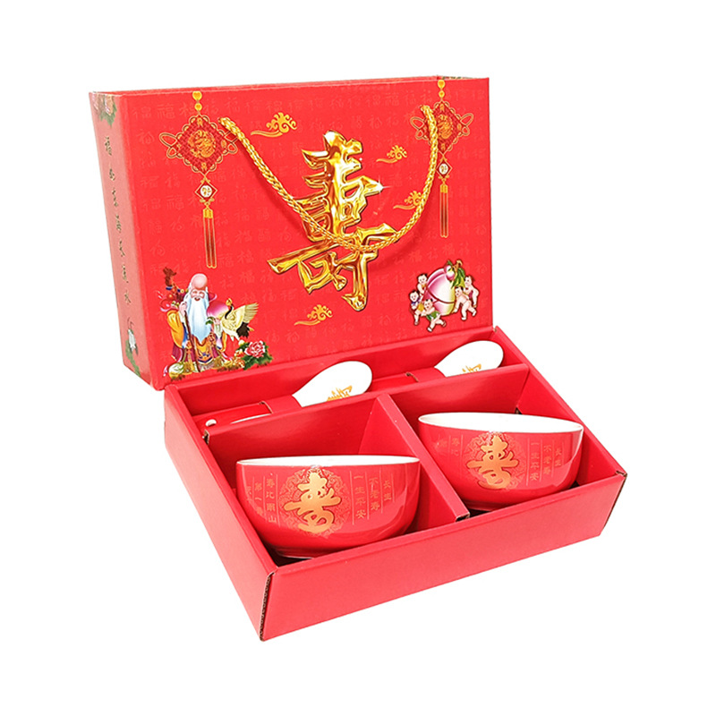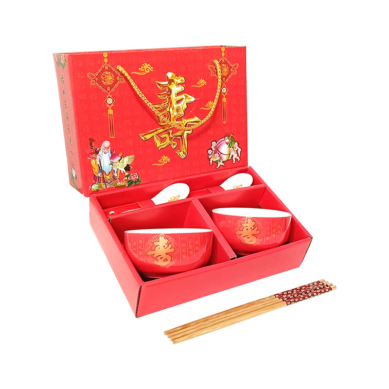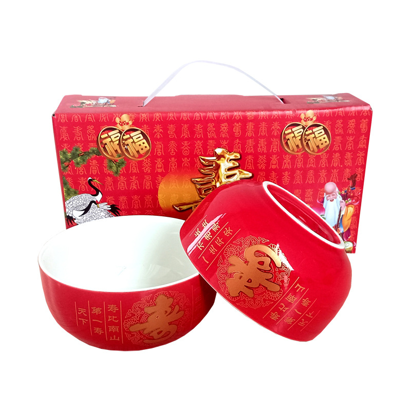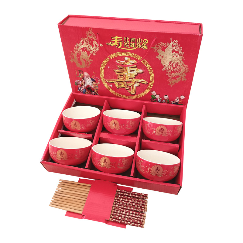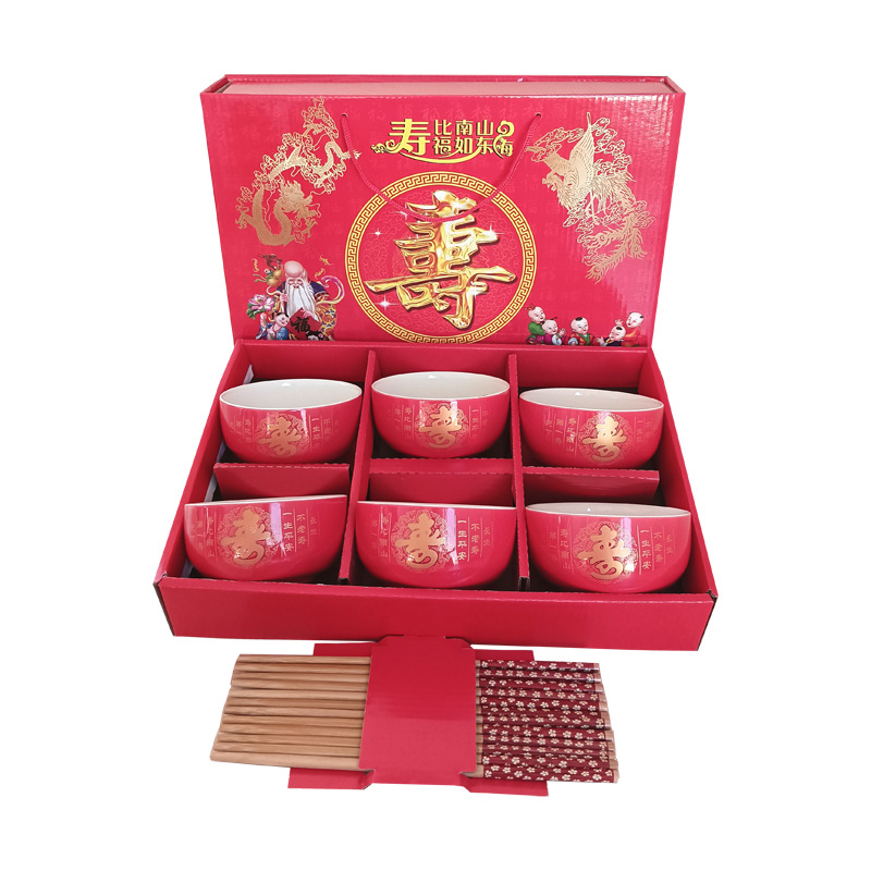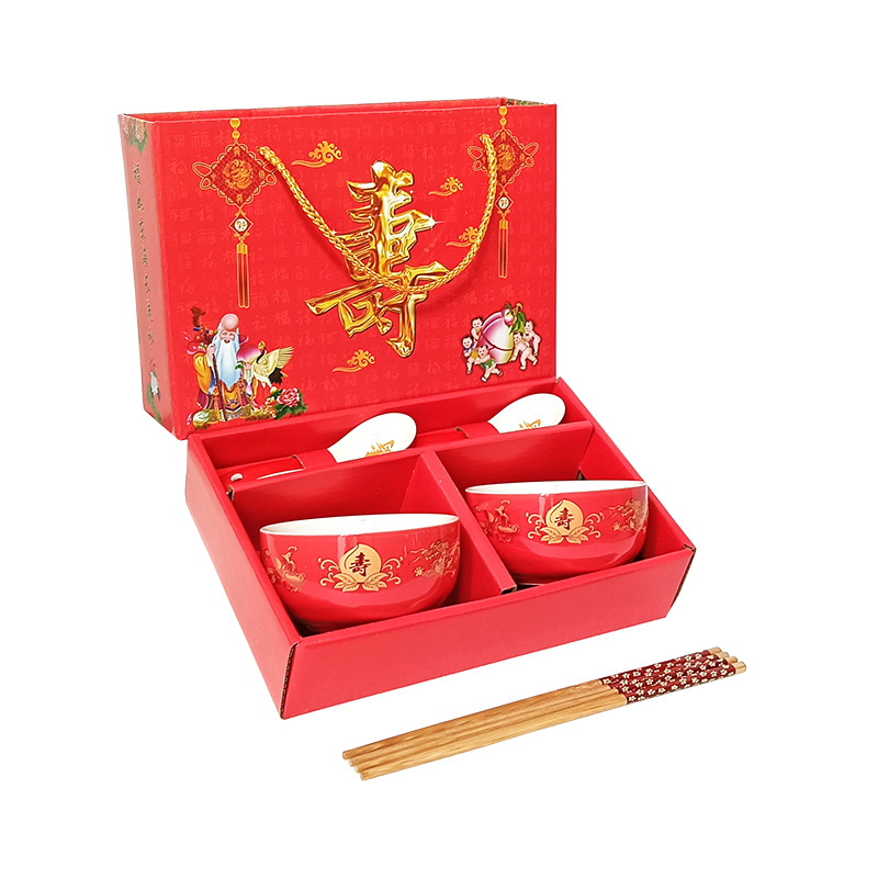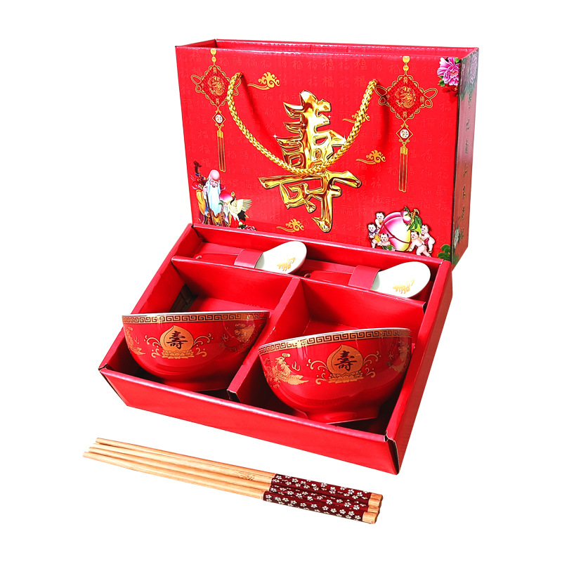 碗套装陶瓷红釉福碗寿碗喜碗红色礼盒回礼碗筷餐具伴手礼加印LOGO