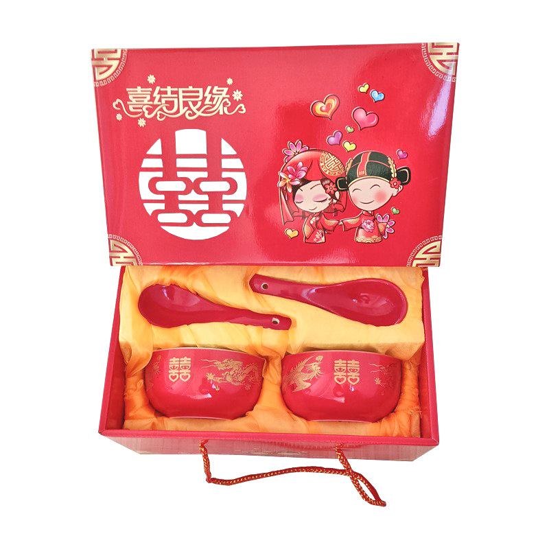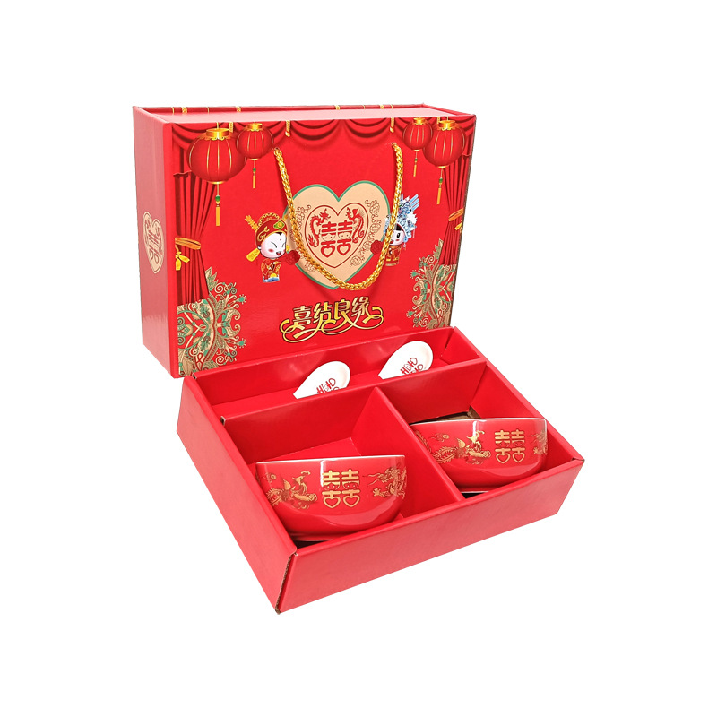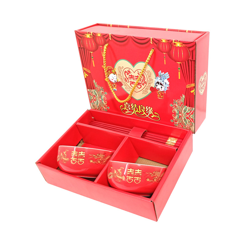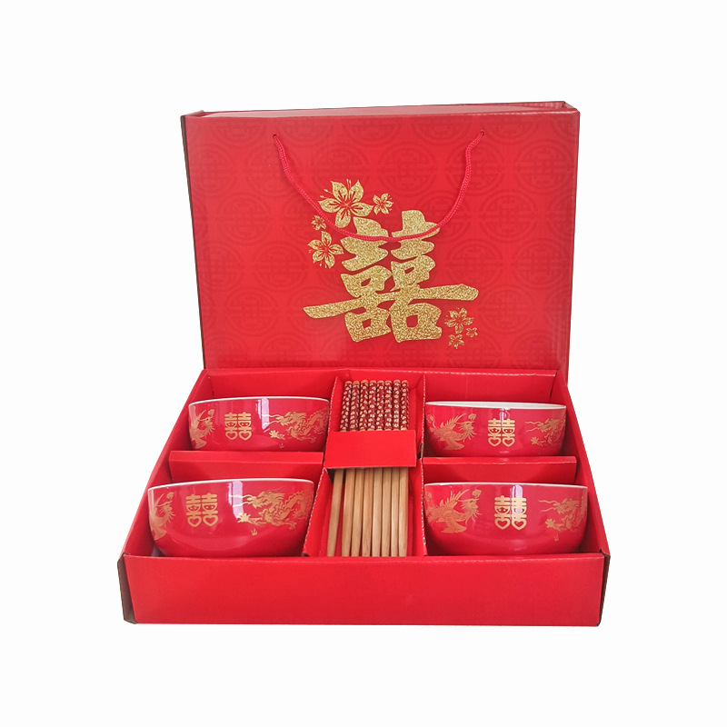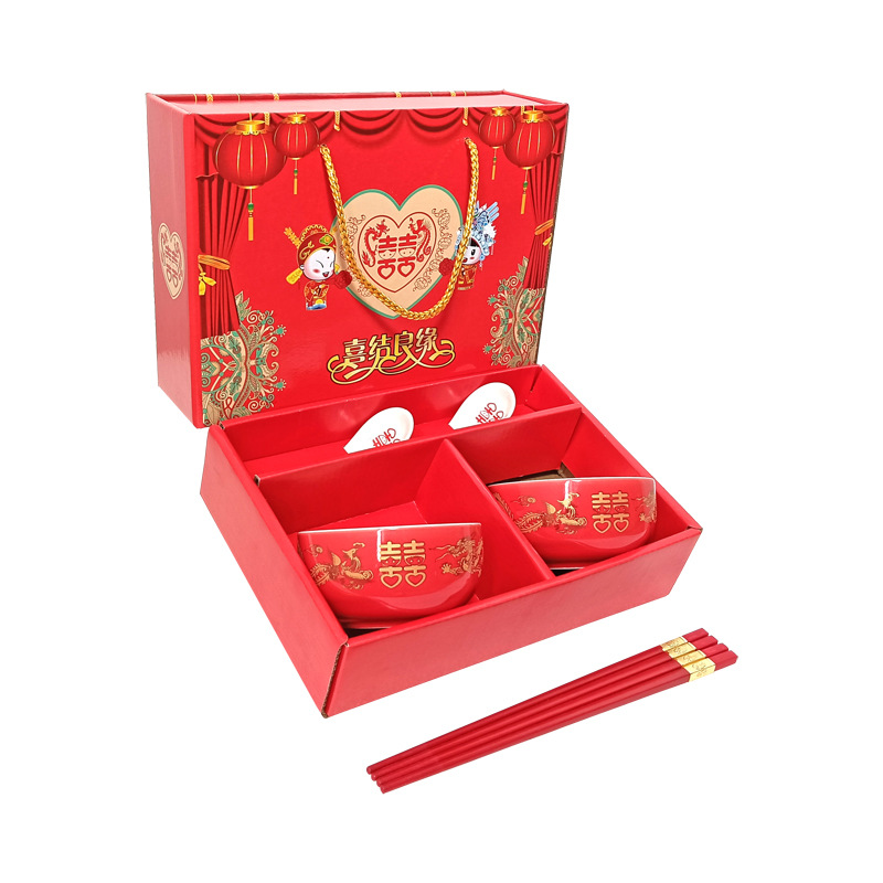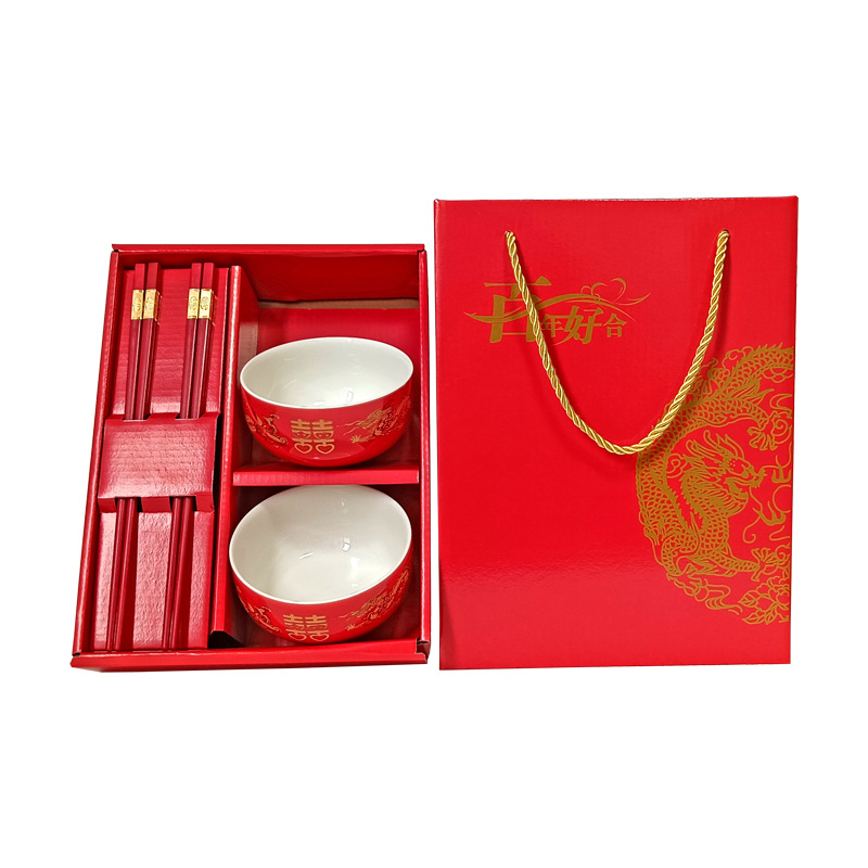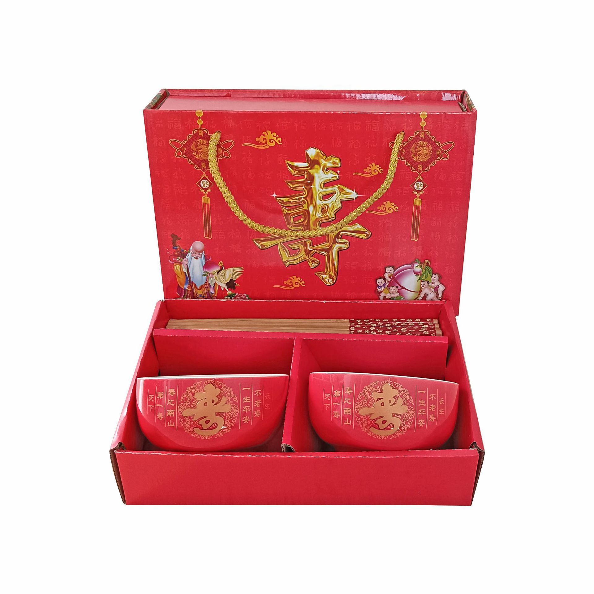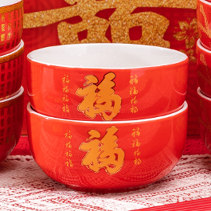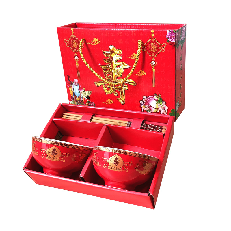 碗套装陶瓷红釉福碗寿碗喜碗红色礼盒回礼碗筷餐具伴手礼加印LOGO