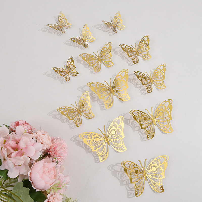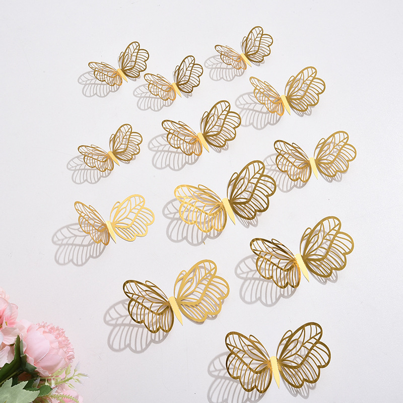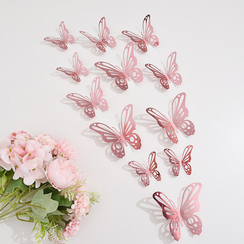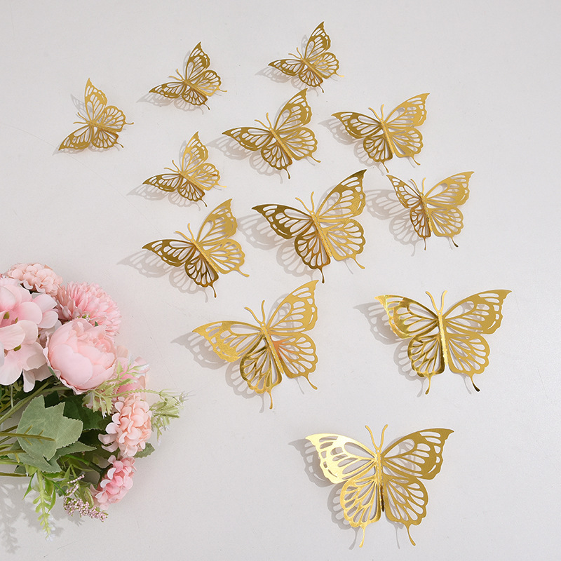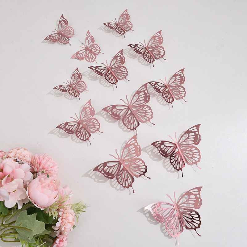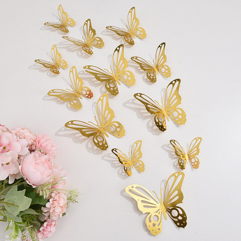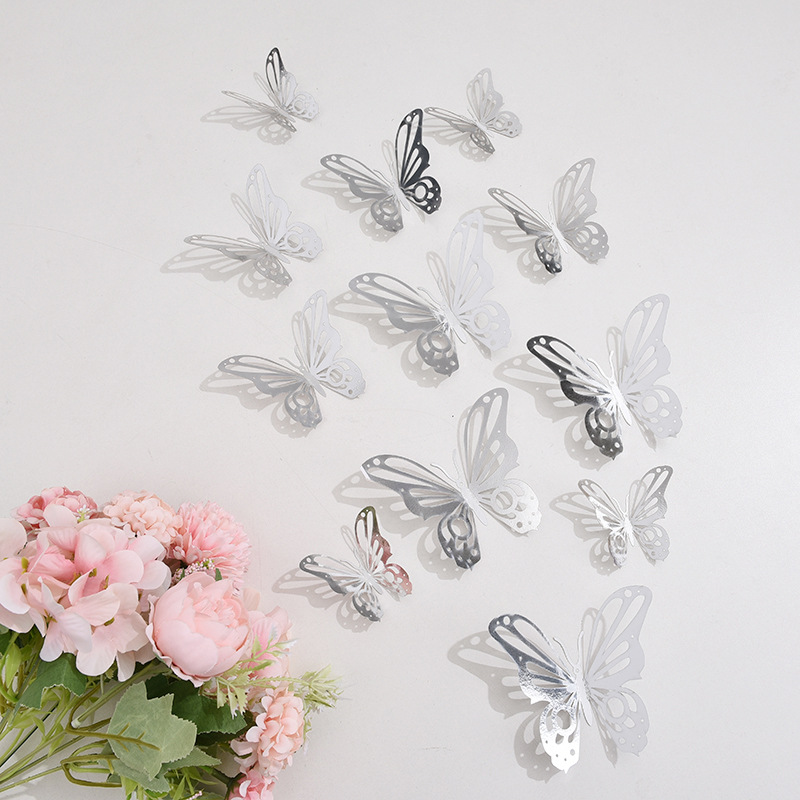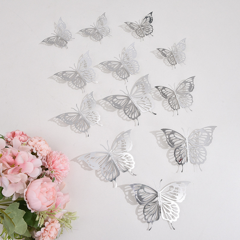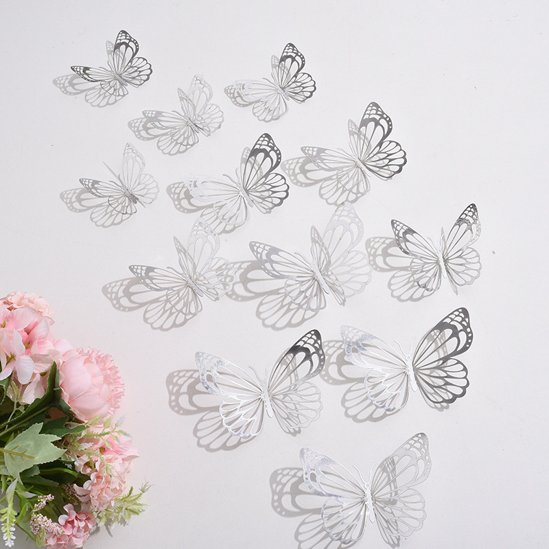 跨境12只镂空蝴蝶墙贴节庆家居圣诞节日布置装饰贴纸3D立体蝴蝶