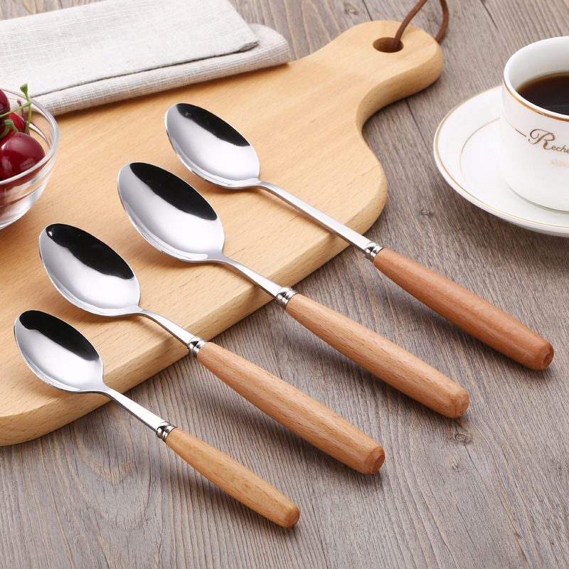 不锈钢木柄餐具牛排刀叉筷子勺子长柄冰勺水果叉奶油小刀甜品套装
