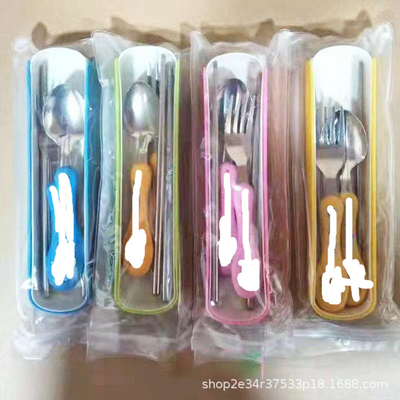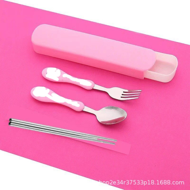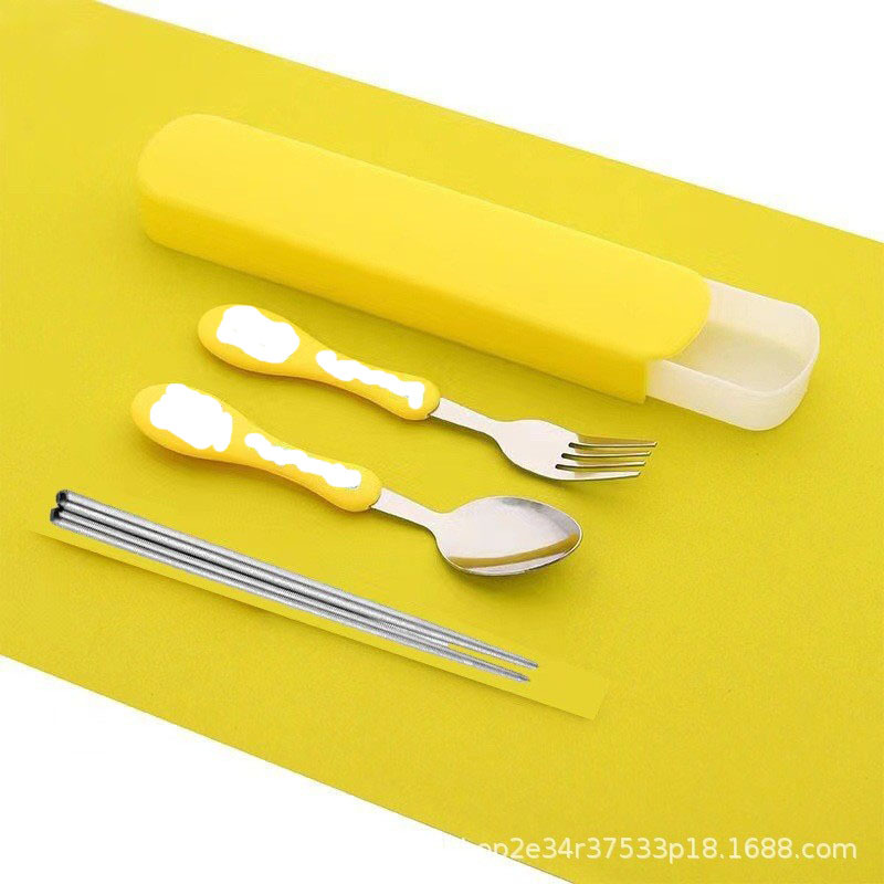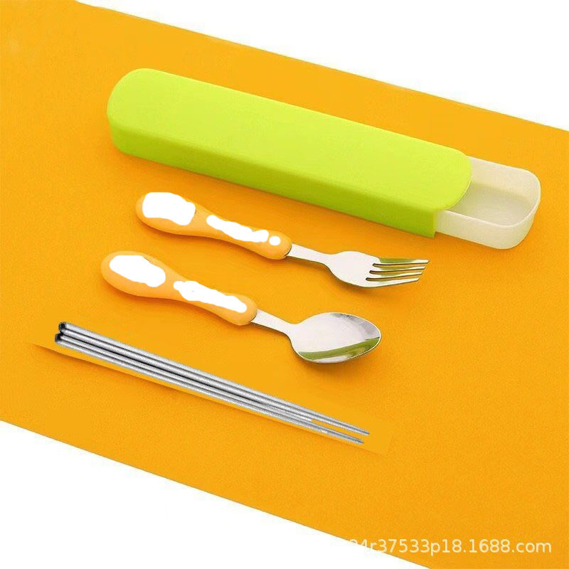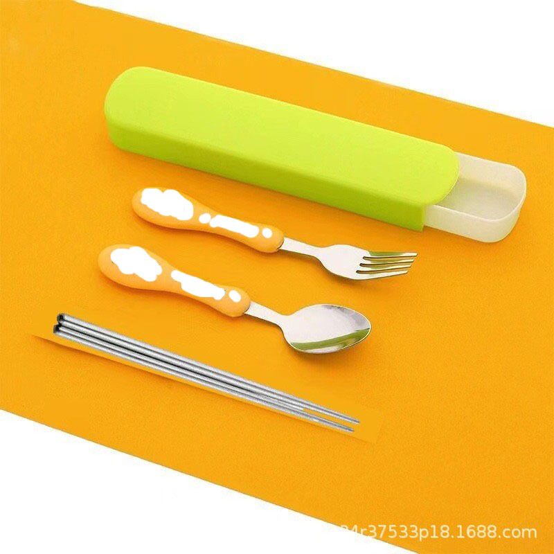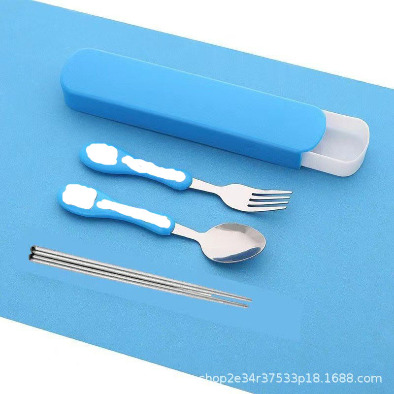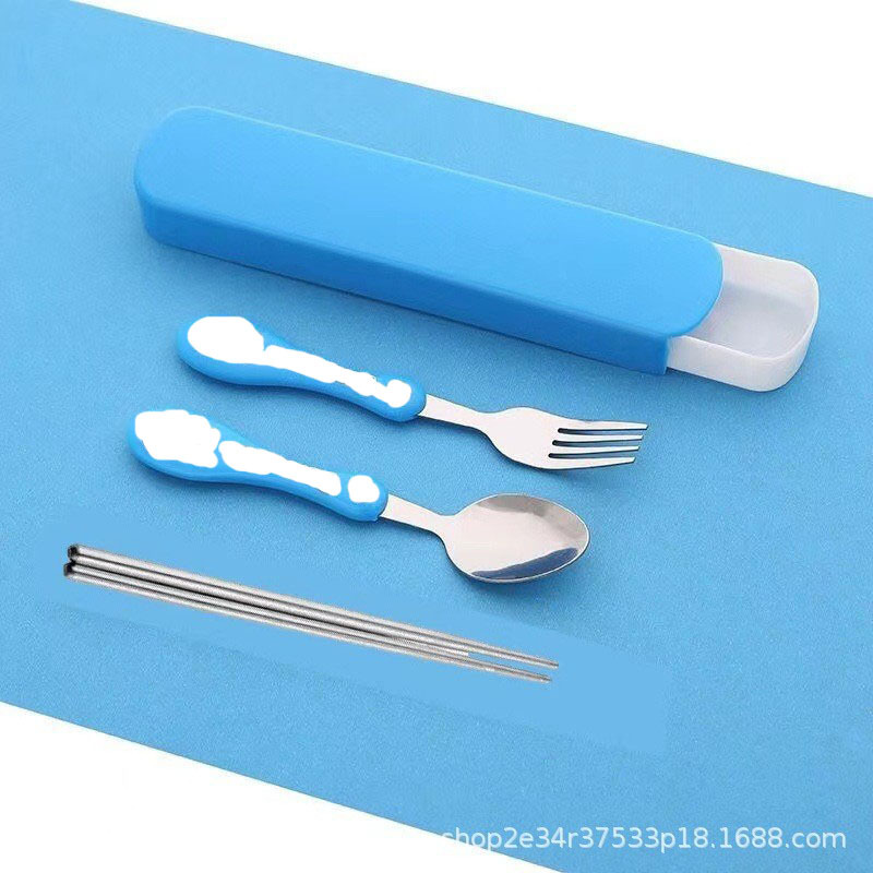 卡通儿童餐具叉勺筷子套装三件套幼儿园礼品礼物赠品不锈钢便携式