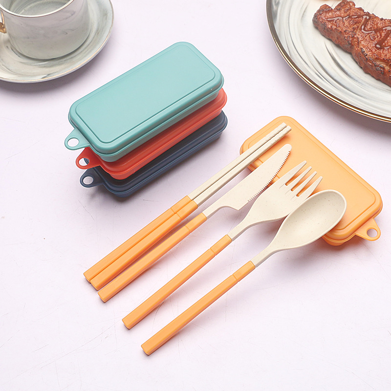 创意小麦秸秆折叠餐具套装 可拆卸叉勺筷子学生便携式餐具套装