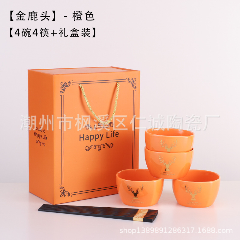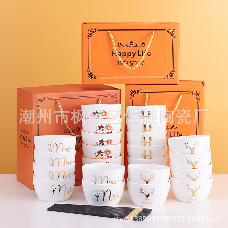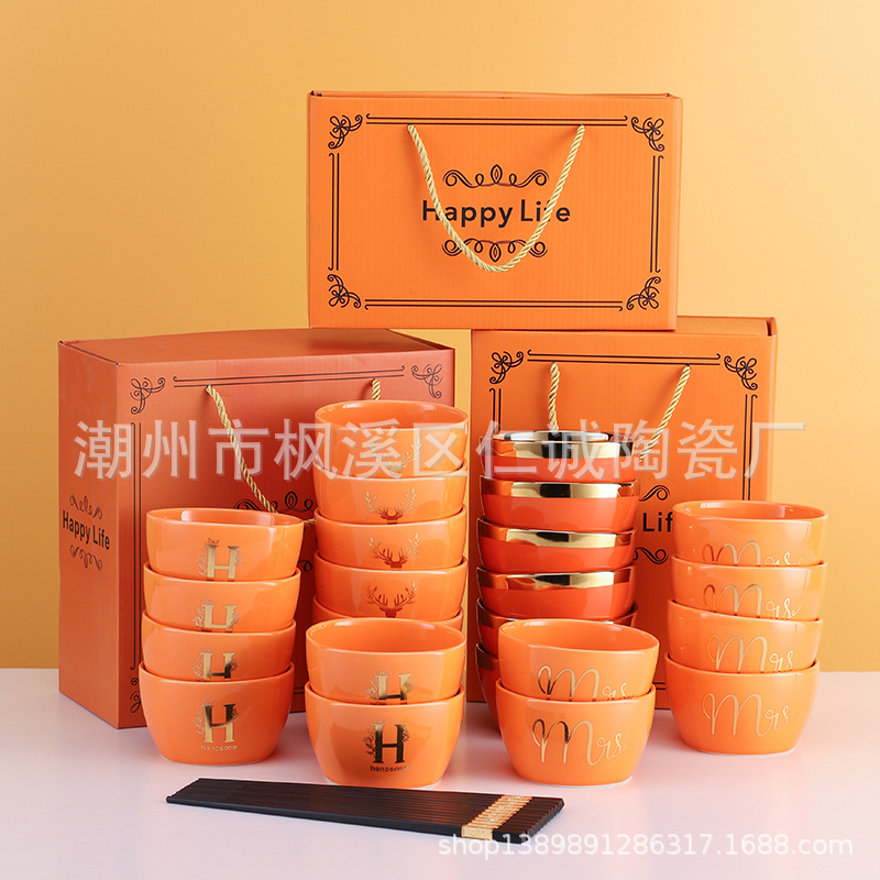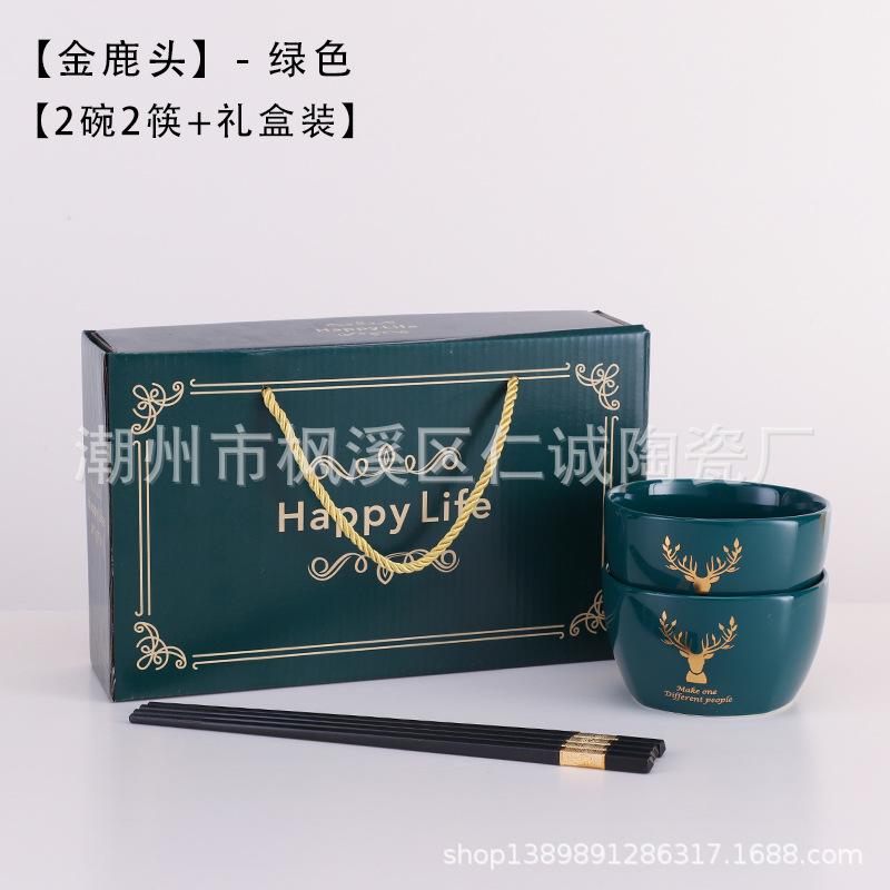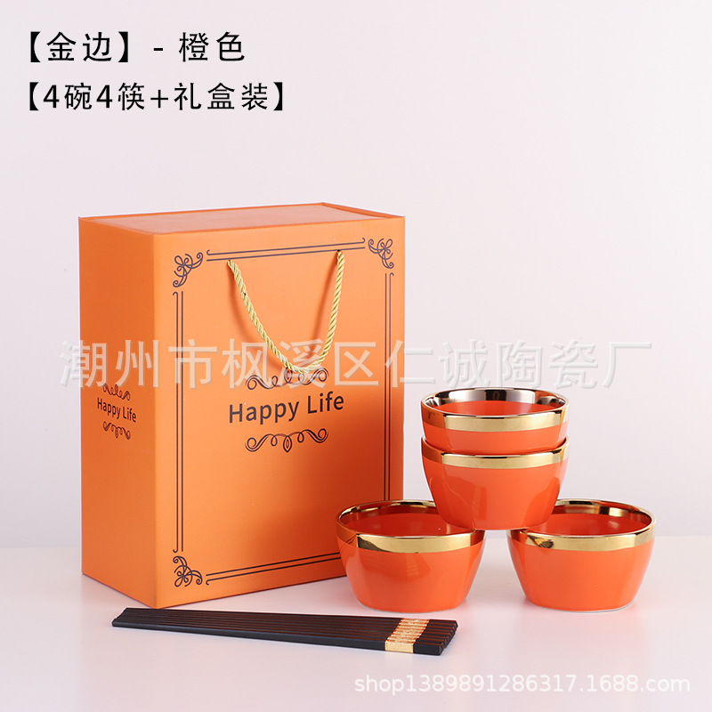 陶瓷碗套装色釉方碗筷套装金边碗套装绿釉婚庆回礼会销礼品碗logo
