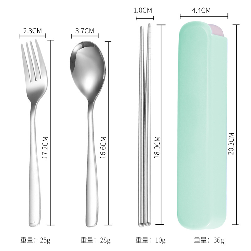 不锈钢韩式勺叉筷子三件套 便携餐具学生户外旅行抽拉式礼品套装