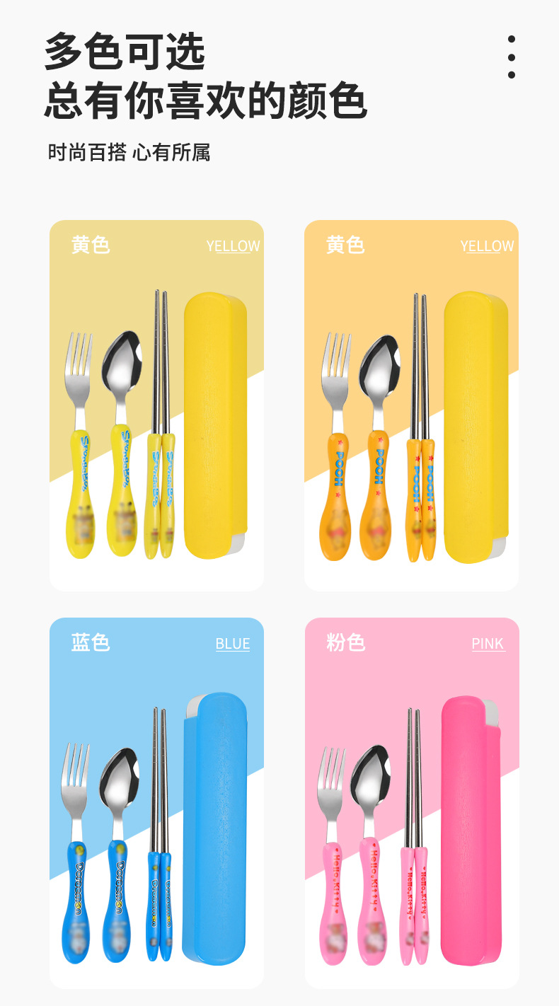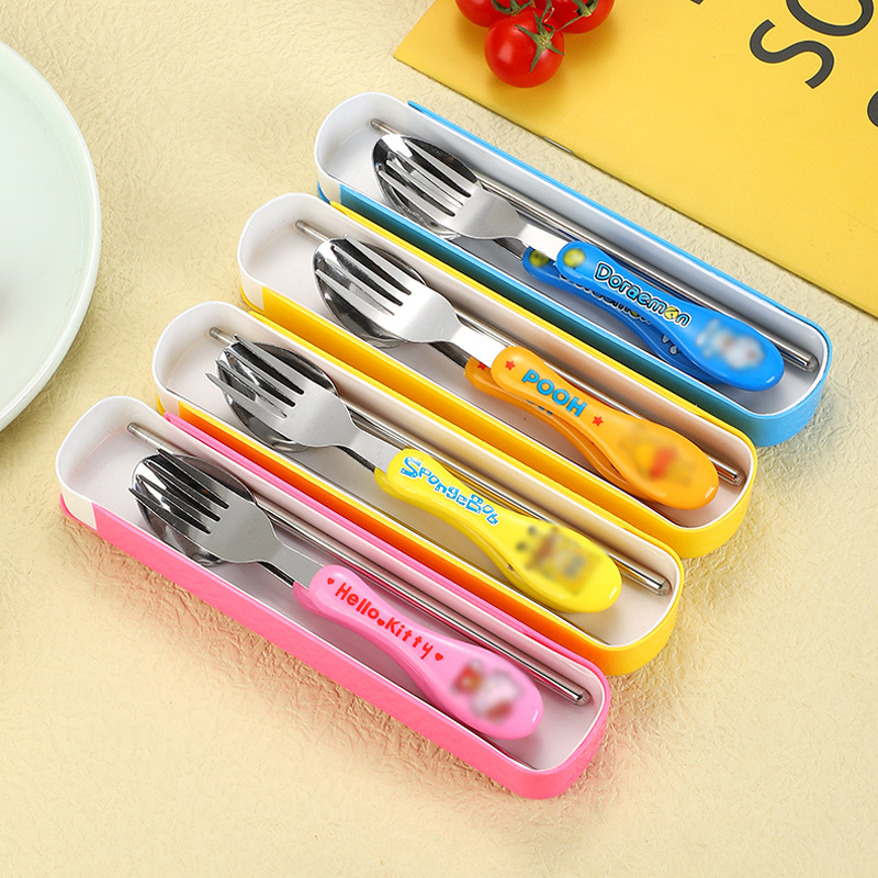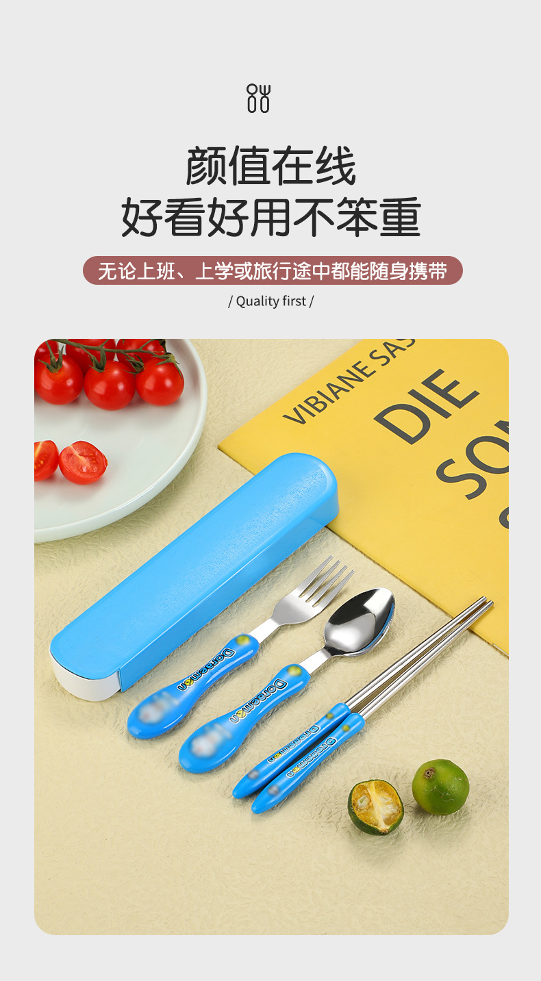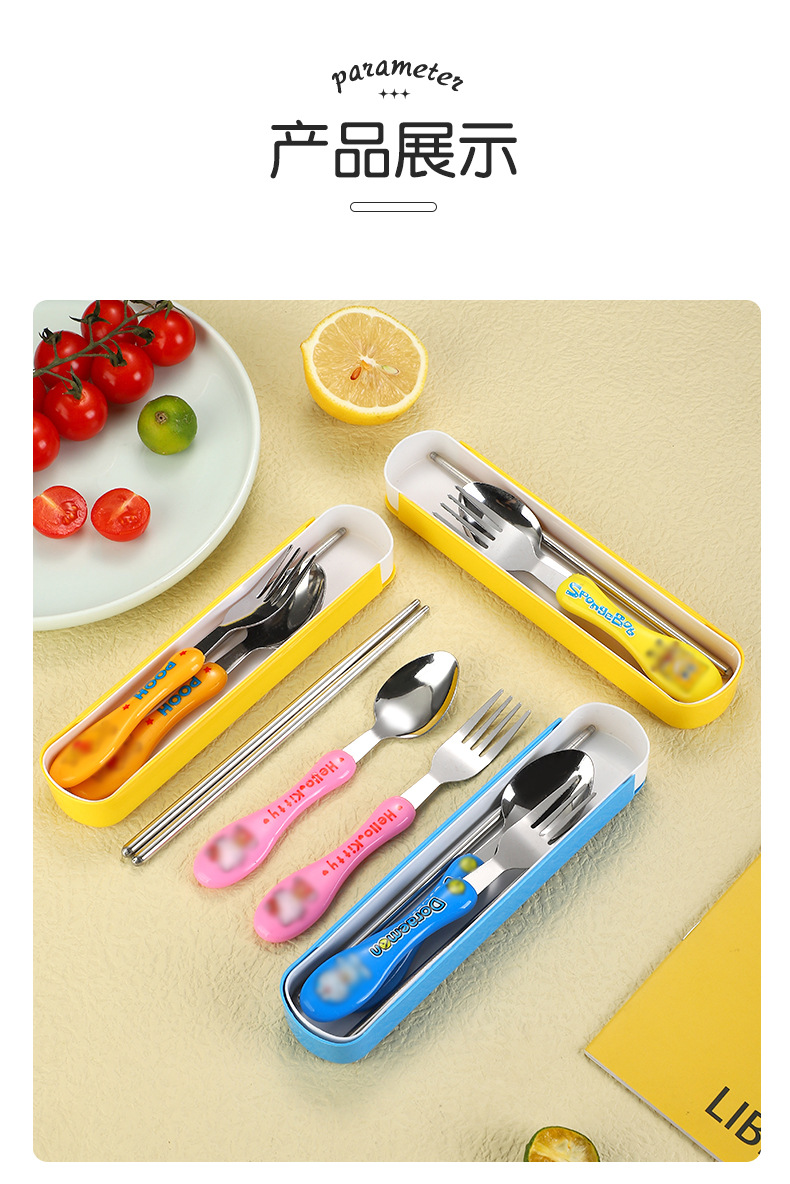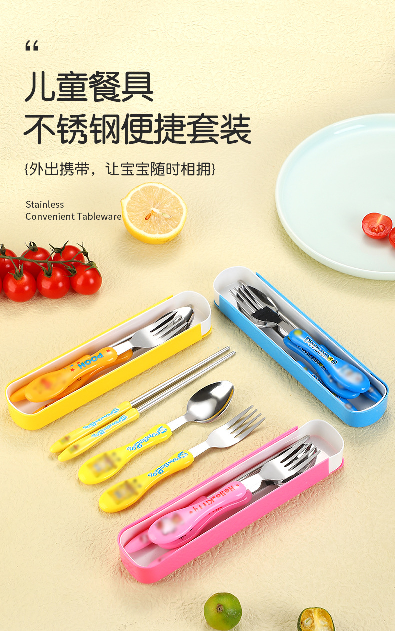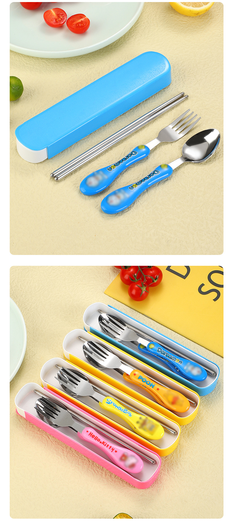 卡通儿童餐具不锈钢学生便携套装勺子筷子叉子三件套带收纳盒礼品