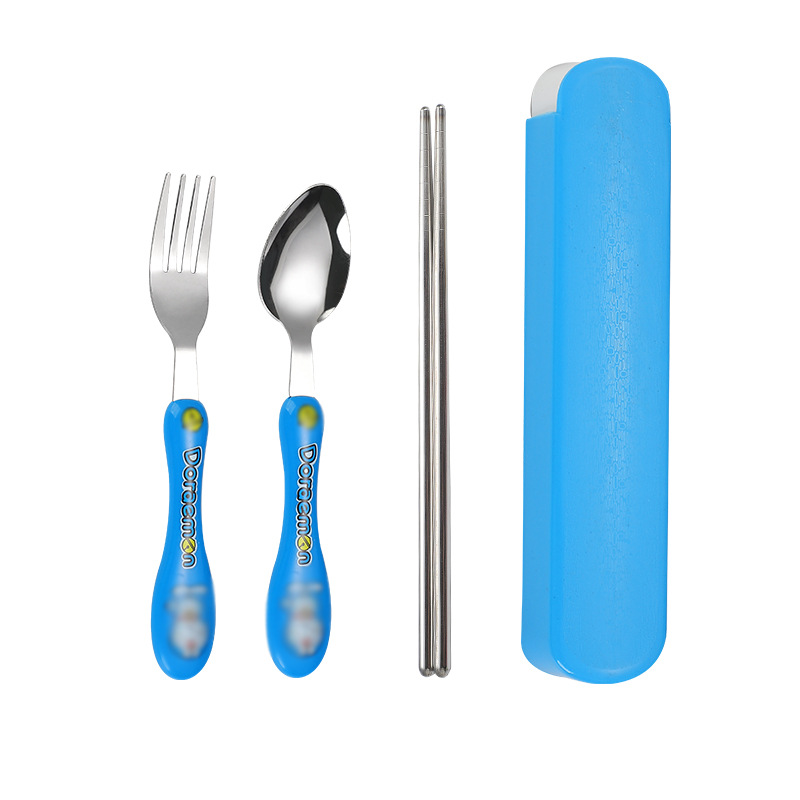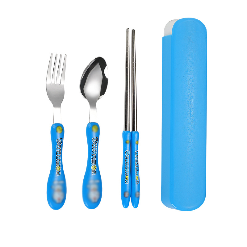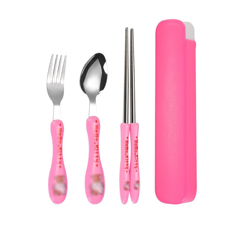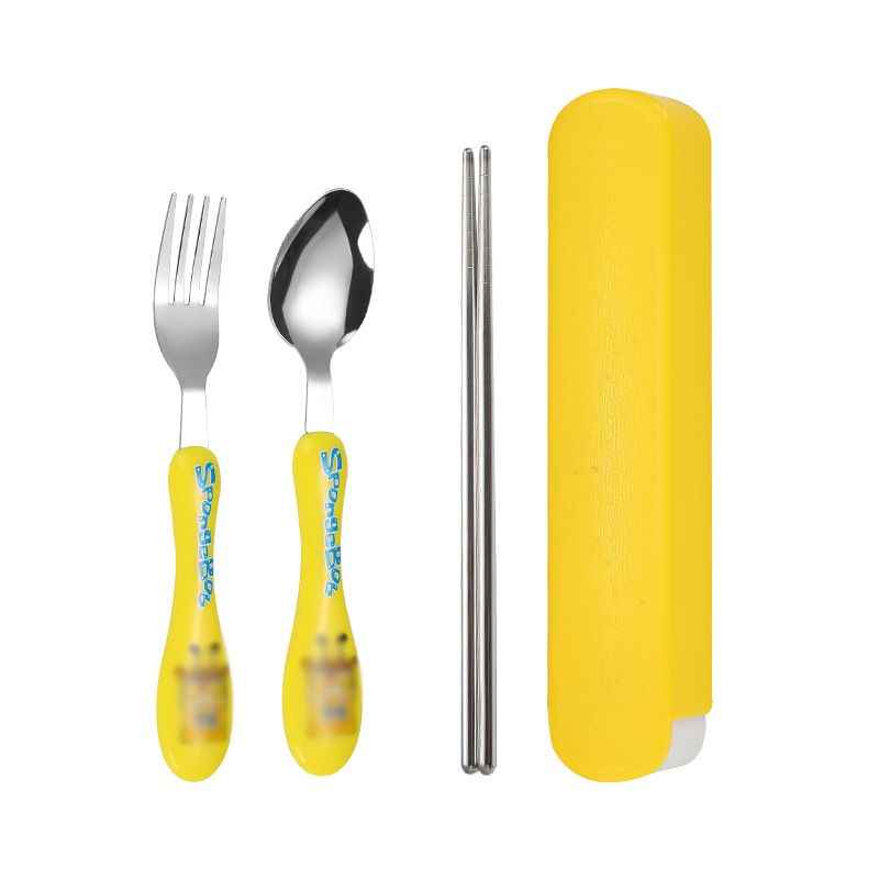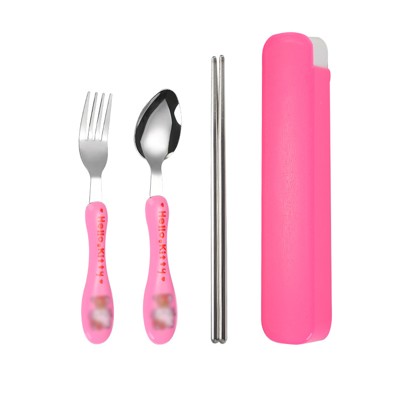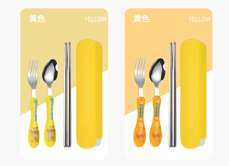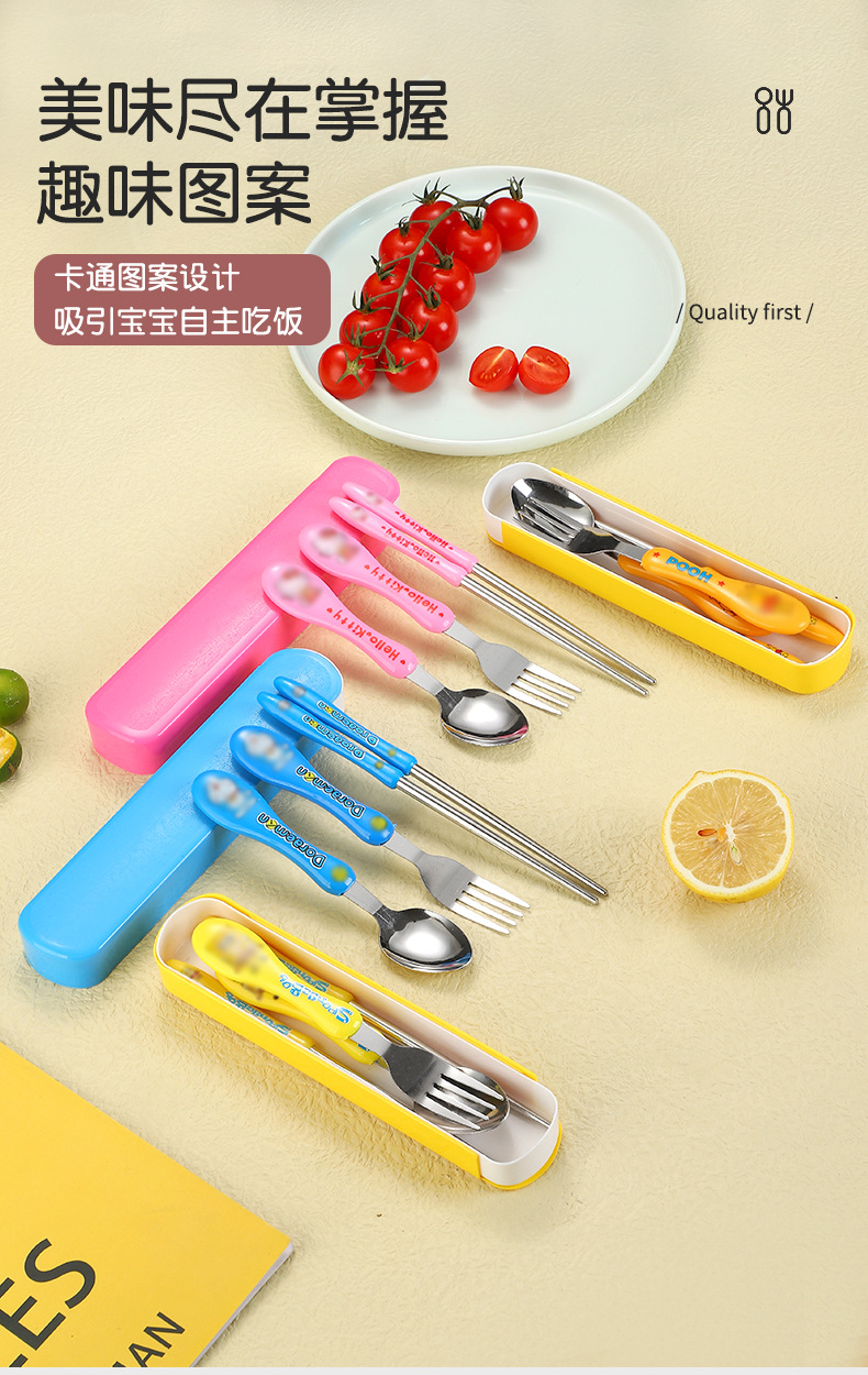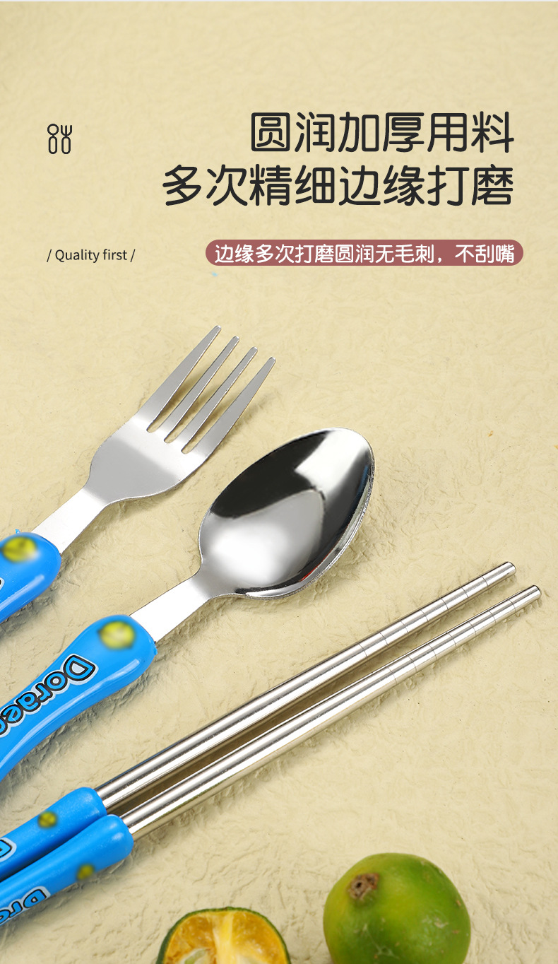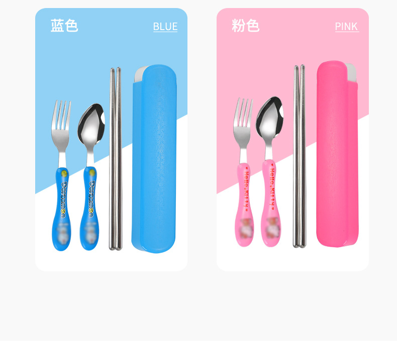 卡通儿童餐具不锈钢学生便携套装勺子筷子叉子三件套带收纳盒礼品