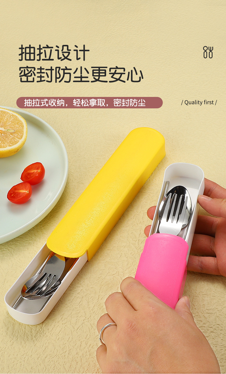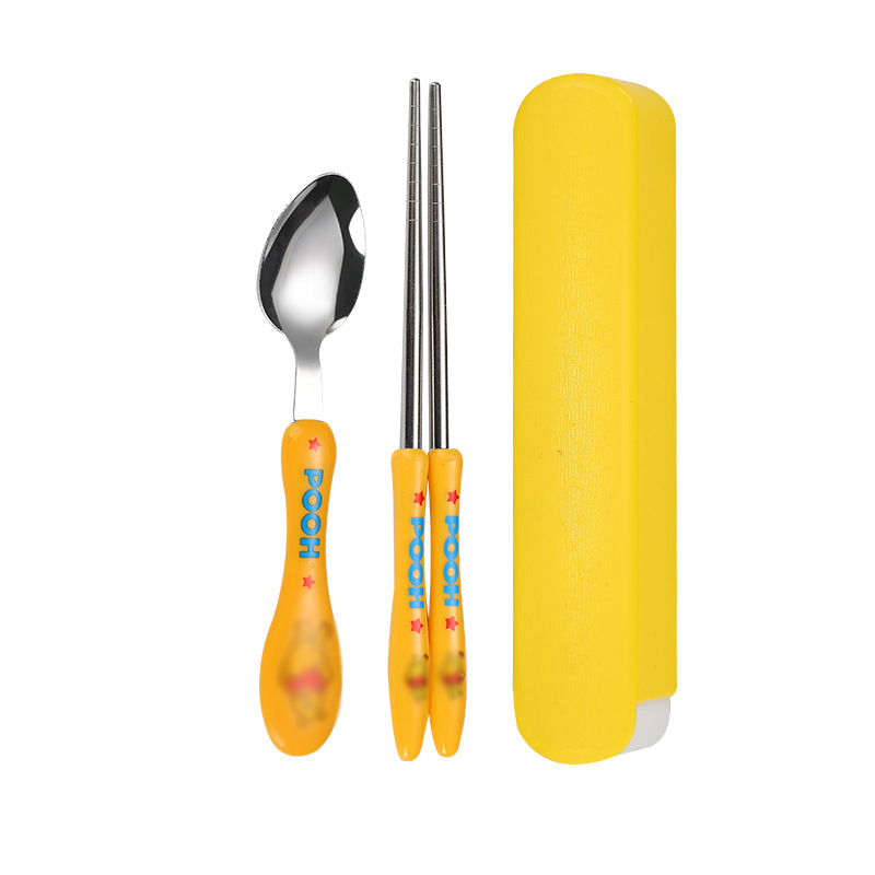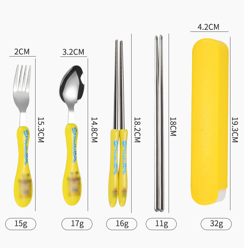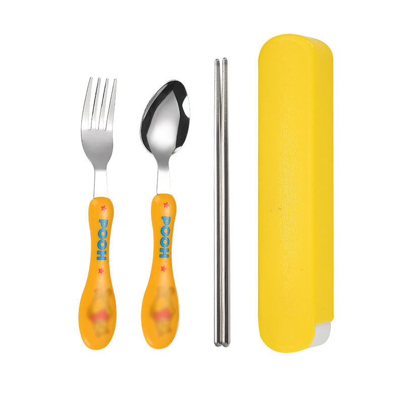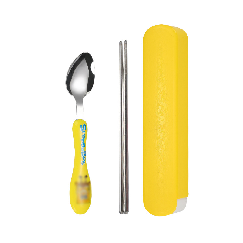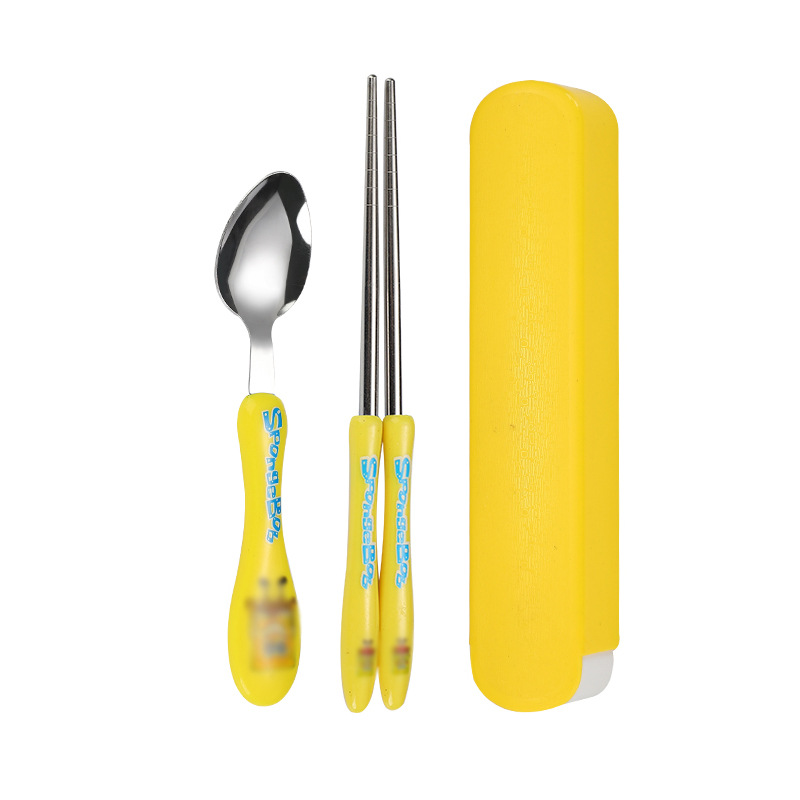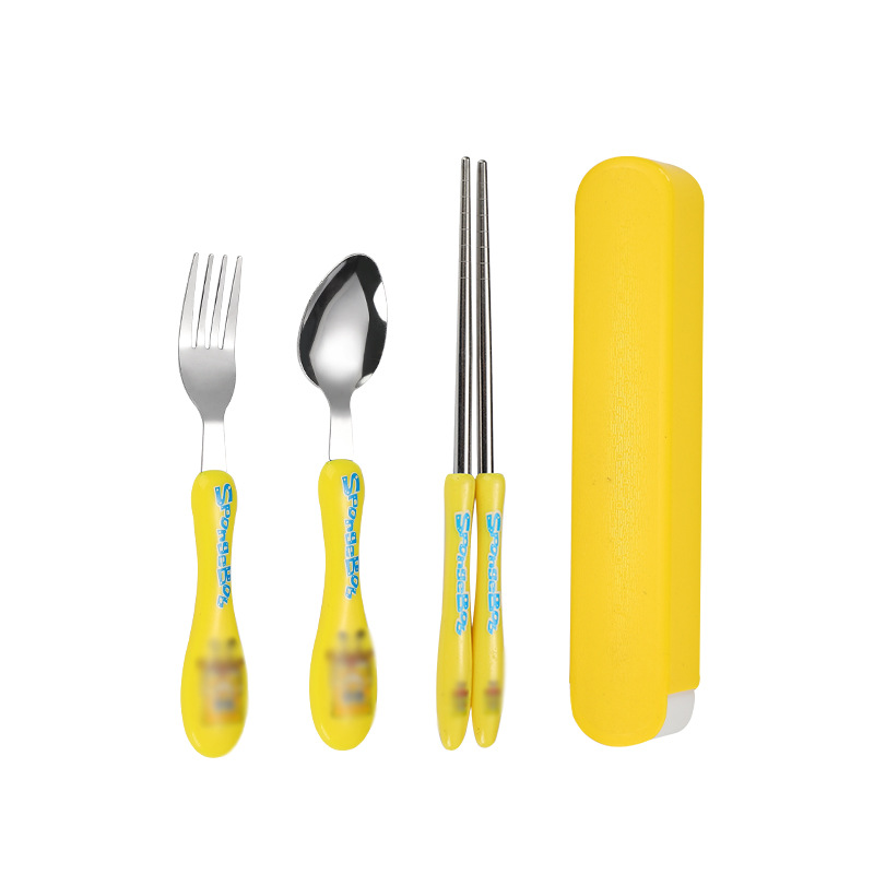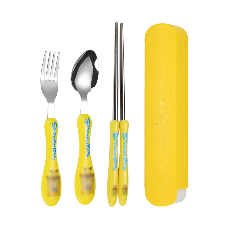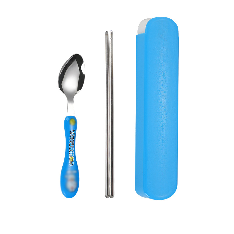 卡通儿童餐具不锈钢学生便携套装勺子筷子叉子三件套带收纳盒礼品