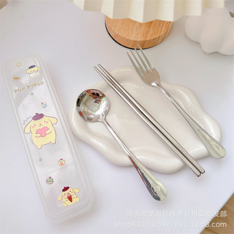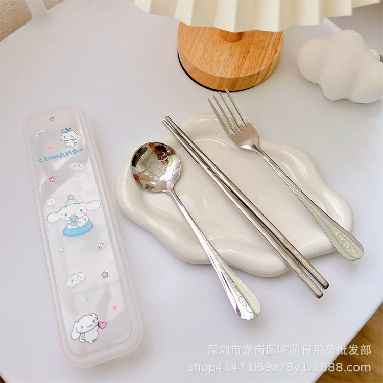 日系不锈钢餐具3件套 库洛米勺子叉子筷子套装 PC狗学生便携餐具