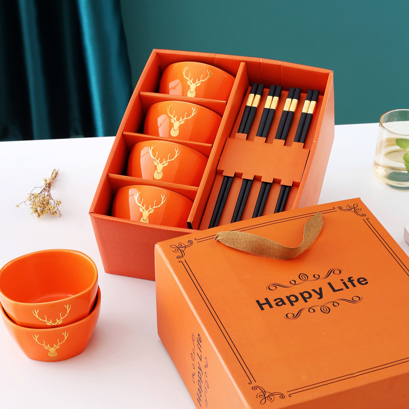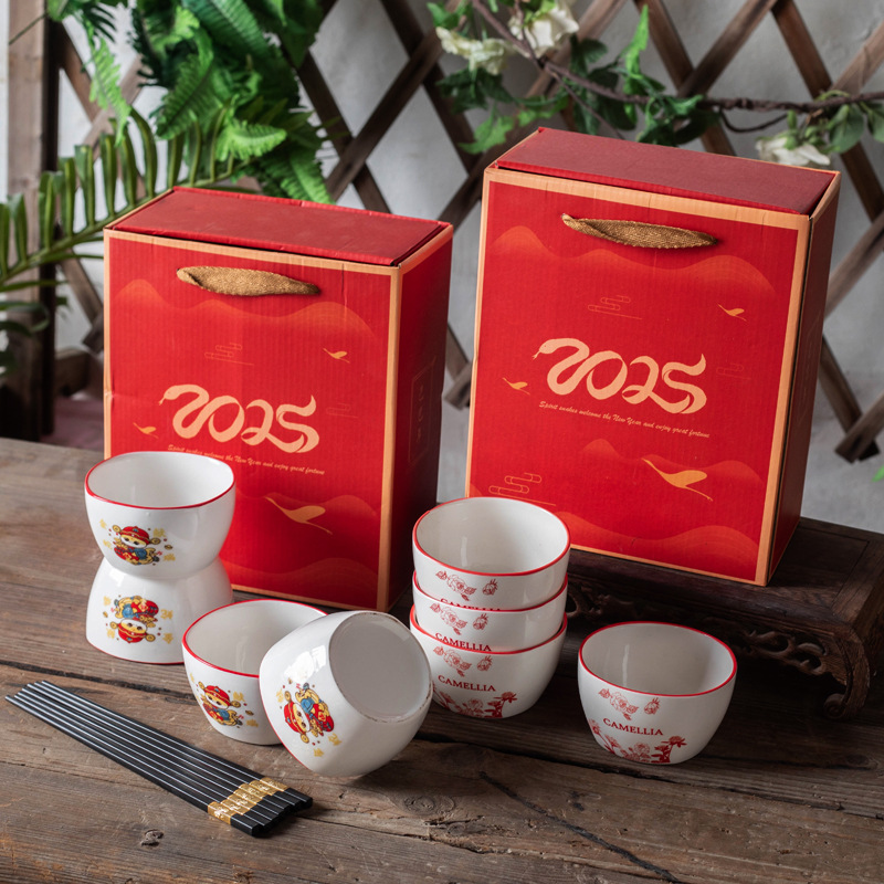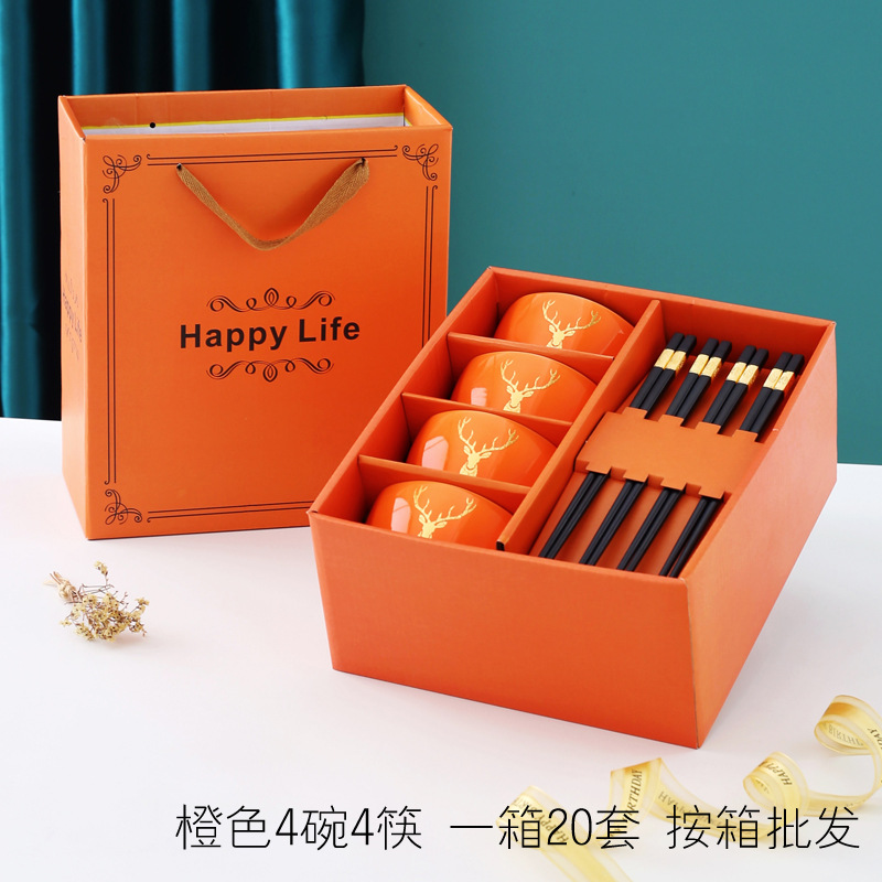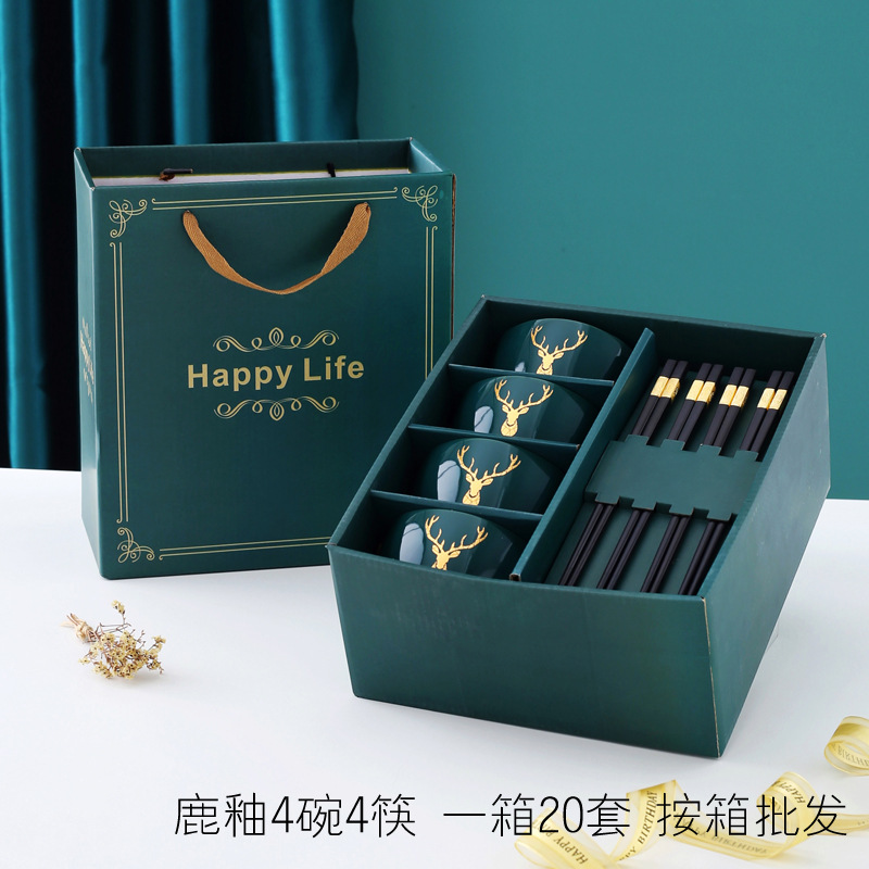 日式碗筷套装青花瓷碗套装陶瓷碗套装绿釉婚庆回礼会销礼品碗批发