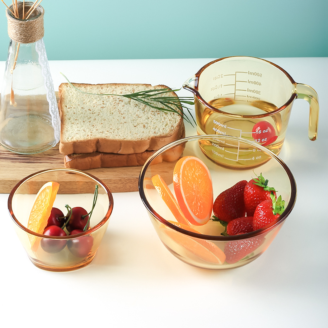 玻璃碗碟汤碗煲家用轻奢餐具双耳碗高硼硅琥珀色玻璃餐具套装批发