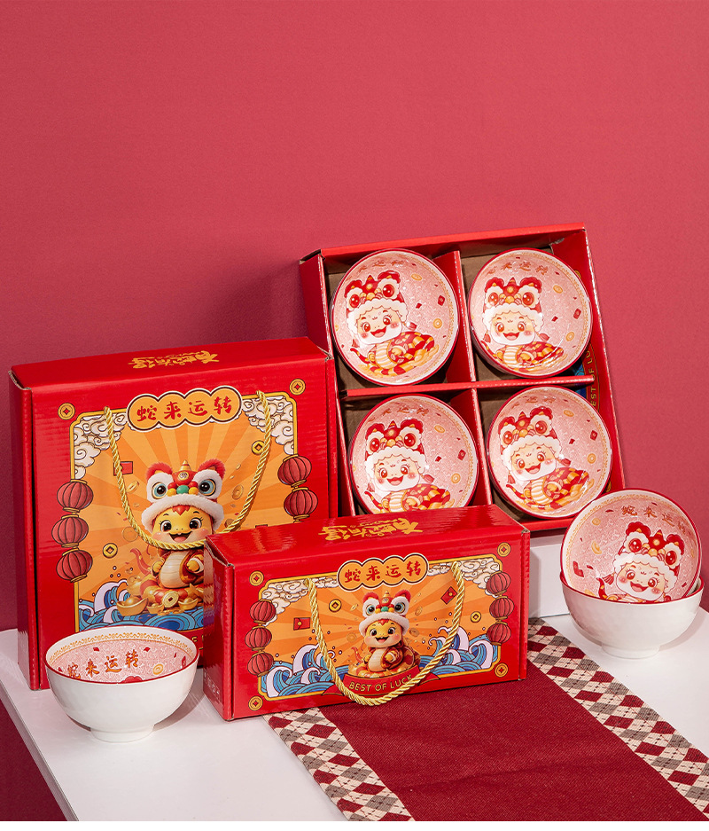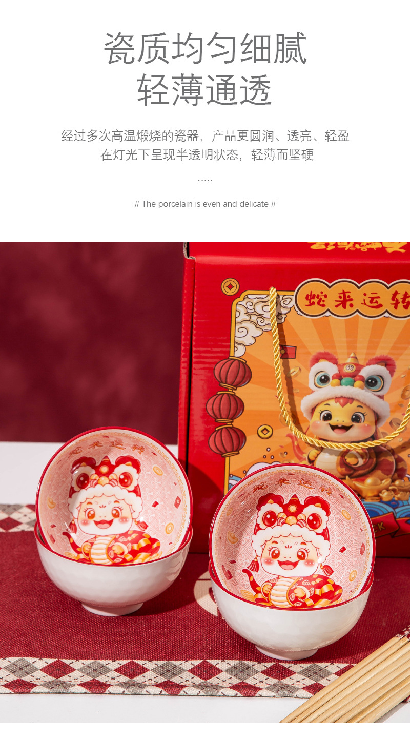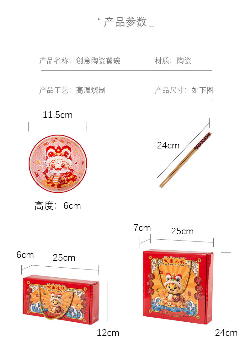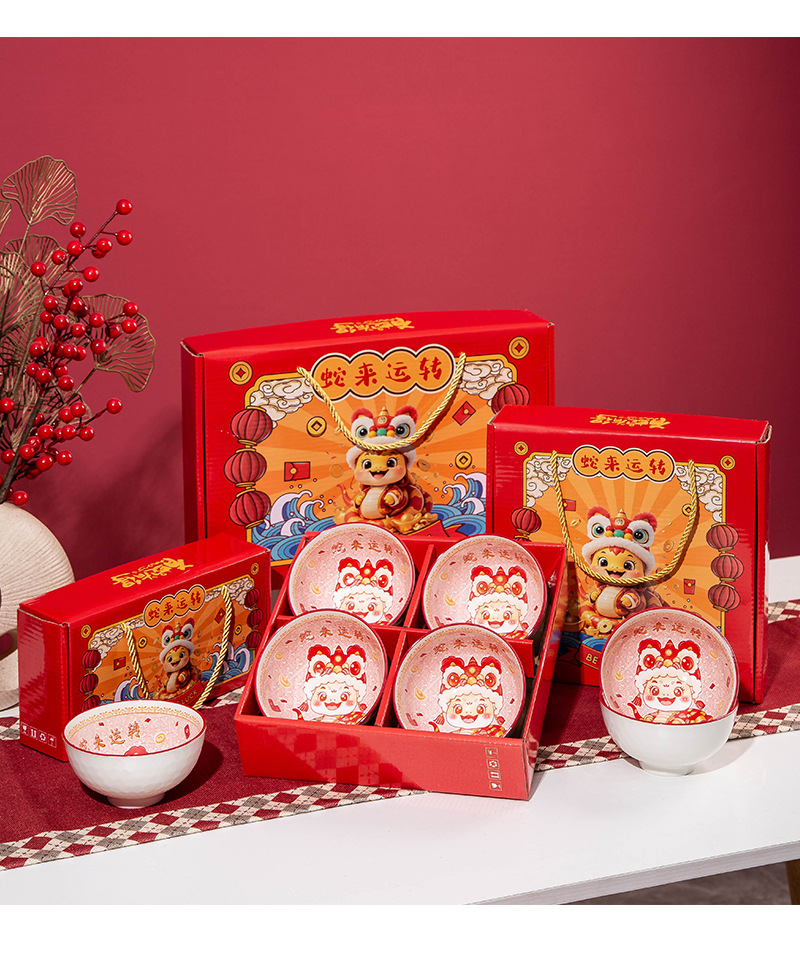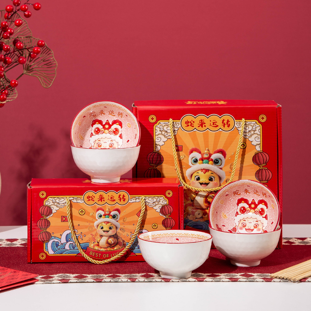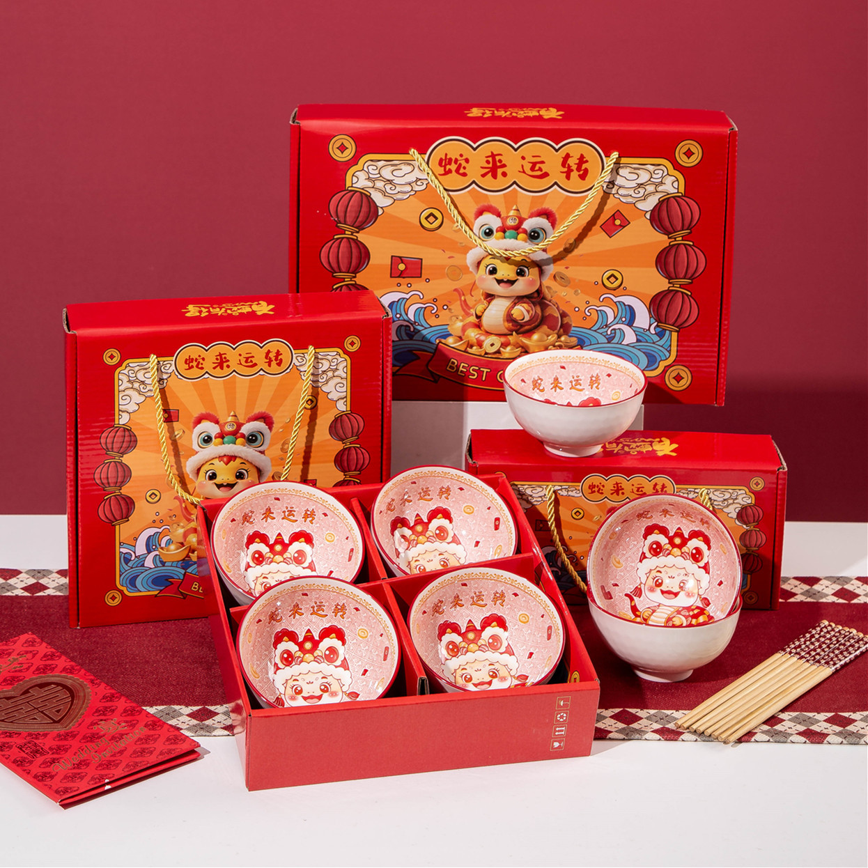 蛇年新年碗套装陶瓷碗筷套装创意开业礼品餐具碗礼盒装国潮伴手礼