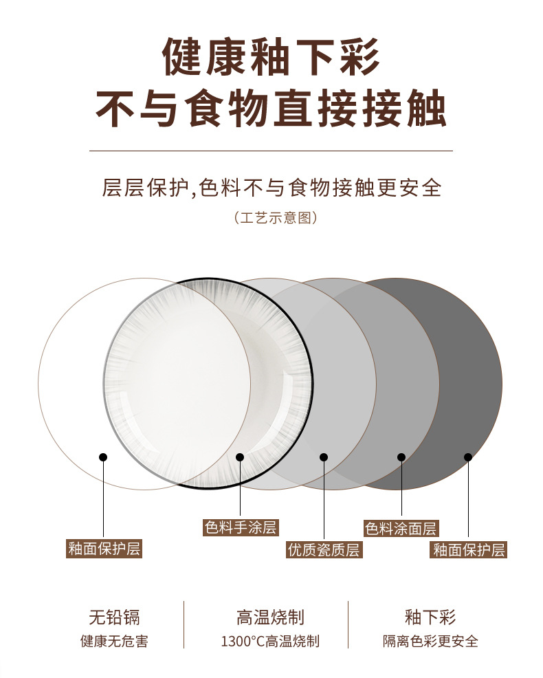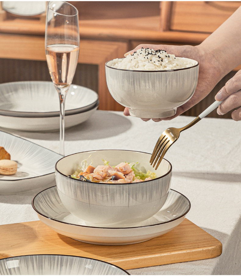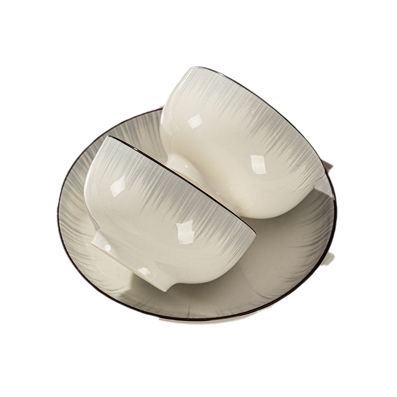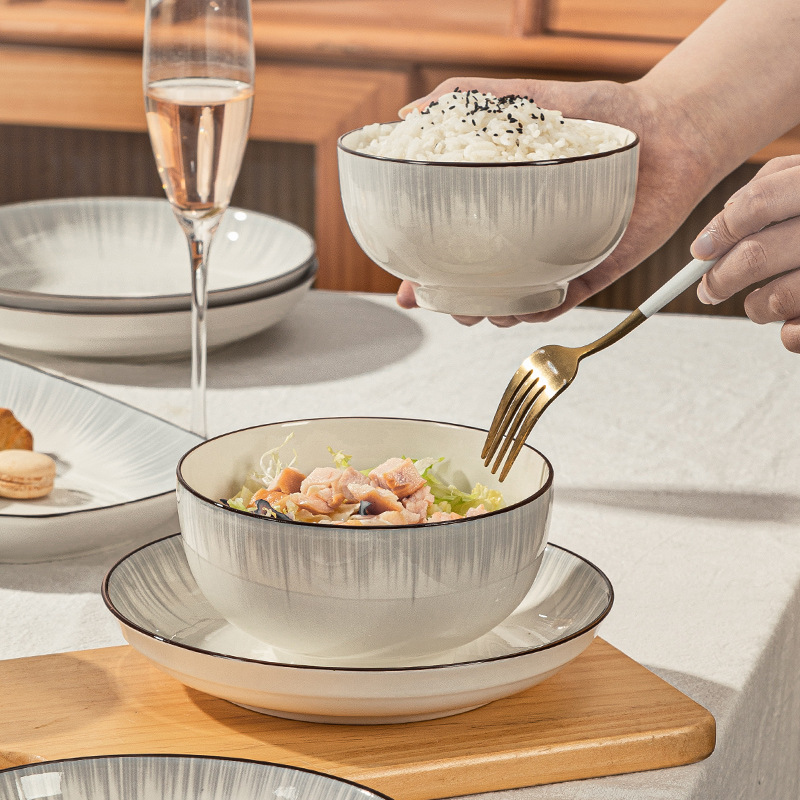 釉下彩轻奢灰陶瓷碗碟套装家用简约2024新款餐具乔迁碗盘子碗具筷