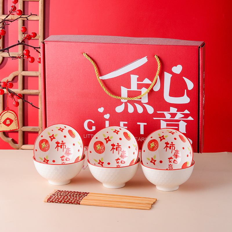 陶瓷餐具碗碟一点心意红福碗礼品盒开业活动结婚会展伴手礼小品