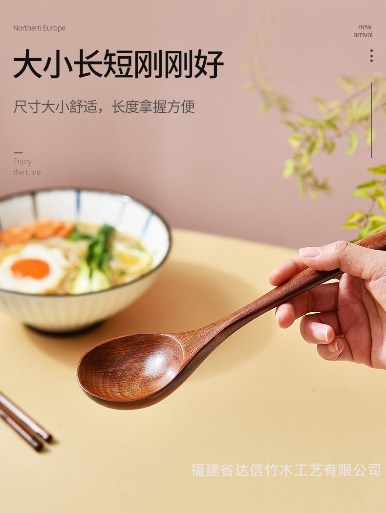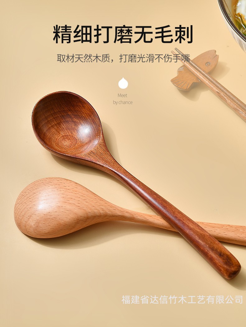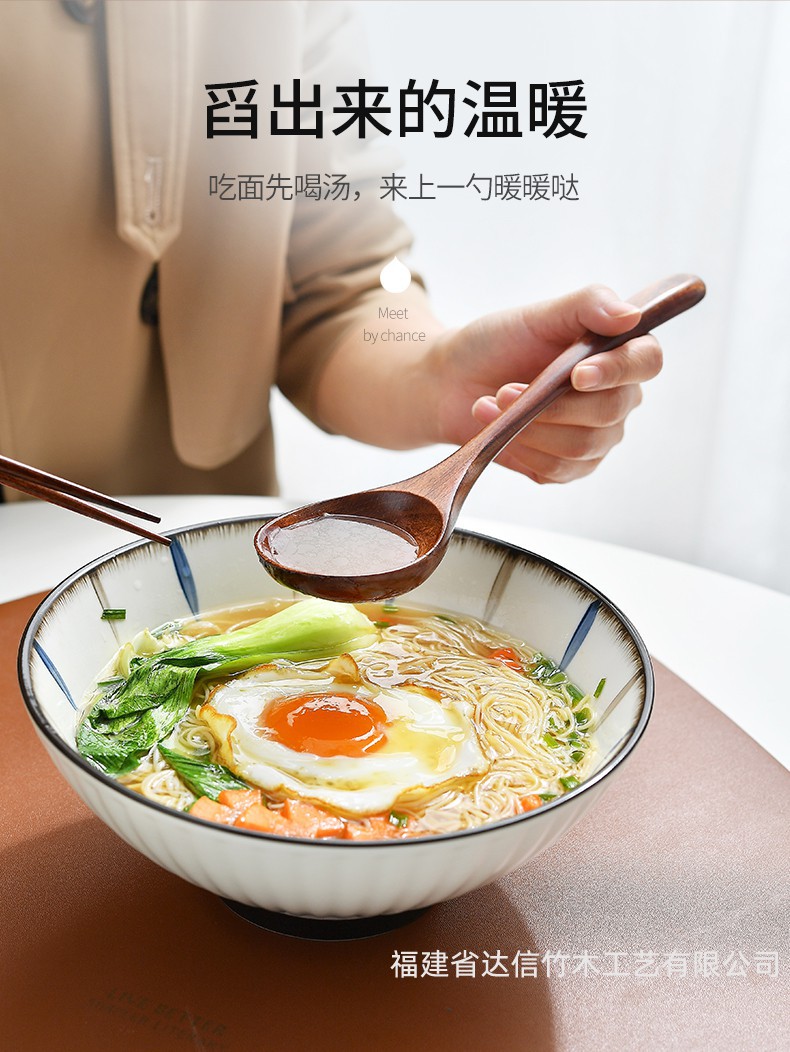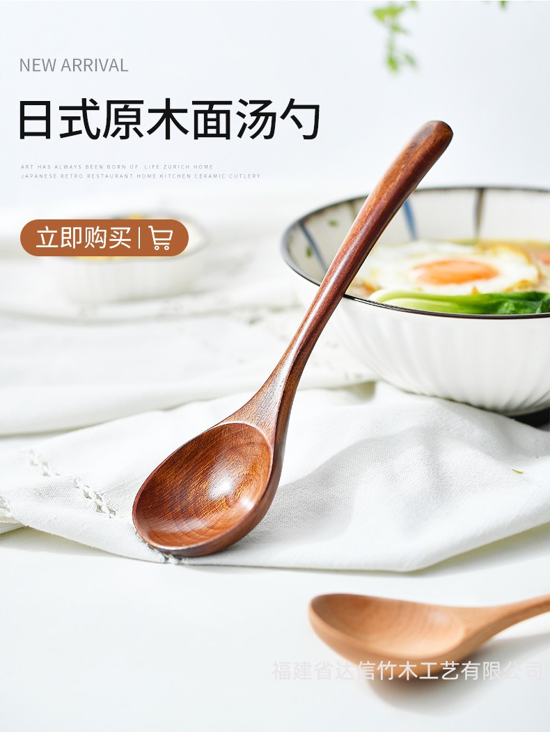 日式木勺子长柄木汤勺吃饭用喝汤拉面木勺长把高颜值木质干饭勺子