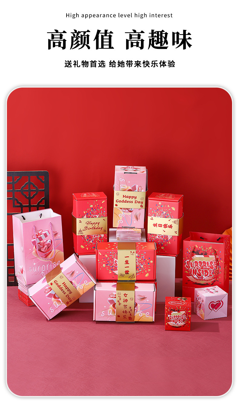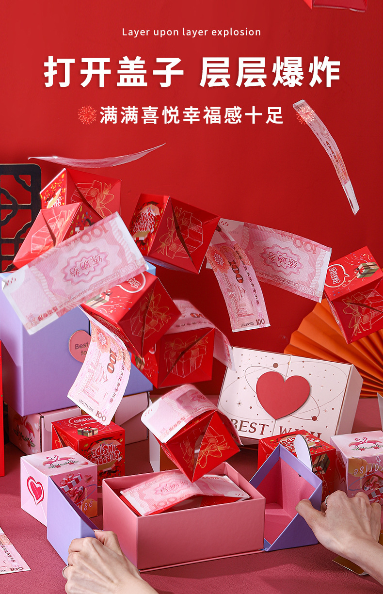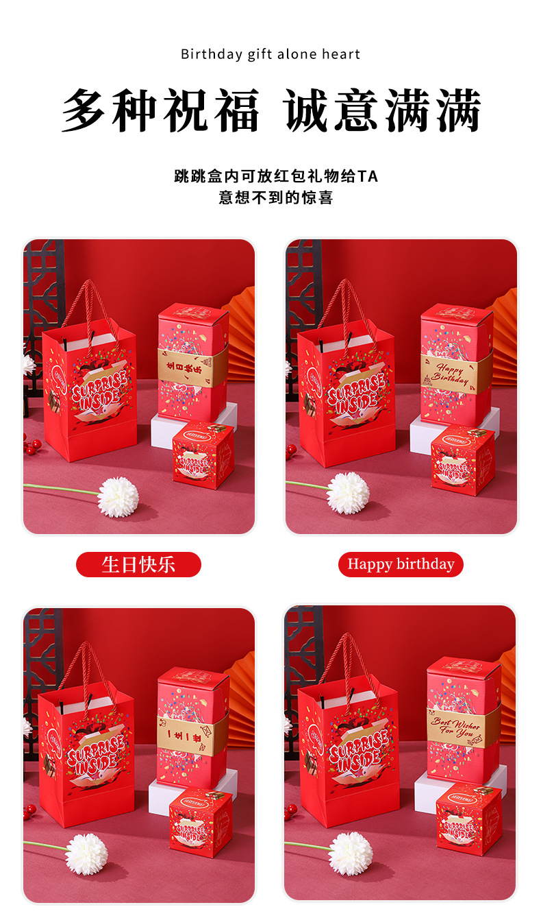 抖音同款生日红包惊喜弹跳盒子 满天飞折叠爆炸弹射红包创意礼盒