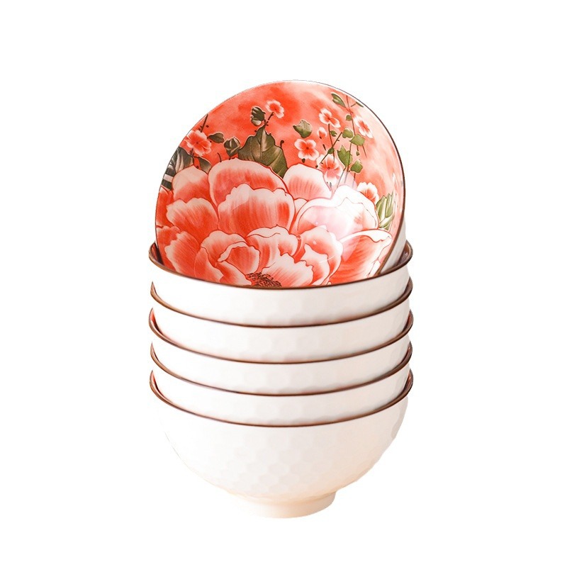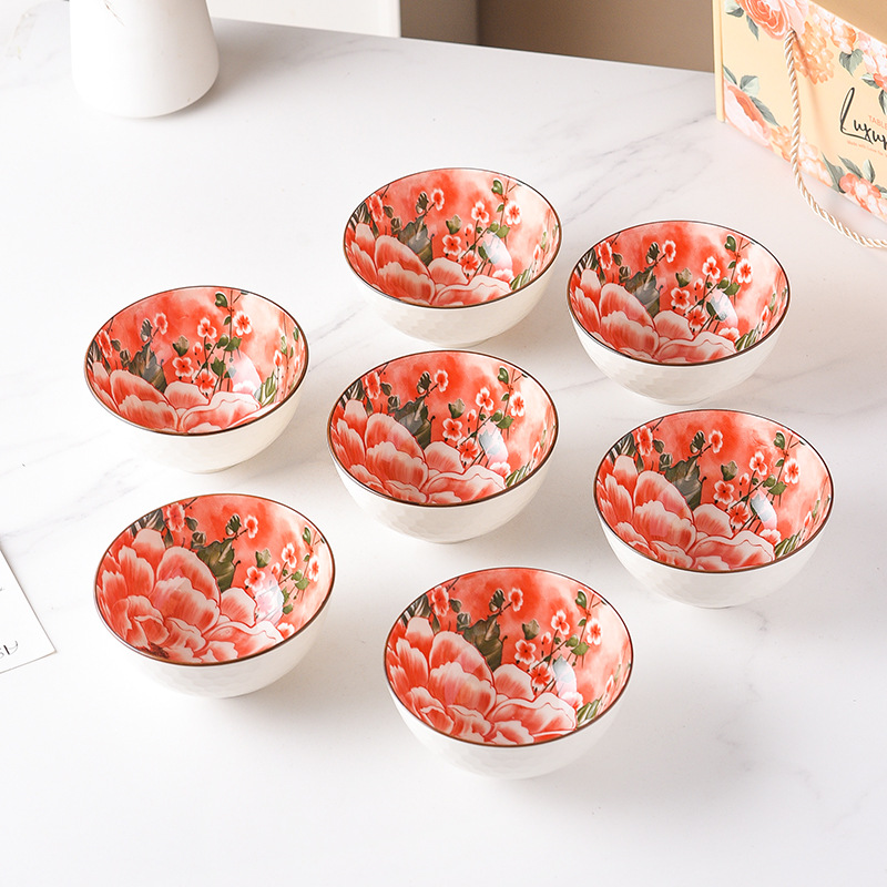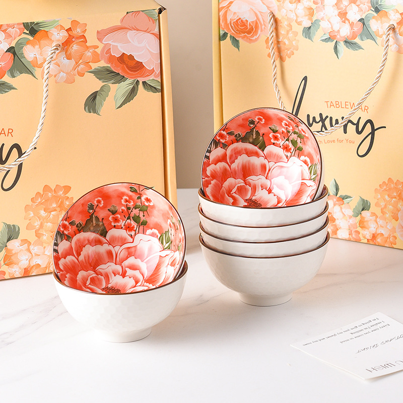 牡丹小碗陶瓷礼品碗卡通碗筷组合餐具礼盒套装宠粉活动伴手小礼品