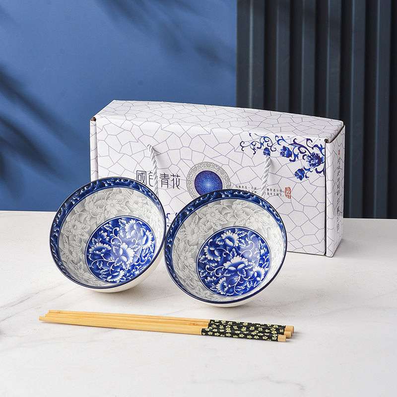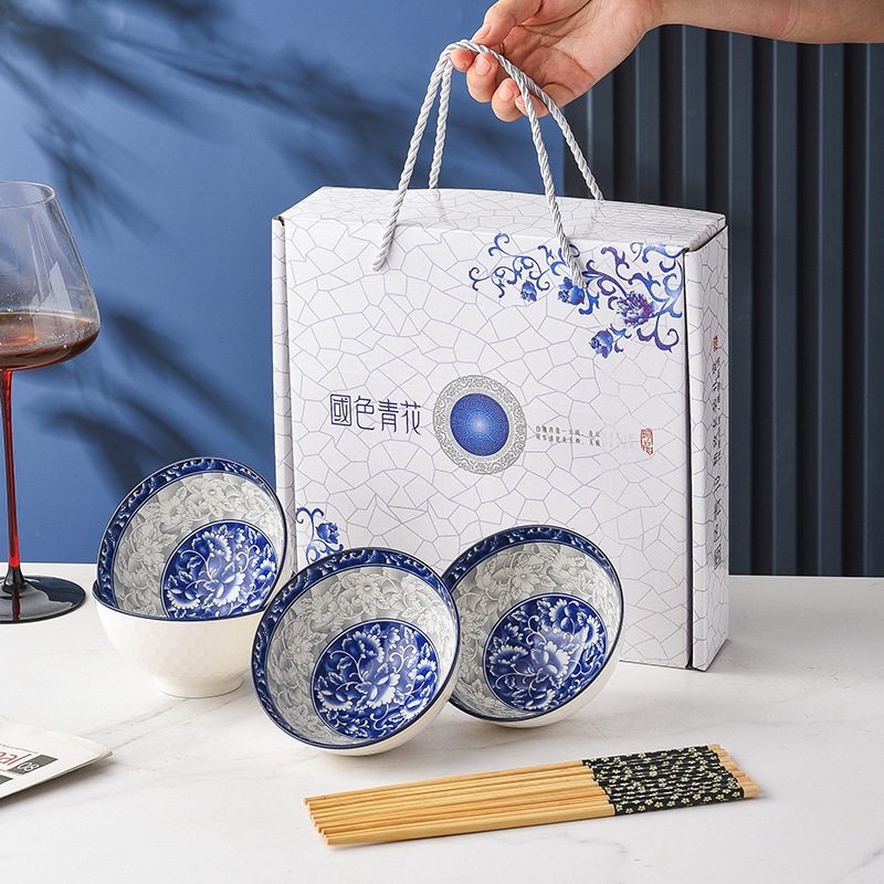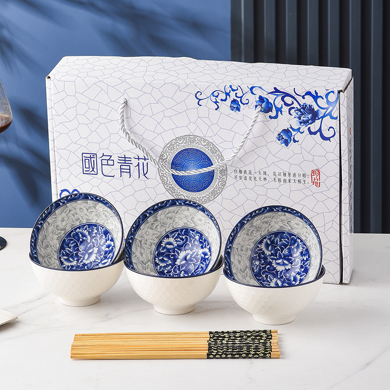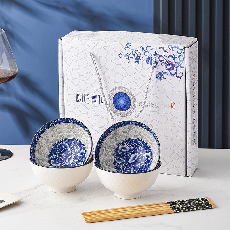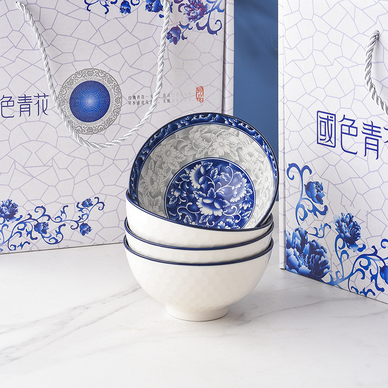 国色青花瓷套装碗陶瓷碗中式饭碗复古礼品碗筷餐具礼盒套装伴手礼