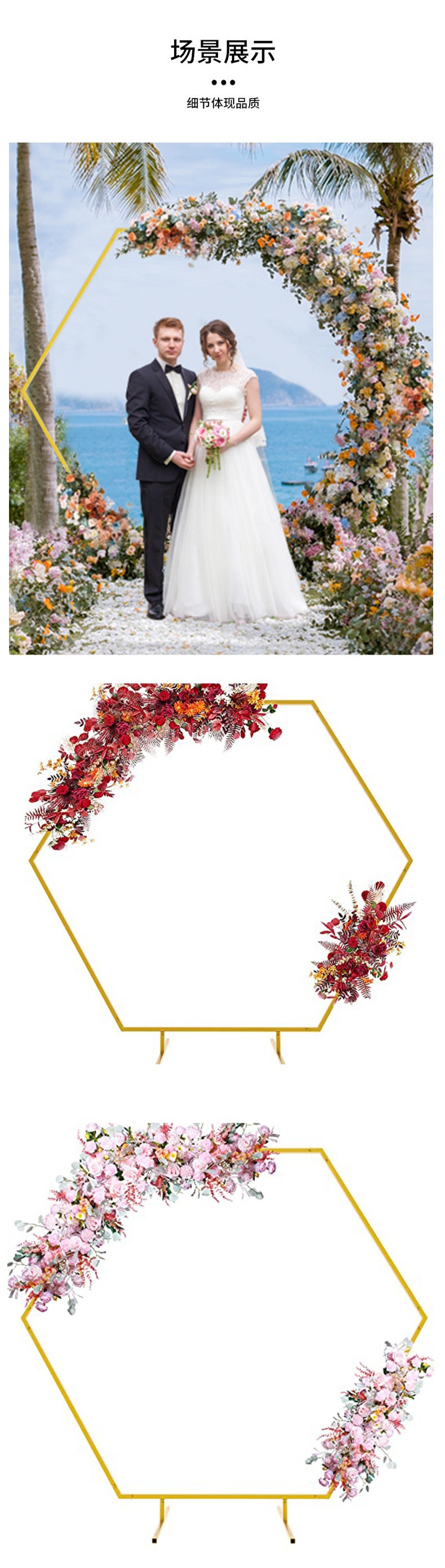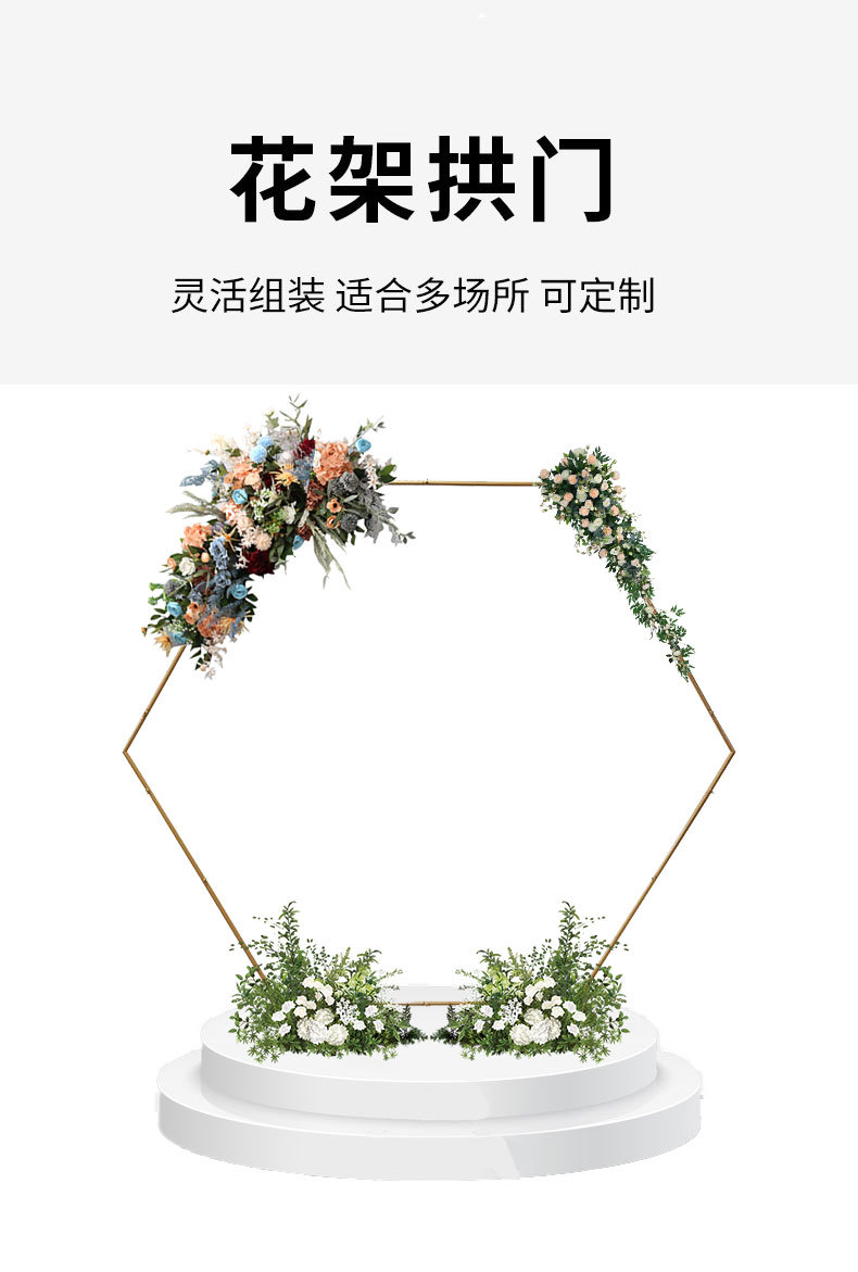 亚马逊婚庆六边形气球拱门方形铁艺拱门户外庭院布置草地婚礼支架