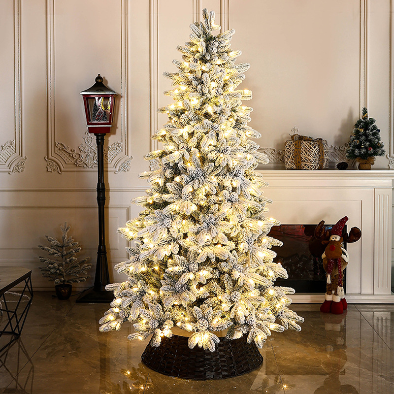 落雪圣诞节新款PE混PVC植绒少雪圣诞树厂家圣诞节装饰圣诞微雪树