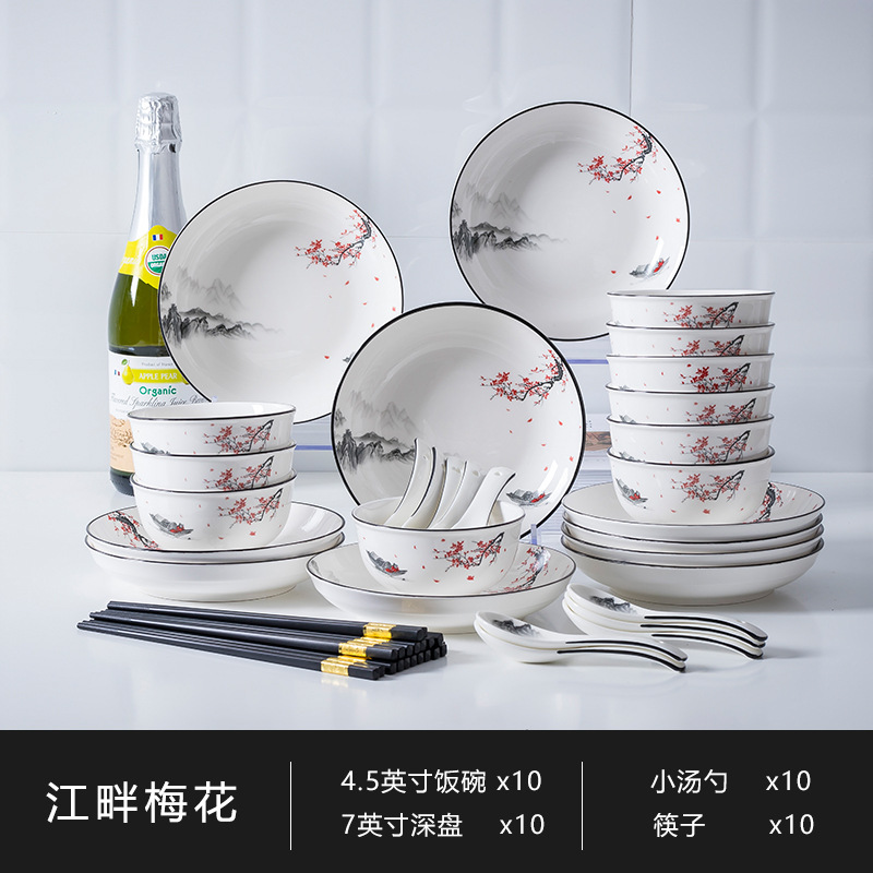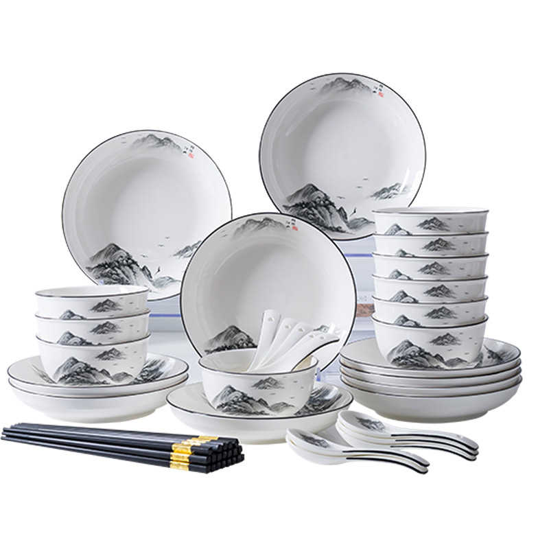 40件陶瓷餐具礼品碗套装碗筷日式款套装家用菜盘子新款面汤碗组合