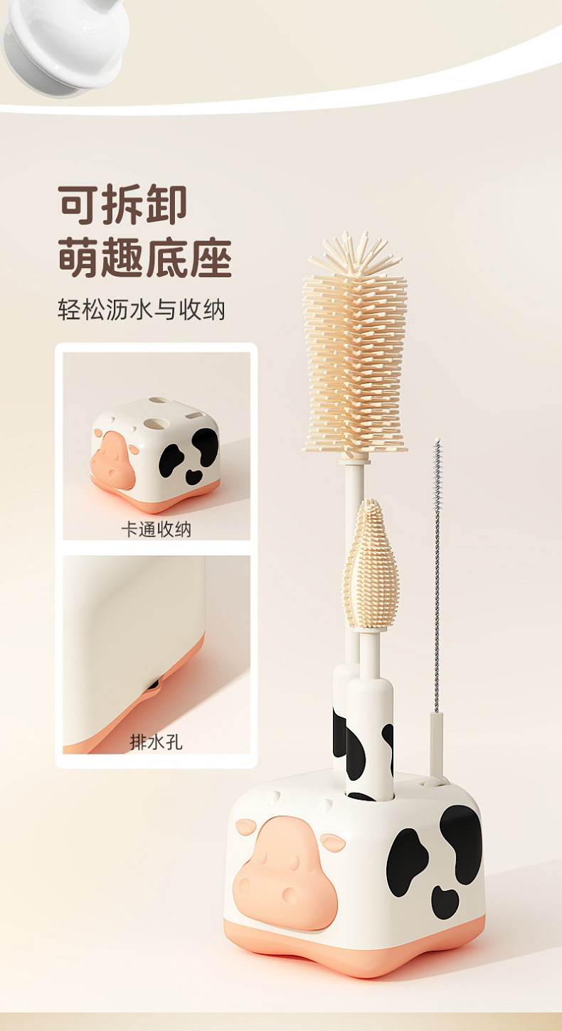 硅胶奶瓶刷便携奶瓶刷套装婴儿专用奶瓶清洗刷沥干架洗奶瓶