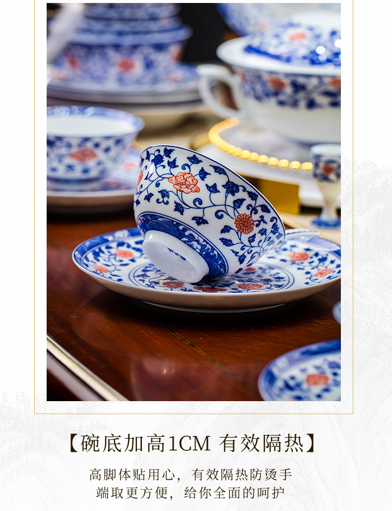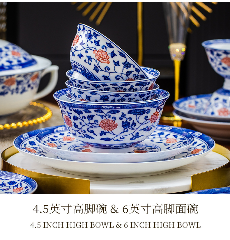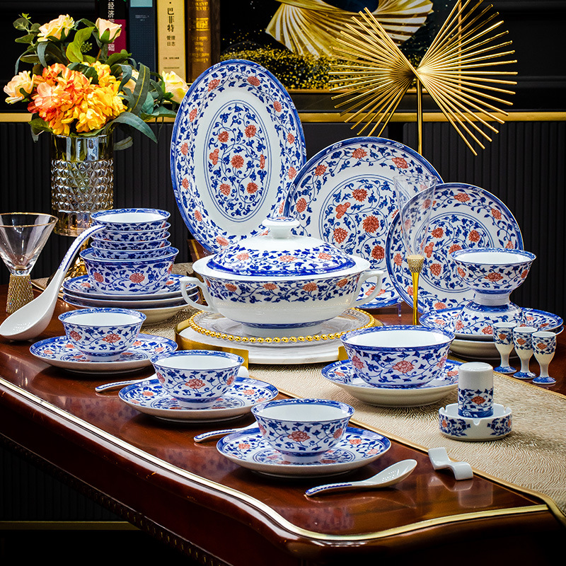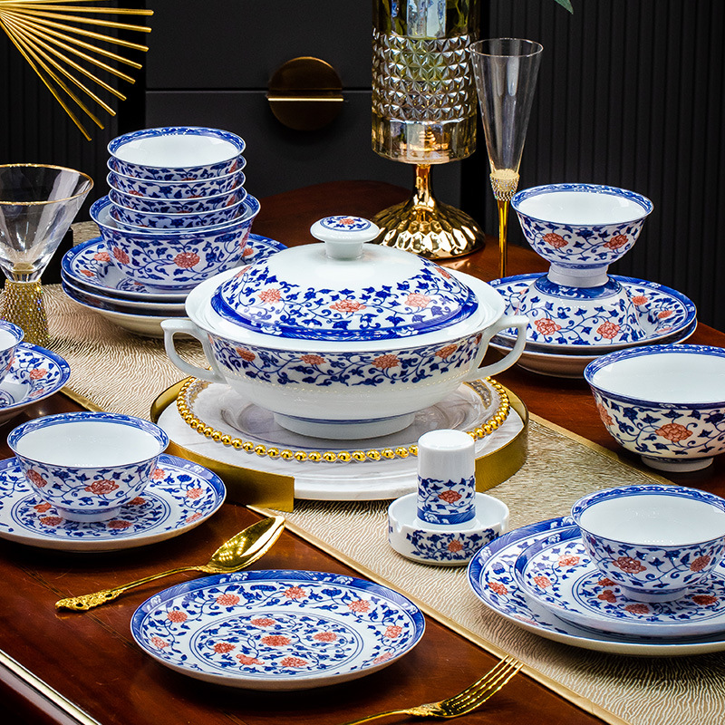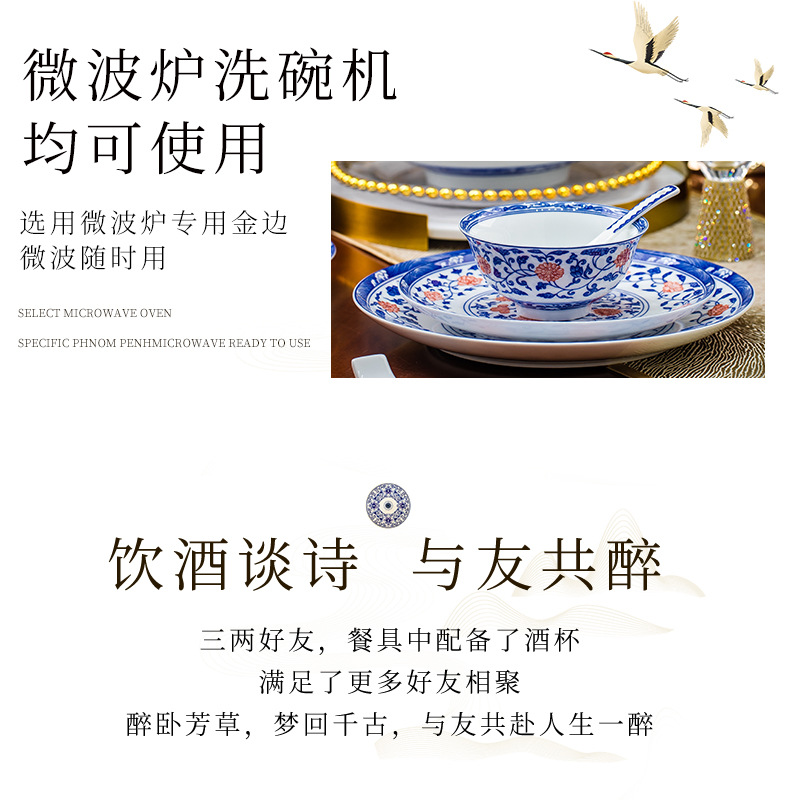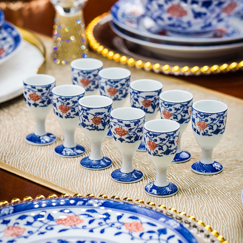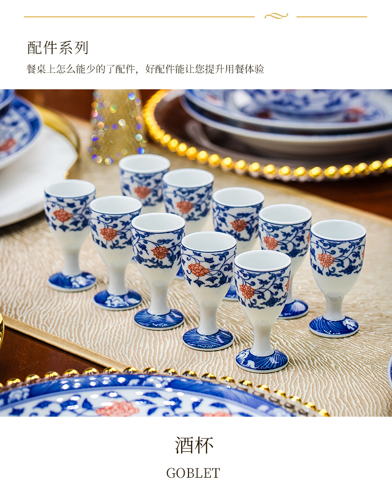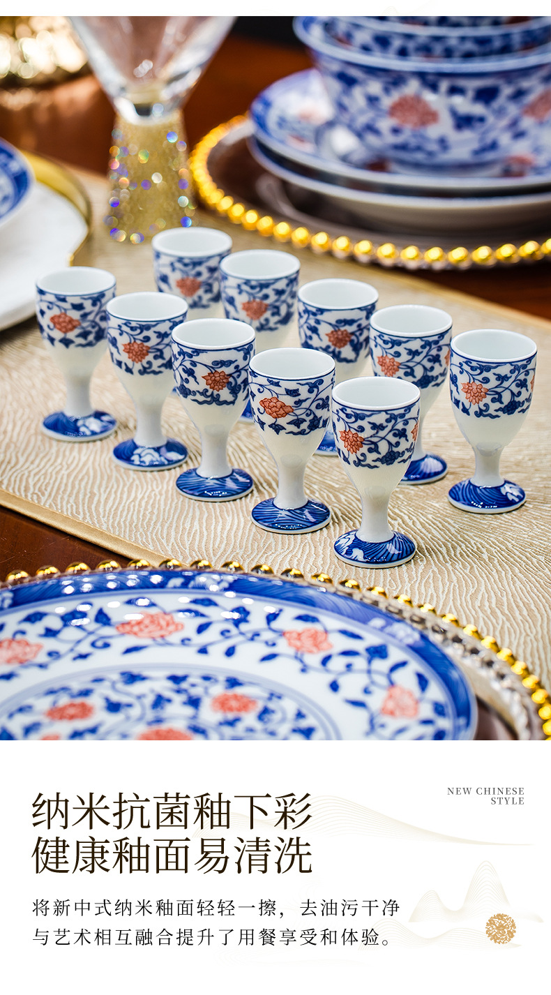 餐具套装景德镇高档高温釉下彩青花玲珑带酒杯送礼乔迁结婚
