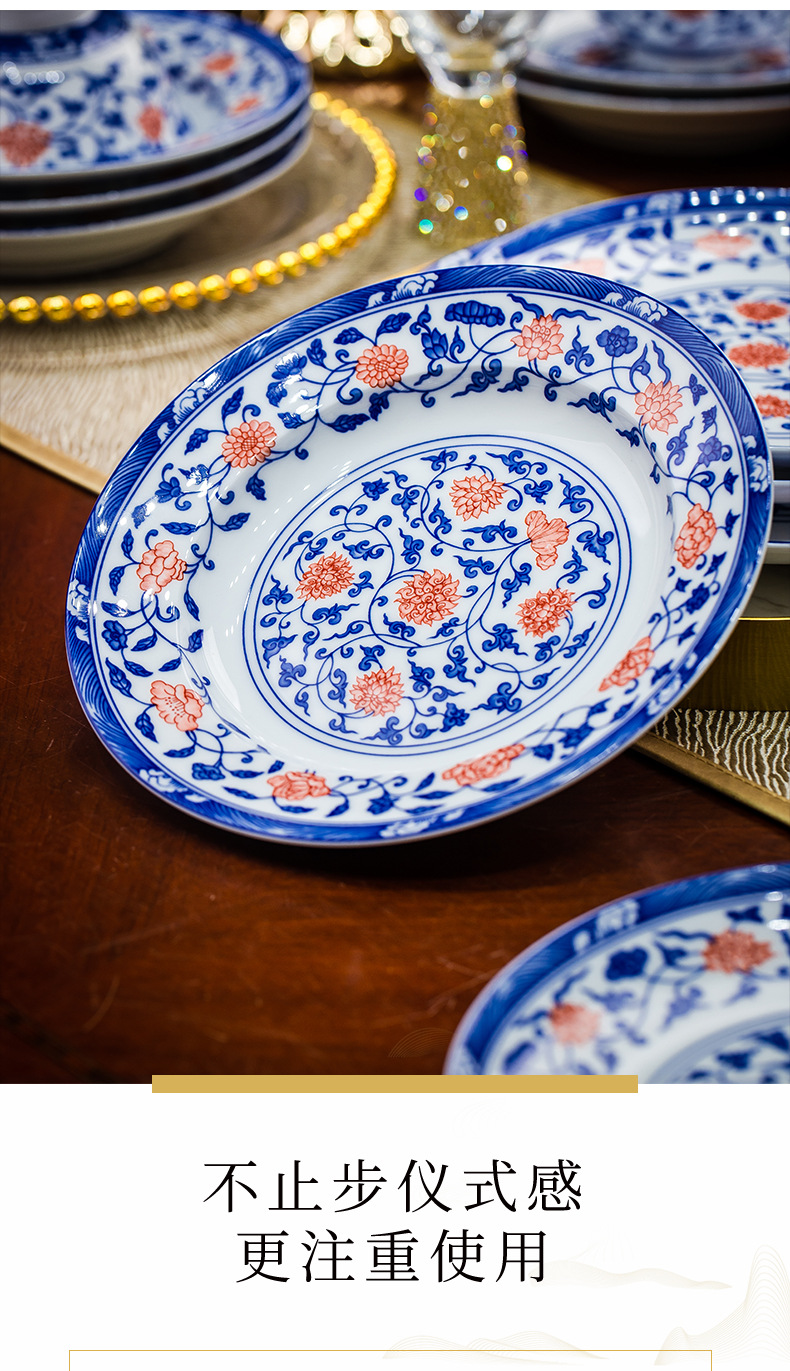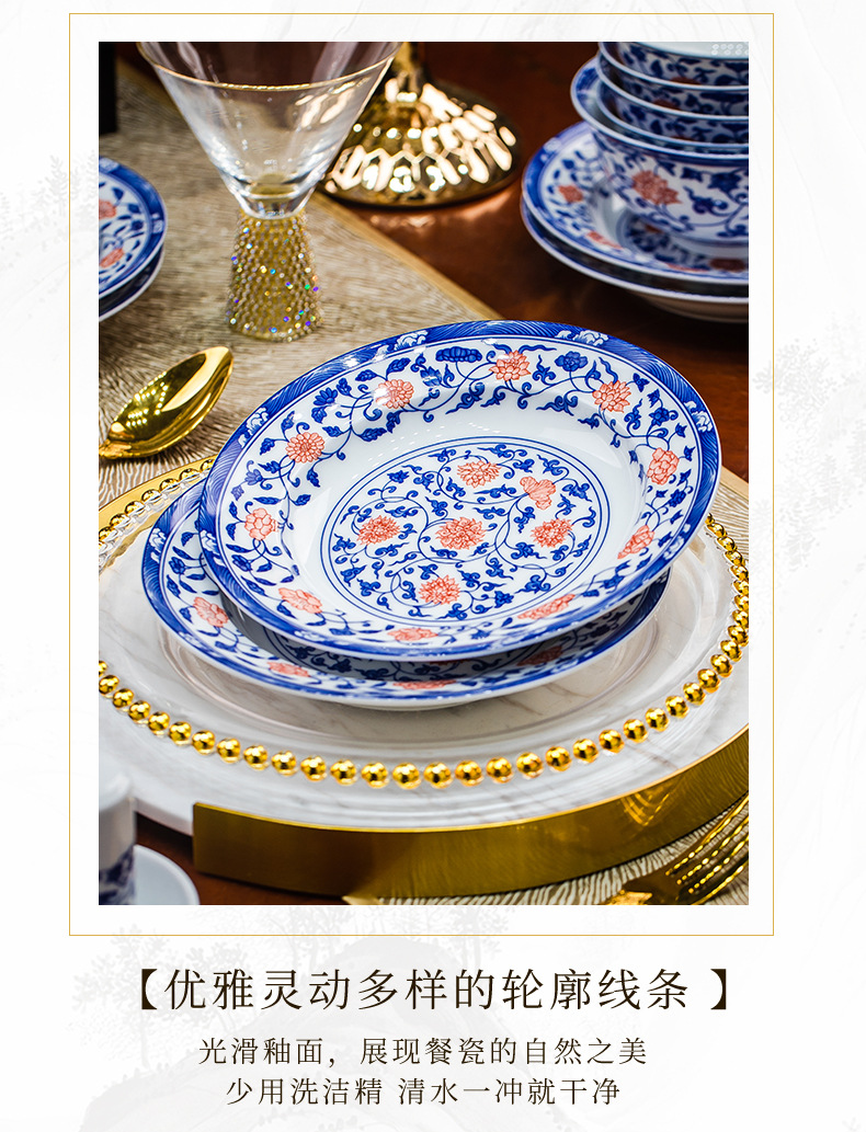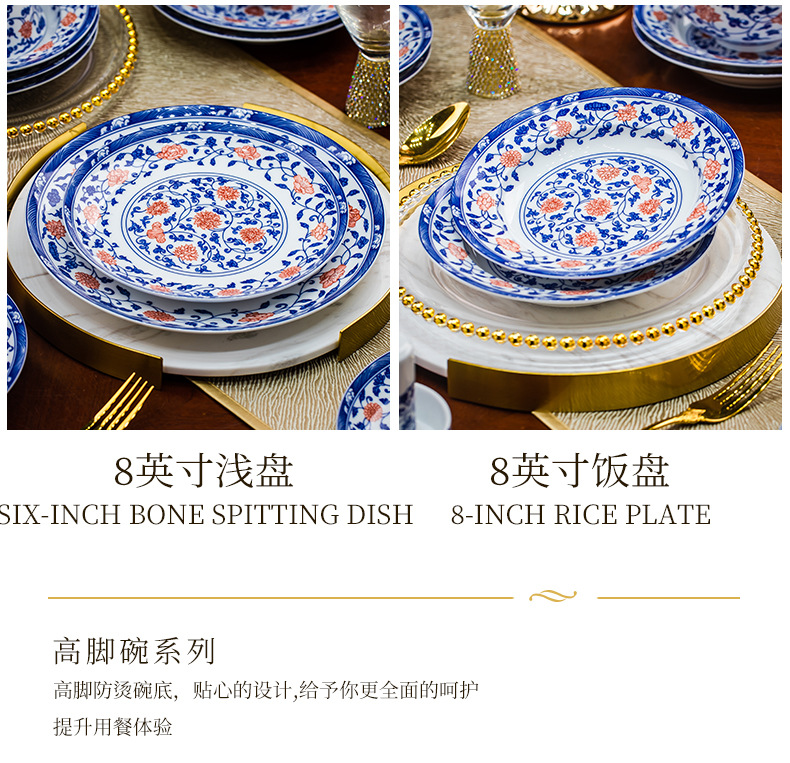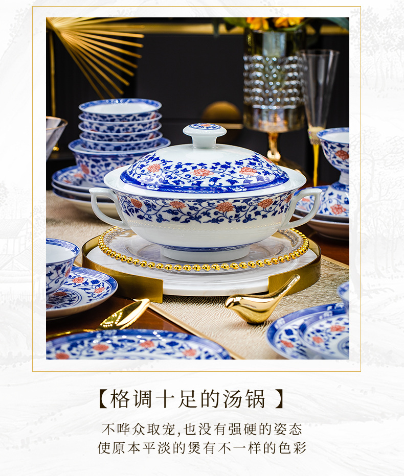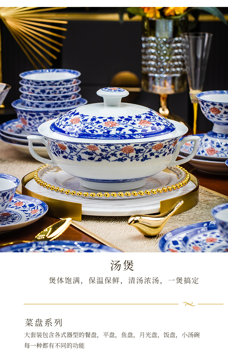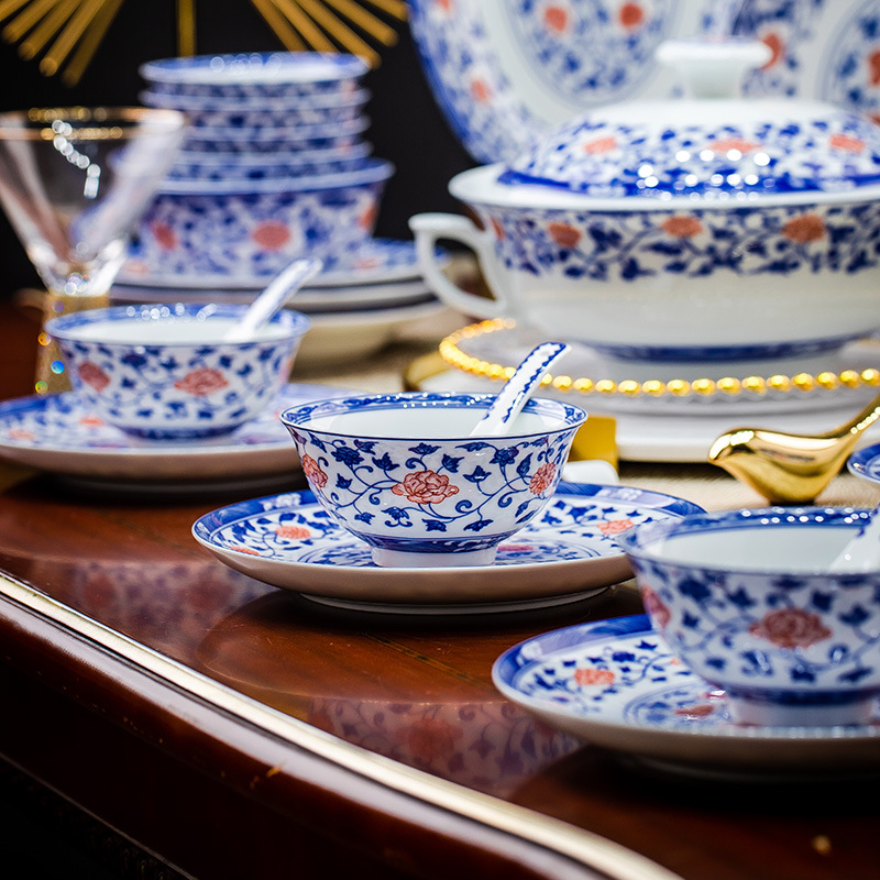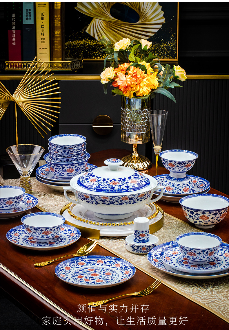 餐具套装景德镇高档高温釉下彩青花玲珑带酒杯送礼乔迁结婚