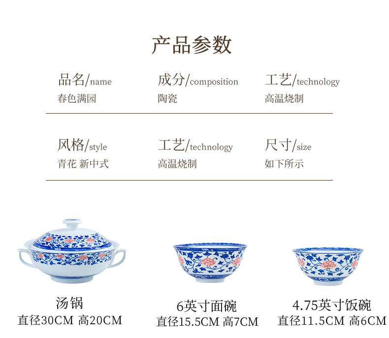 | blue and white full garden spring 68-piece set(青花玲珑满园春色68件套) | USD $0.0 | 4947 set available |